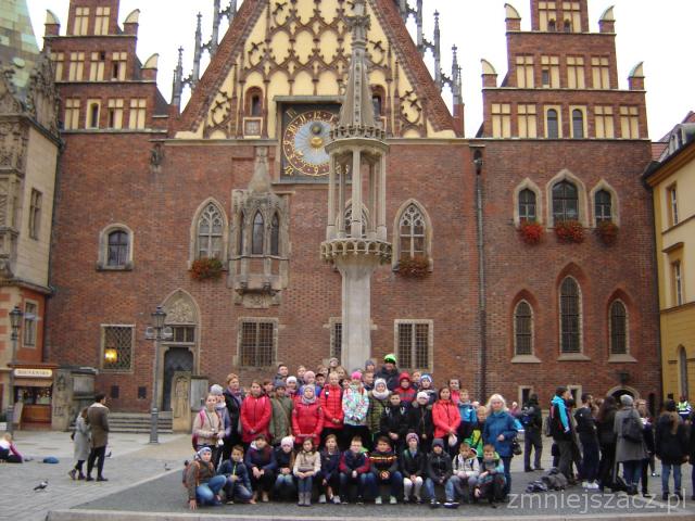 28.10.2016r. uczniowie klas IV – VI naszej szkoły uczestniczyli w ciekawej, dydaktycznej wycieczce do Wrocławia. Pogoda w tym dniu dopisała. Program wycieczki obfitował w różne atrakcje. Najpierw dzieci miło spędziły czas we wrocławskim ZOO. Podziwiały ciekawe okazy zwierząt i tematyczne ekspozycje poszczególnych kontynentów m.in. Pawilon Madagaskaru, Saharę, wybieg niedźwiedzi brunatnych, czy basen płetwonogich. Szczególnie zachwyciło dzieci afrykarium, a w nim wielkie akwaria z egzotycznymi zwierzętami, które przeniosły uczniów naszej szkoły w zupełnie inny świat. Wrażenie na wszystkich zrobiło spotkanie z krokodylem „oko w oko”. Kolejnym punktem wycieczki był Wrocławski Rynek, uchodzący za jeden z największych rynków staromiejskich Europy, z największym ratuszem w Polsce. Później dzieci zwiedziły ulicę, która przypomina włoską Toskanię-Jatki. To jeden z piękniejszych i często odwiedzanych przez turystów zakątków Wrocławia. Poczuć tam można ducha renesansowych dziejów. Zaciekawił wszystkich również pomnik z brązu ku Czci Zwierząt Rzeźnych składający się z naturalnej wielkości figurek trzody i drobiu. Uwieńczeniem wycieczki była Panorama Racławicka. Oglądając ten relikt dziewiętnastowiecznej kultury masowej wycieczkowicze przenieśli się w inną rzeczywistość i inny czas. Pełni niesamowitych wrażeń wrócili wieczorem do Żelechlinka. Wycieczkę można zaliczyć do bardzo udanych.