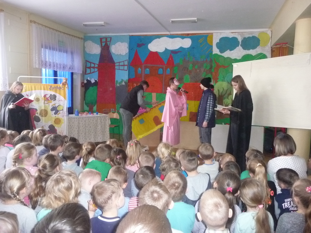 W dniach 29-30 marca 2017 roku uczniowie klas drugich gimnazjum zaprezntowali młodszym kolegom ze szkoły podstawowej i dzieciom z przedszkola przygotowane w ramach zajęć artystycznych inscenizacje znanych baśni. Przez kilka miesięcy zgłębiali tajniki pracy aktora: przygotowali dekoracje, elementy scenografii, rekwizyty, a przede wszystkim ćwiczyli przydzielone role.
