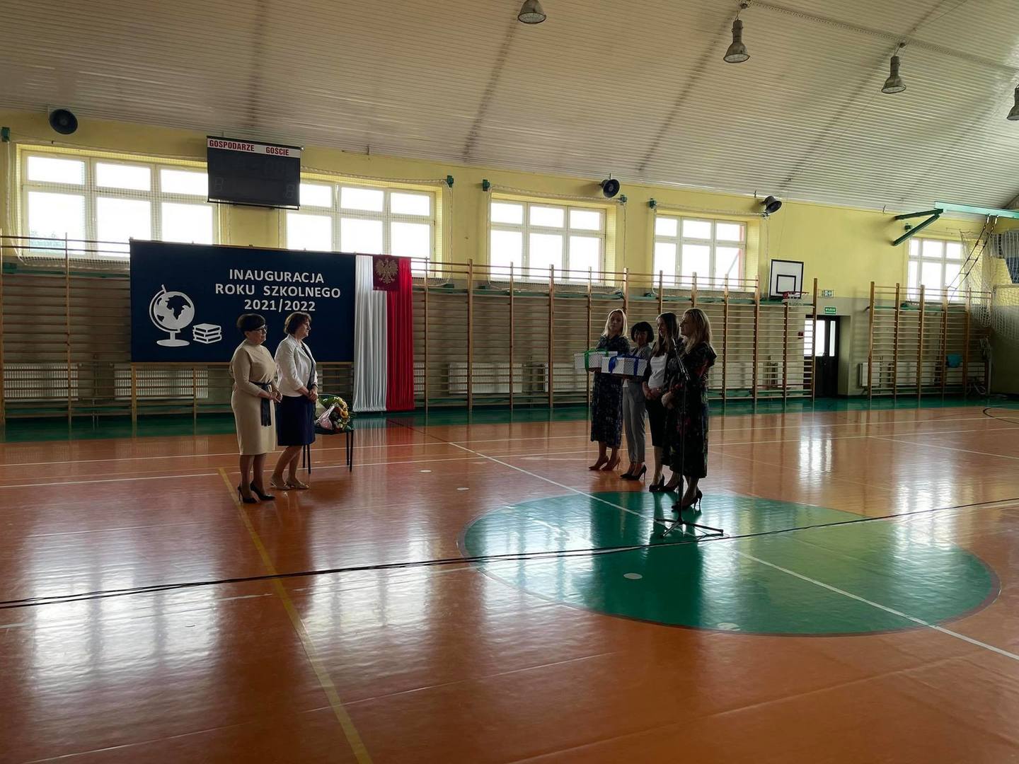 W dalszej części spotkania miało miejsce powierzenie stanowiska Dyrektora Publicznej Szkoły Podstawowej im. Henryka Sienkiewicza w Żelechlinku Panu Piotrowi Mikince. Wójt Gminy złożył gratulacje nowemu dyrektorowi, a także życzył owocnej pracy oraz siły do podejmowania trudnych zadań związanych z zarządzaniem oświatą. Do gratulacji i życzeń przyłączyli się przedstawiciele społeczności uczniowskiej oraz nauczyciele i pracownicy Szkoły. Pan dyrektor poinformował zebranych o powierzeniu stanowiska wicedyrektora Szkoły Pani Anecie Dominiak. Na zakończenie uroczystości w ciepłych słowach zwrócił się do Pani Ireny Kostrzewy oraz Pani Kamilli Cholak, dziękując za wiele lat wspólnej pracy, a także za przekazaną wiedzę i doświadczenie.