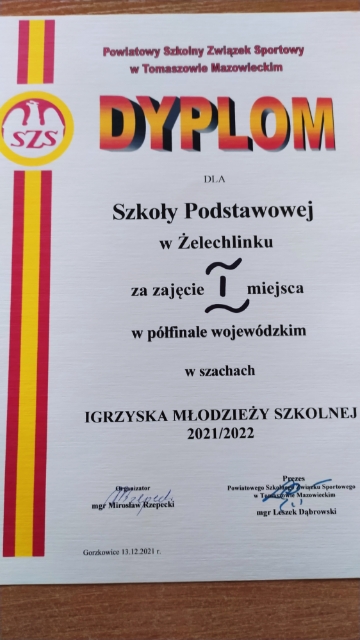 1 grudnia 2021 r. w Tomaszowie Mazowieckim uczniowie naszej szkoły w Powiatowych Igrzyskach Młodzieży Szkolnej wywalczyli awans do dalszych rozgrywek.