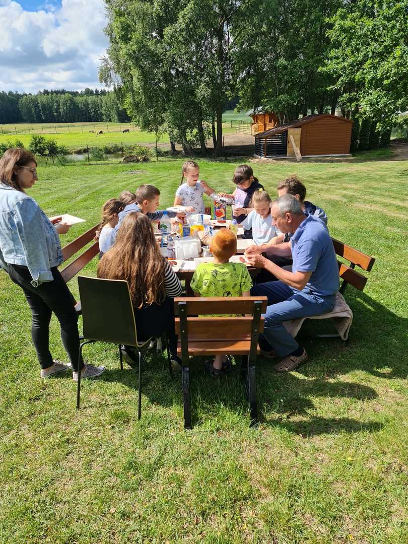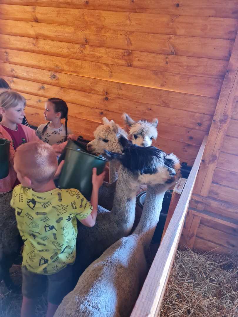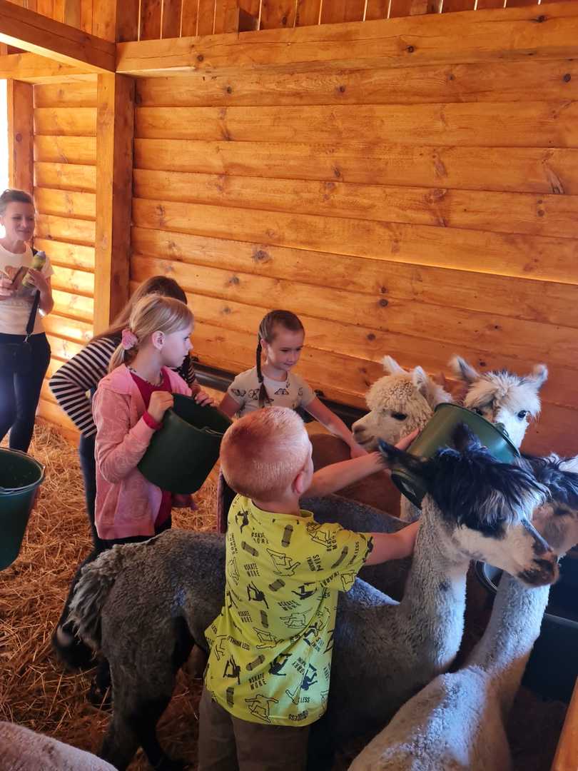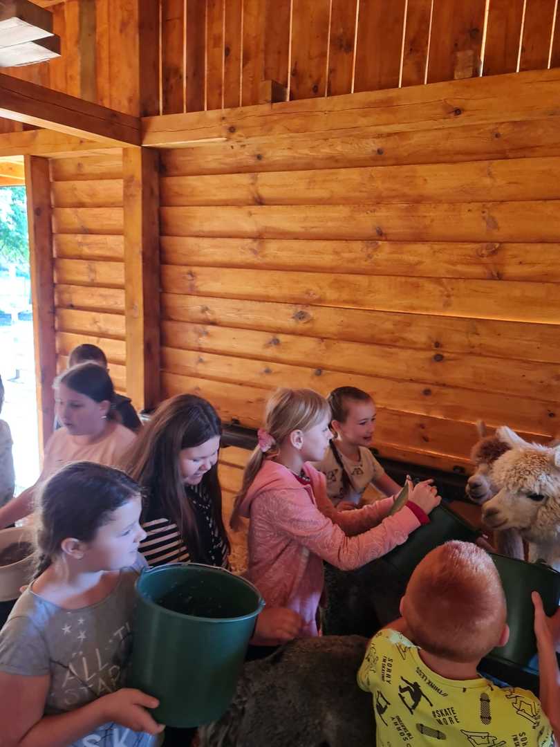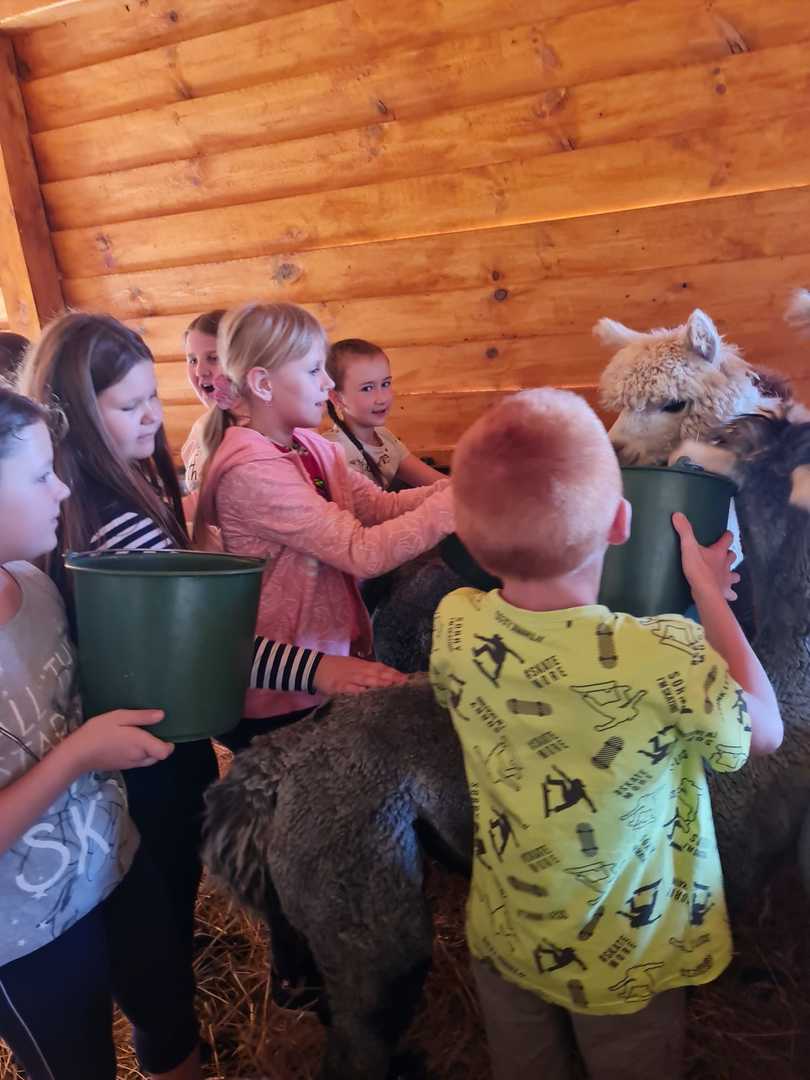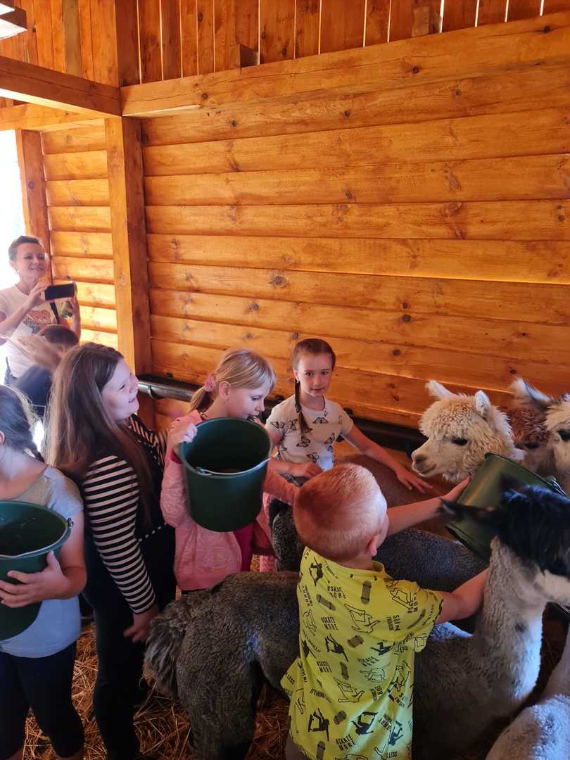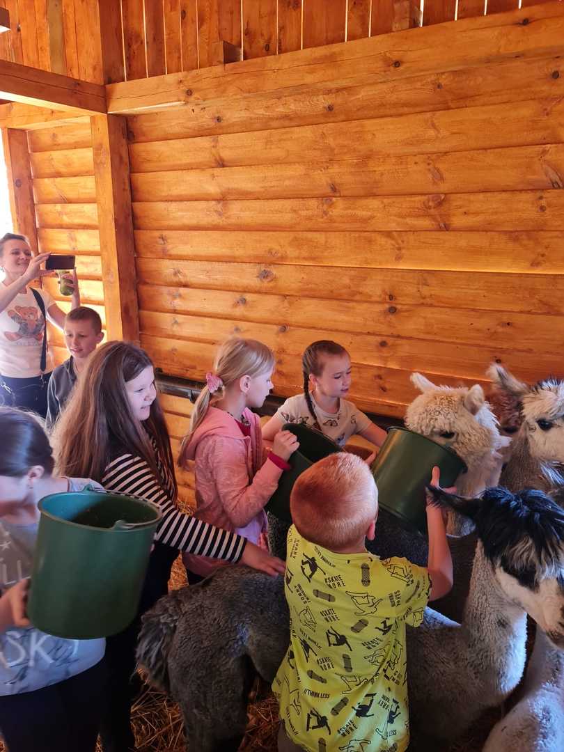 17.06.2022r. uczniowie klasy 2b pod opieką nauczycieli odwiedzili gospodarswto w miejscowości Wolica zajmujące się hodowlą alpak. Spotkanie z oswojonymi zwierzętami sprawiło dzieciom wiele radości. Mogły je same karmić, głaskać i przytulać się do nich. Ponadto wzbogaciły swoją wiedzę na temat pochodzenia alpak, ich hodowli i pielęgnacji. Miały również okazję zobaczyć osiołki, kozła oraz kangury. Wiele radości sprawiło dzieciom karmienie rybek. Był też czas na posiłek i zabawę. Wyjazd okazał się nie tylko wspaniałym przeżyciem, ale również atrakcyjną lekcją przyrody. Uczniowie pełni wrażeń wrócili do szkoły.