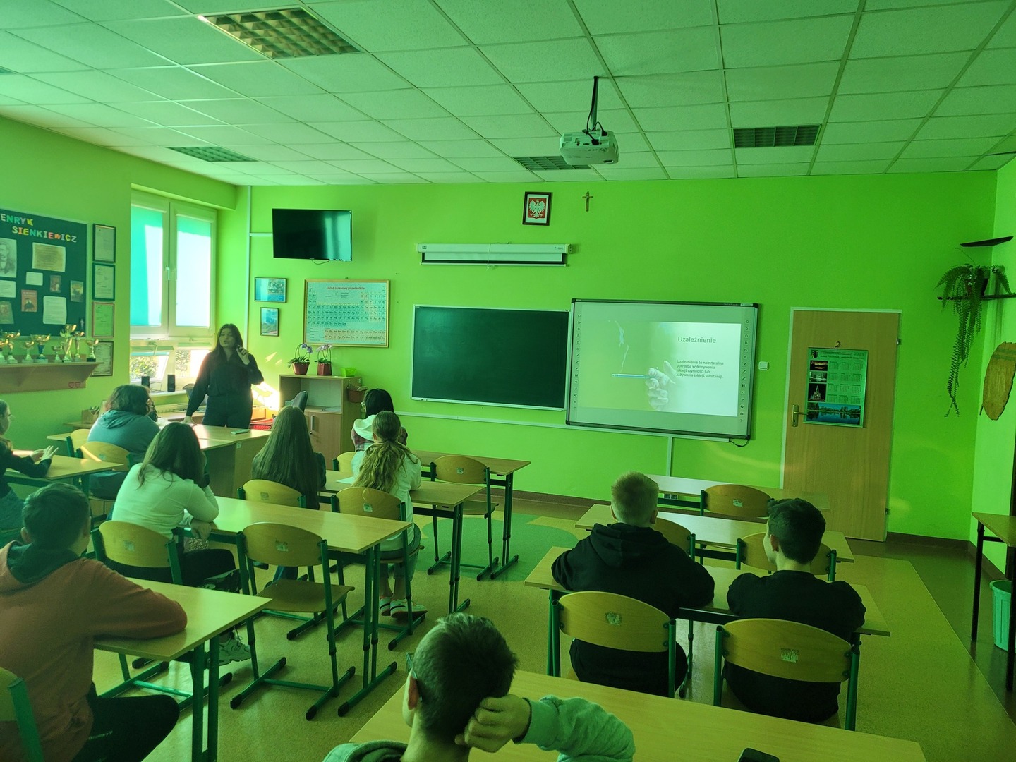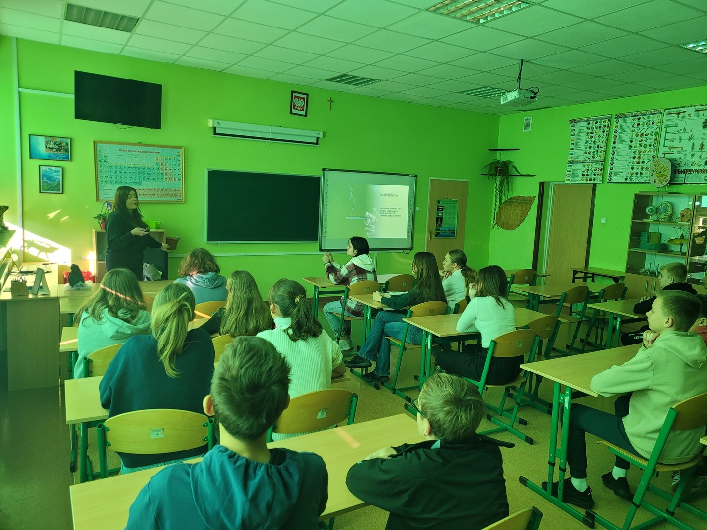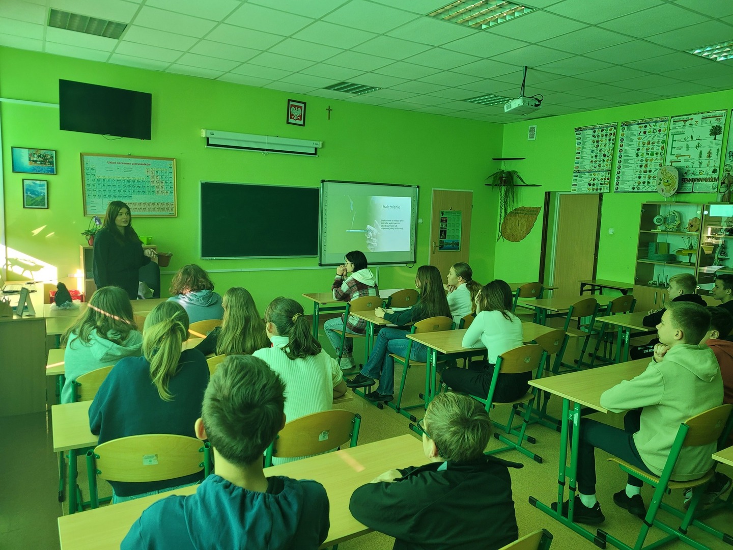 W dniu 18.10.2023r. uczniowie klas VI i VII brali udział w warsztatach profilaktycznych w zakresie zażywania nikotyny. Zajęcia prowadził specjalista z Powiatowej Stacji Sanitarno-Epidemiologicznej w Tomaszowie Maz.