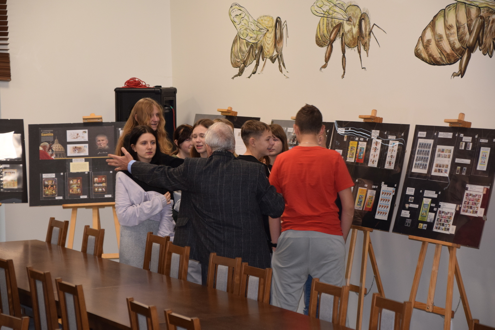 Dziękujemy panu Zbigniewowi Piotrowskiemu za zaproszenie, przybliżenie siódmoklasistom osoby Świętego Jana Pawła II oraz rozbudzenie w uczniach pasji kolekcjonerskich.
