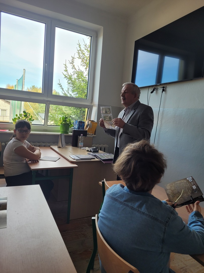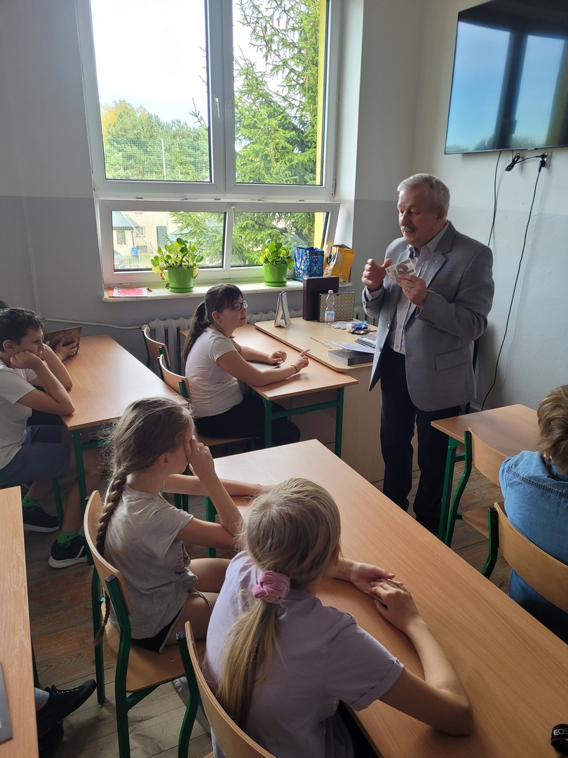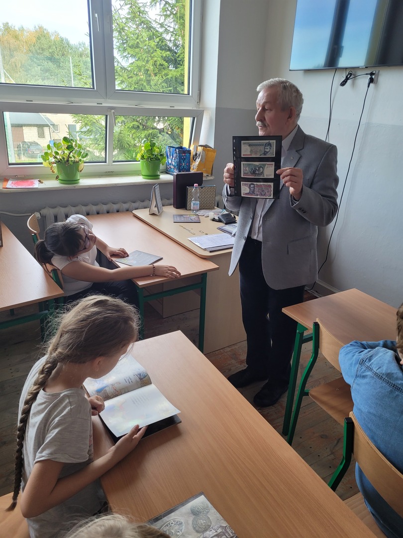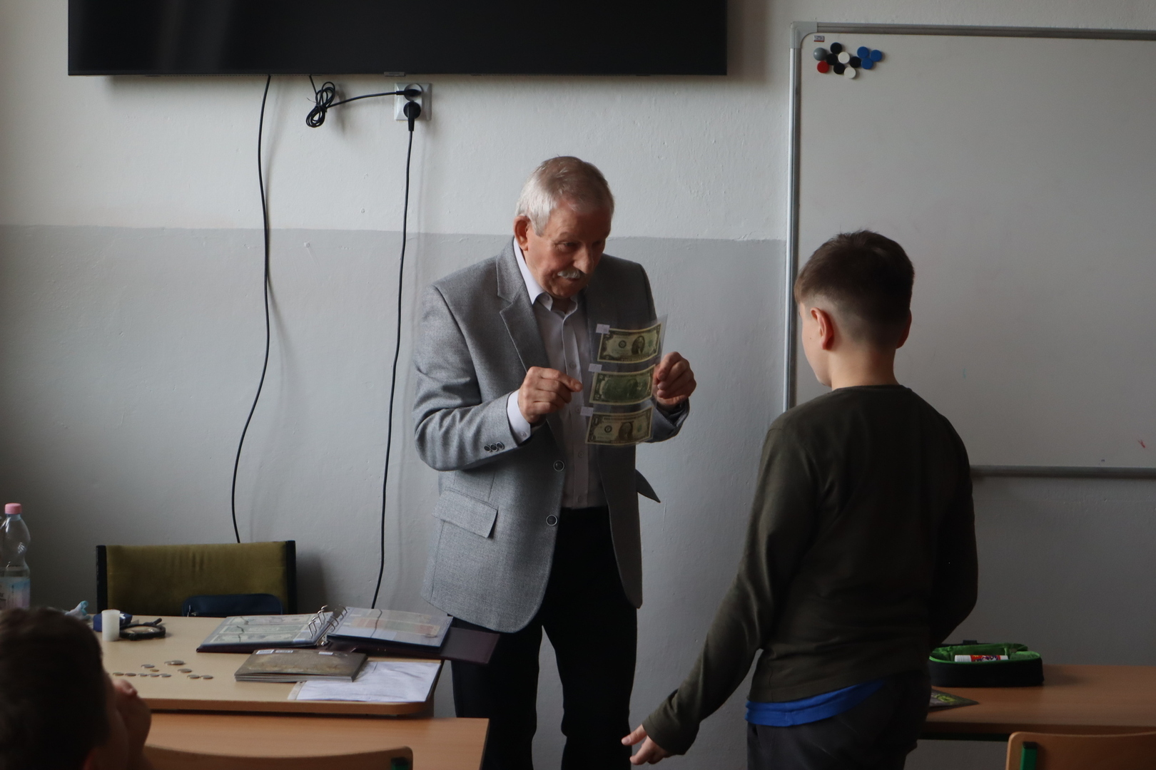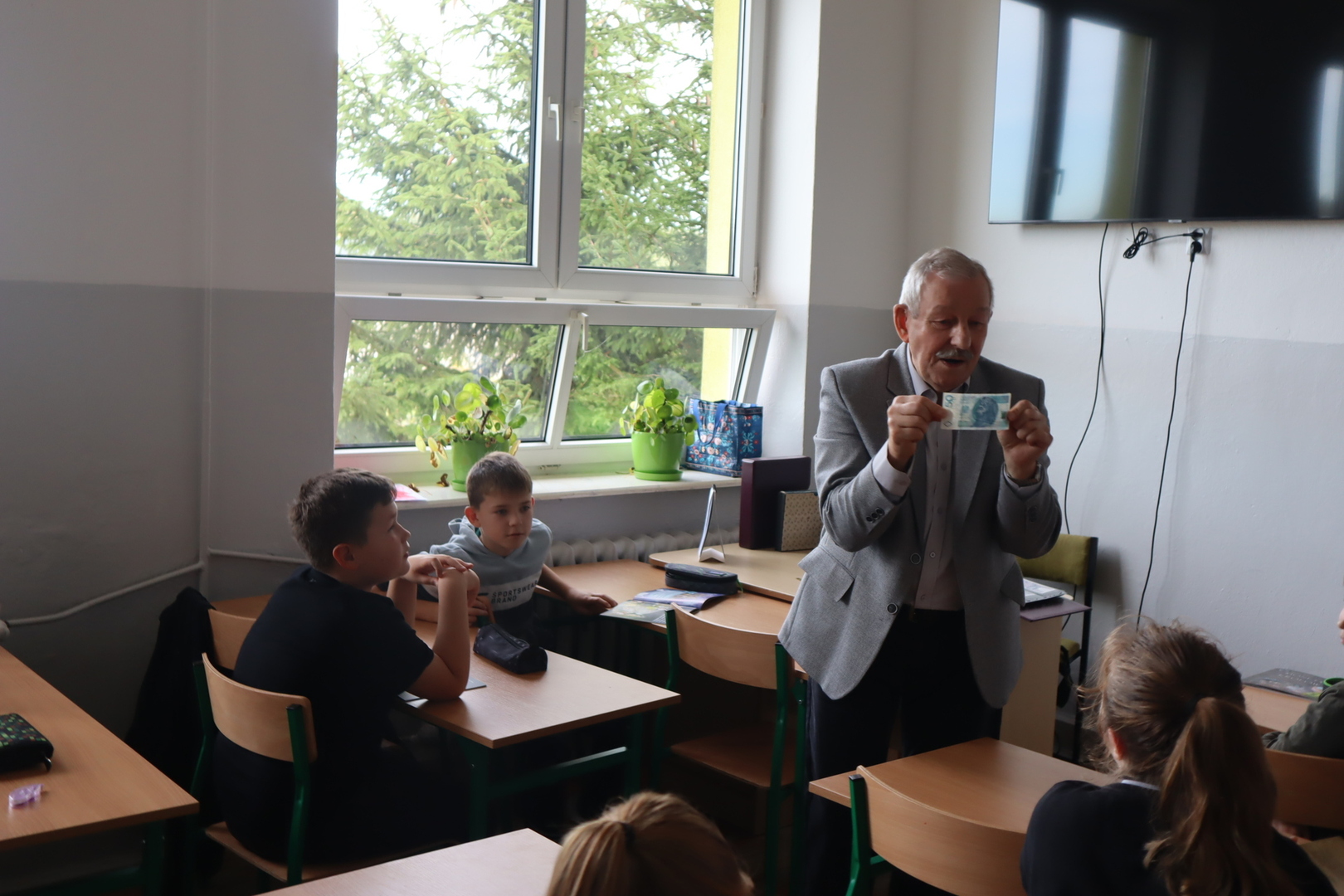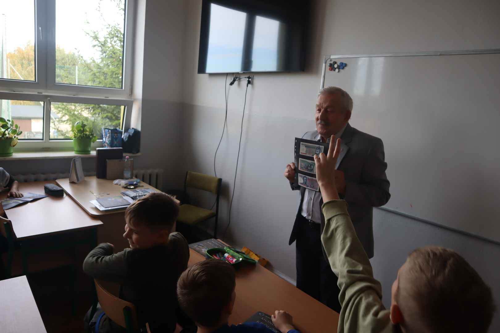 W poniedziałek, 30 października 2023 r., uczniowie klas czwartych wzięli udział w spotkaniu z panem Zbigniewem Piotrowskim, członkiem Polskiego Towarzystwa Numizmatycznego, Oddział Bełchatów.