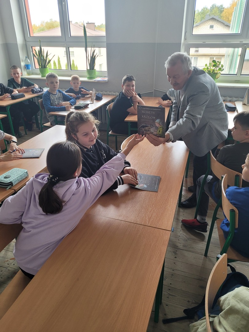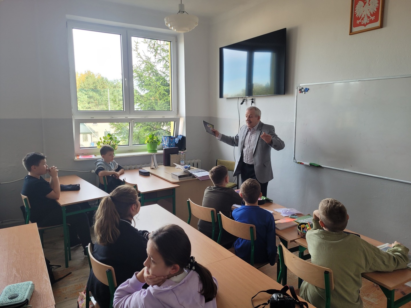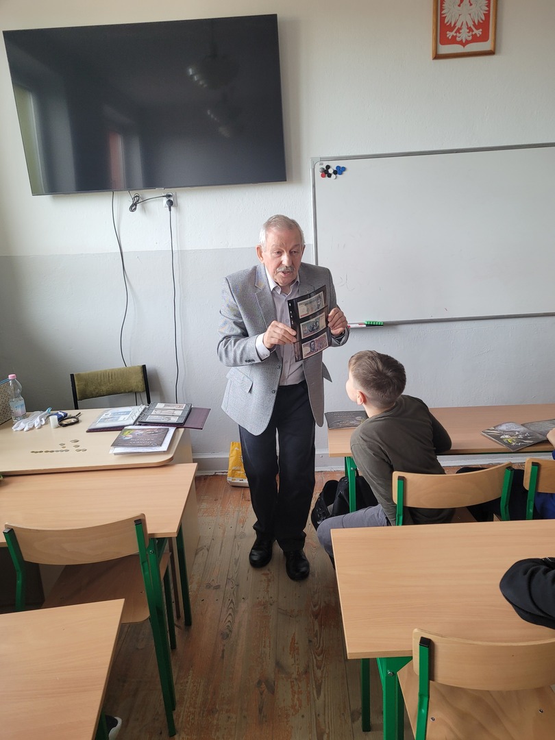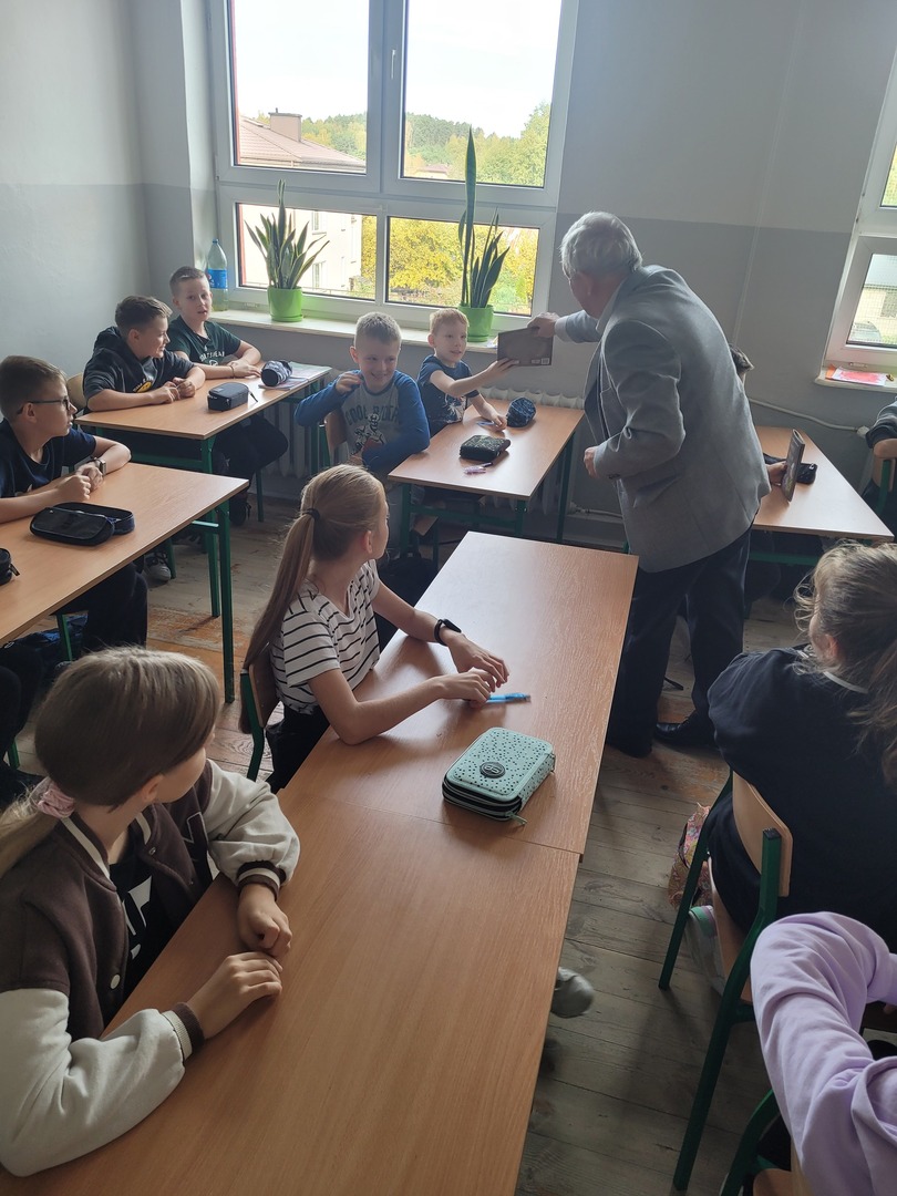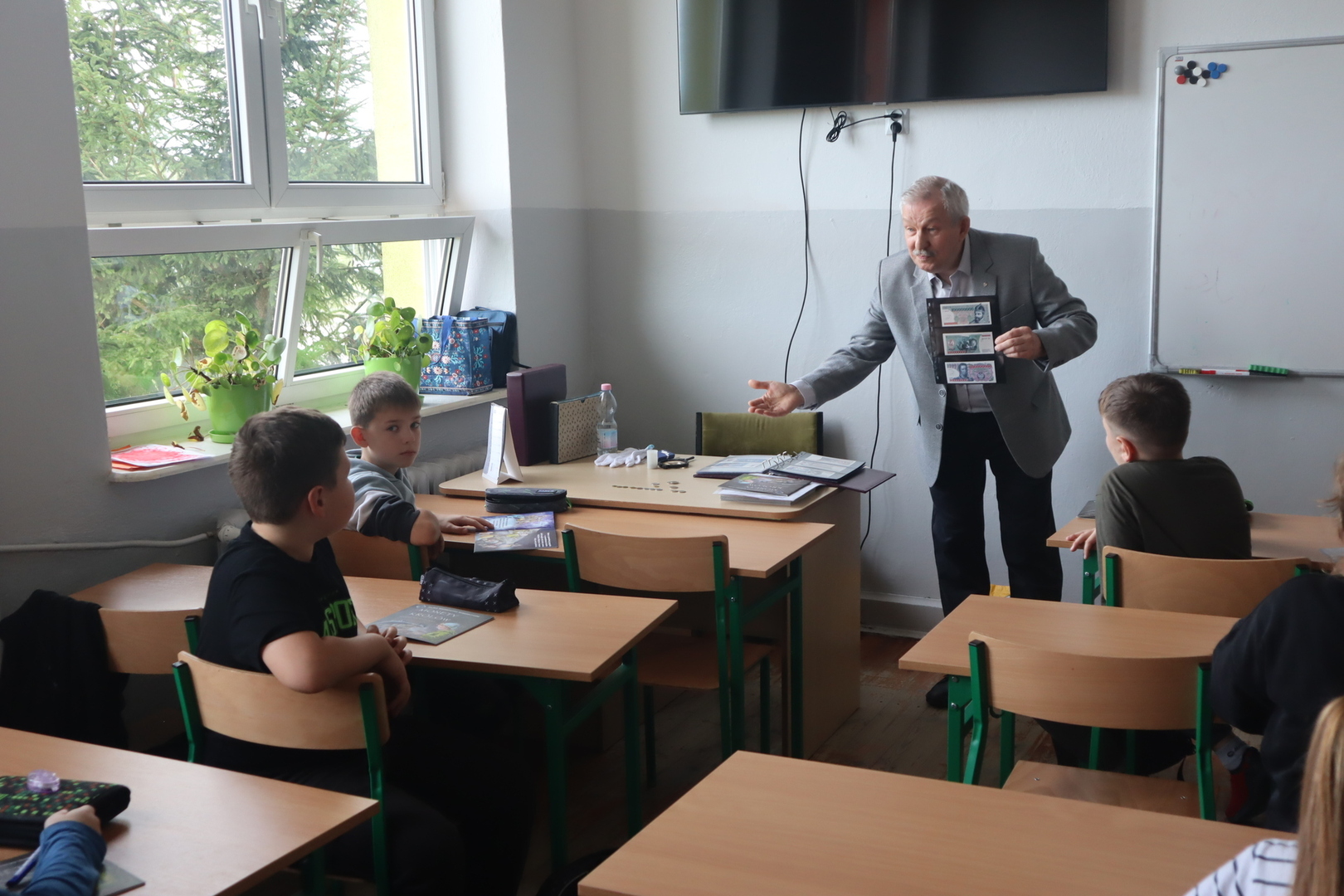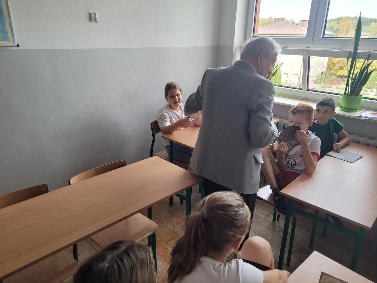 W poniedziałek, 30 października 2023 r., uczniowie klas czwartych wzięli udział w spotkaniu z panem Zbigniewem Piotrowskim, członkiem Polskiego Towarzystwa Numizmatycznego, Oddział Bełchatów.