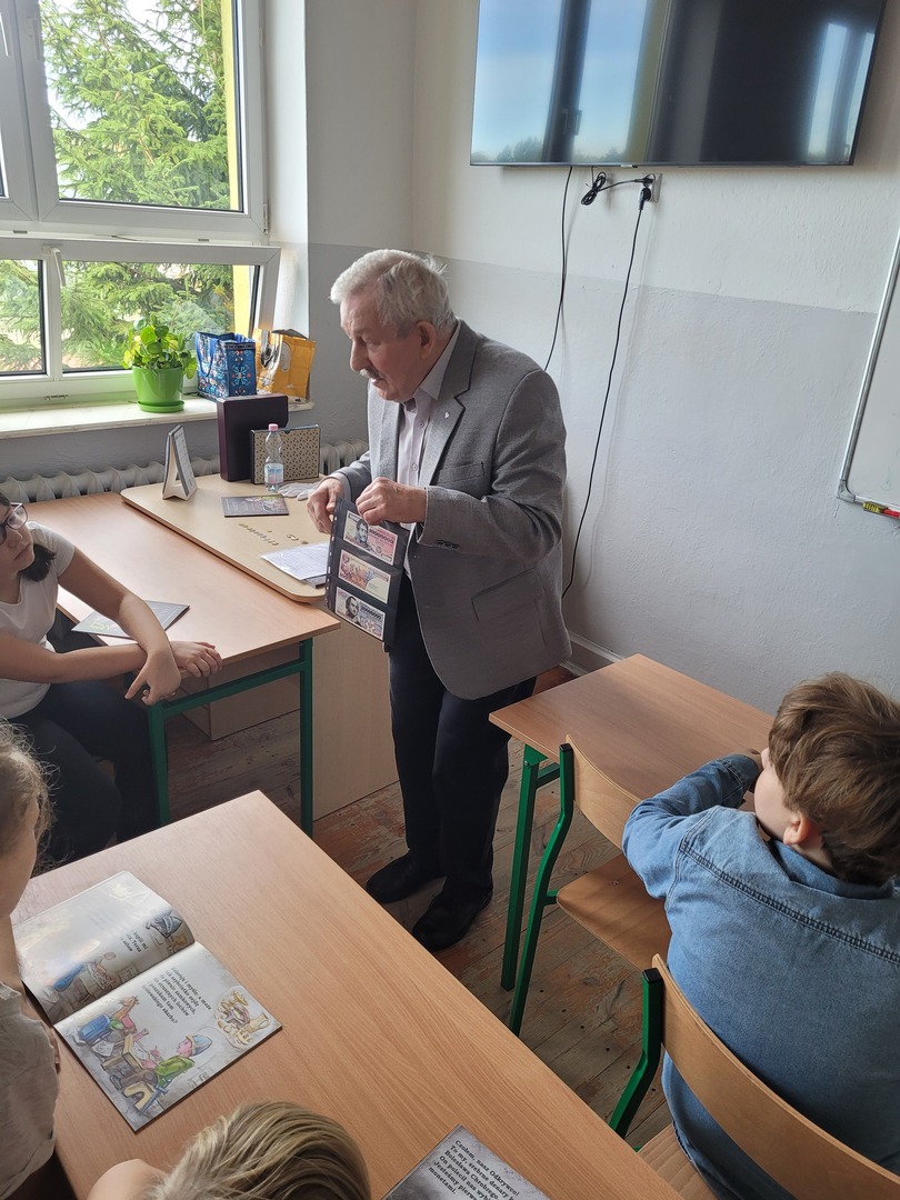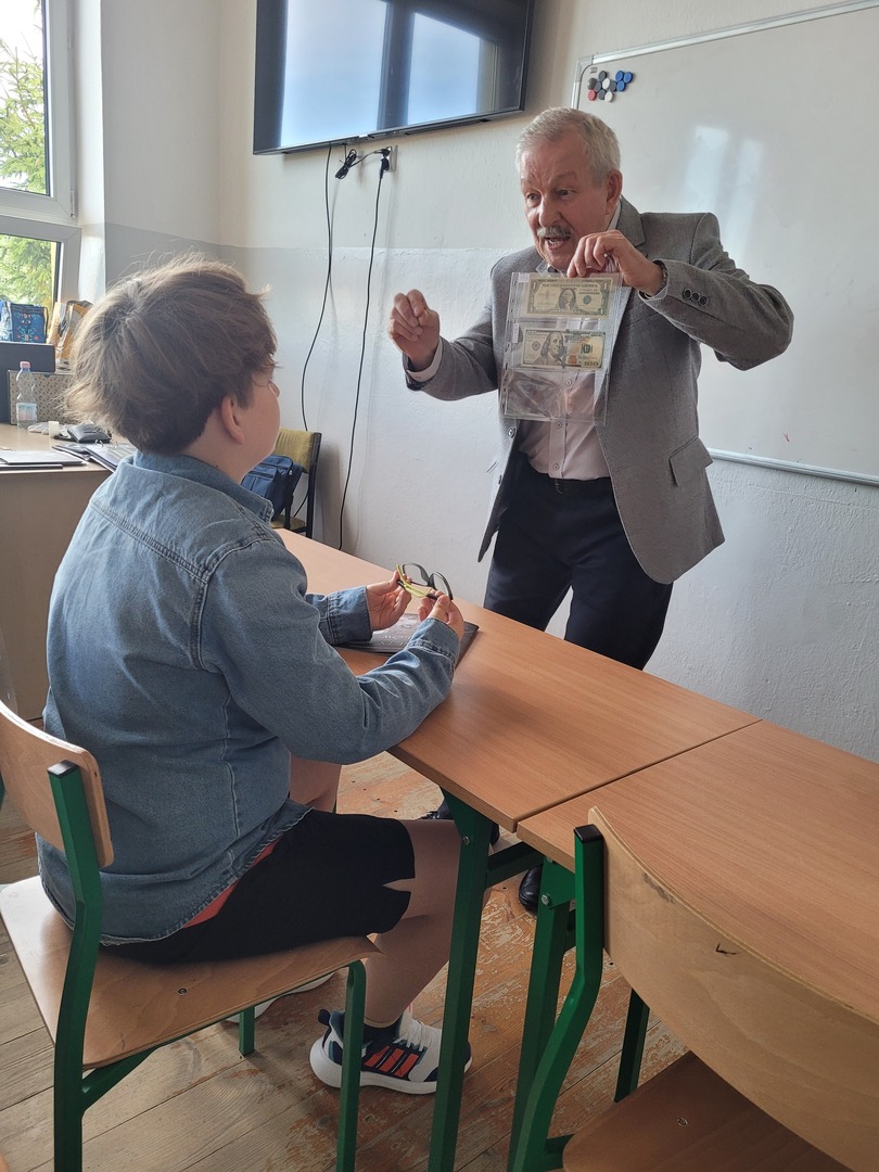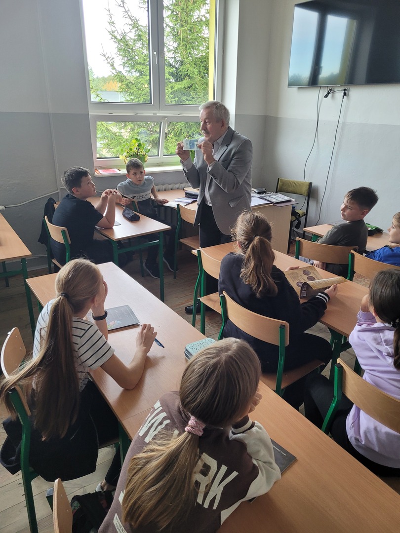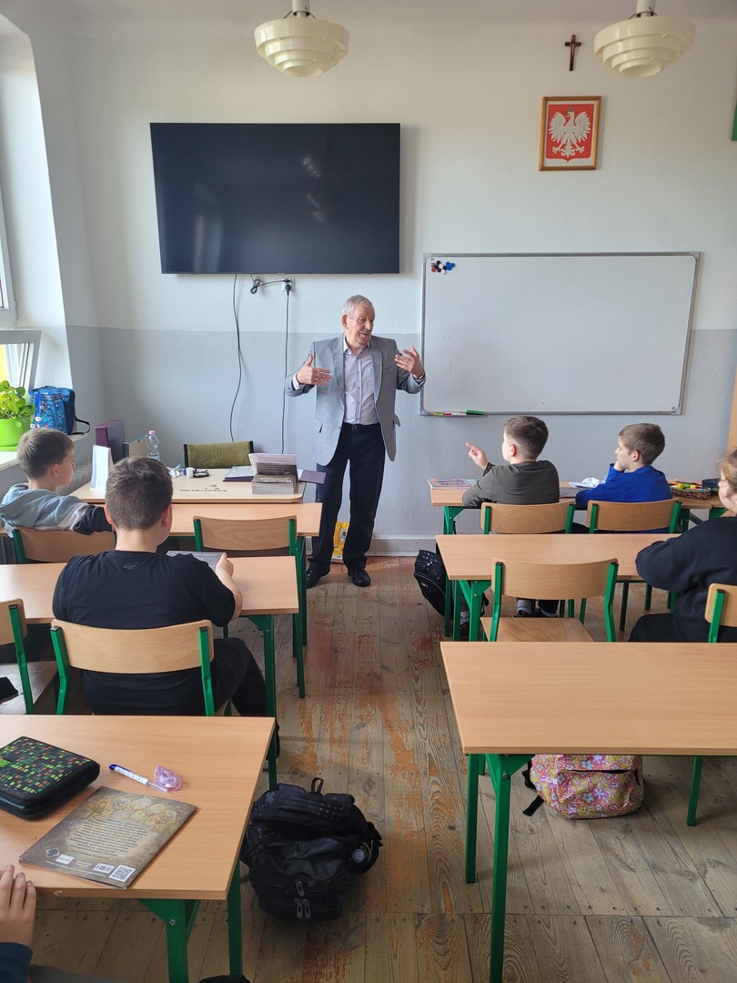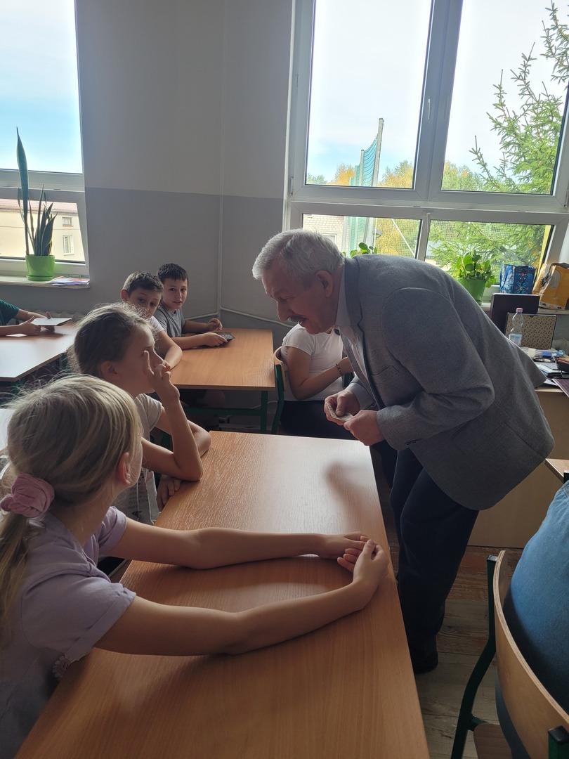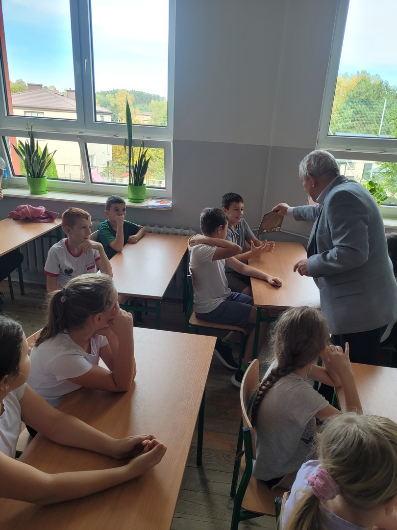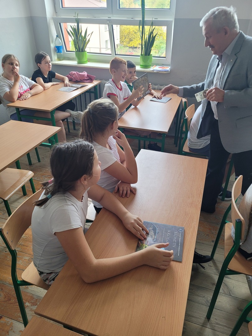 W poniedziałek, 30 października 2023 r., uczniowie klas czwartych wzięli udział w spotkaniu z panem Zbigniewem Piotrowskim, członkiem Polskiego Towarzystwa Numizmatycznego, Oddział Bełchatów.
