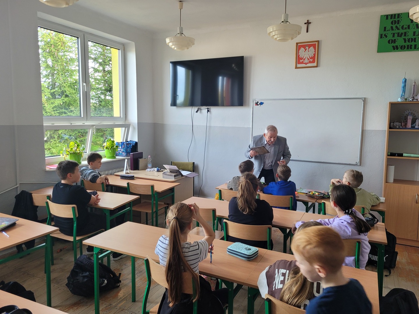 Spotkanie uczniów klas czwartych z panem Zbigniewem Piotrowskim, członkiem Polskiego Towarzystwa Numizmatycznego, Oddział Bełchatów