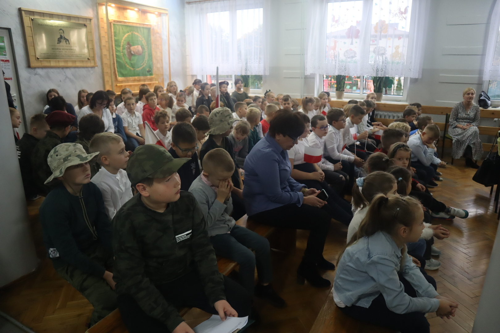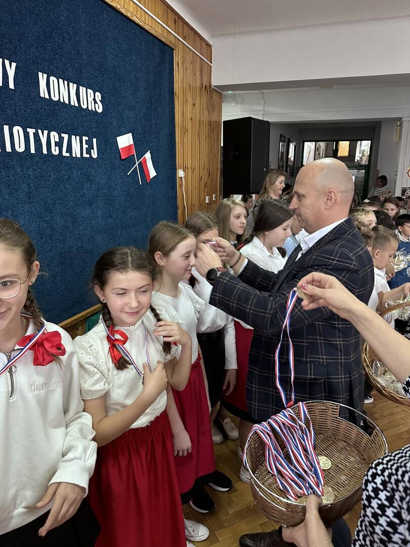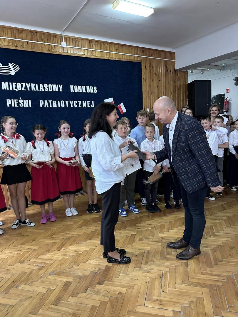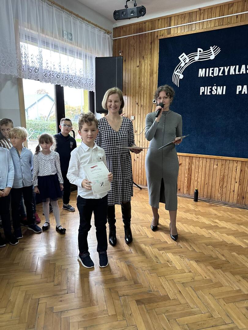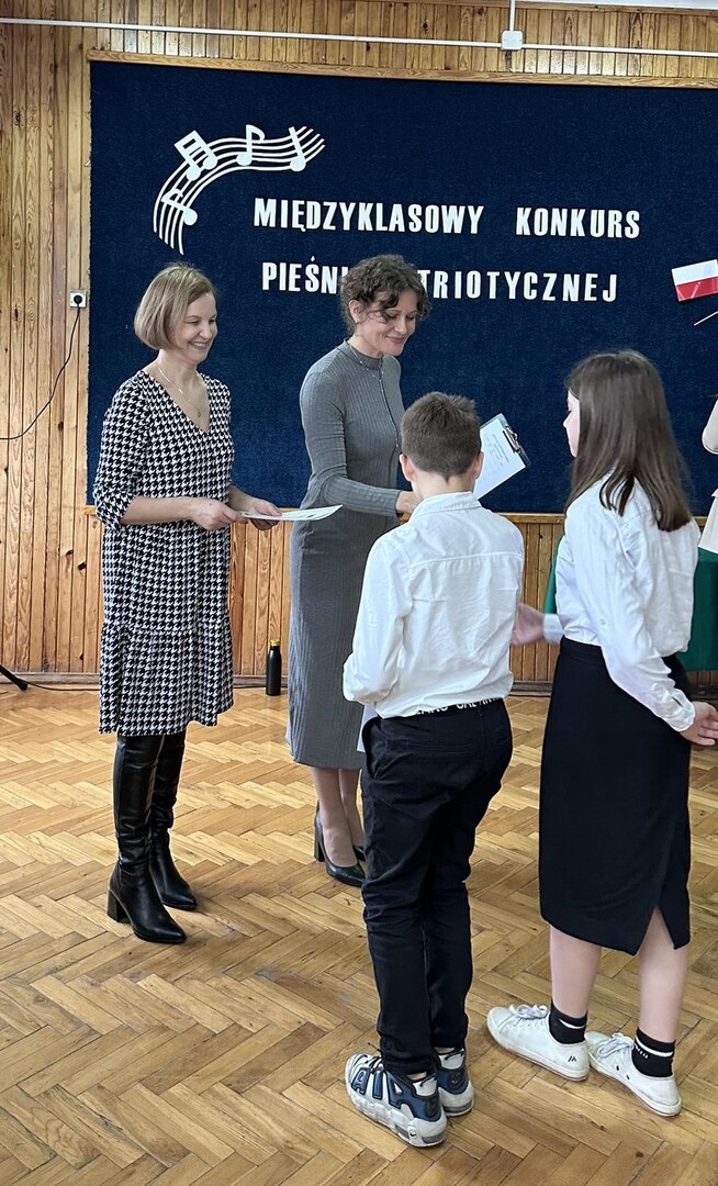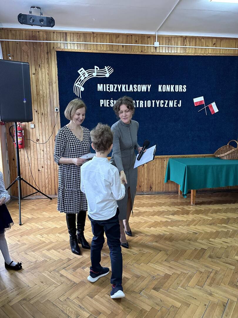 Pieśni patriotyczne były nadzieją w najtrudniejszych chwilach, podporą w chwilach zwątpienia, w ciężkich czasach zaborów, powstań i wojen, w okresach walk o niepodległość ojczyzny. Pozwalały na chwilę zapomnieć o oddaleniu od rodzinnego domu, bliskich, niekiedy ich stracie, a także o samotności i tęsknocie na obczyźnie. Najpiękniejsze pieśni patriotyczne wykonali uczniowie naszej szkoły w trakcie konkursu, który odbył się 3 listopada 2023r. Rywalizacja odbywała się między klasami w dwóch kategoriach: klasy II-IV i V-VIII. Wszyscy uczestniczy sumiennie przygotowali się do występów i prezentowali wysoki poziom wokalny. Dodatkowo zachwycili publiczność i jury strojami oraz choreografią. Usłyszeliśmy m.in.: “Rotę”, “Pierwszą brygadę”, “Szarą piechotę”, “Rozkwitały pąki białych róż”, “Jesteśmy Polką i Polakiem”, “Płynie Wisła, płynie”, “Nie masz nad żołnierza”. W komisji konkursowej uczestniczyły: pani Grażyna Susik, pani Justyna Pecyna, pani Aneta Dominiak, pani Agnieszka Wysokińska i pani Urszula Starosta. Decyzją jury zwyciężyły klasy IV a z piosenką “Serce w plecaku” i V a z pieśnią “Przybyli ułani”. Dziękujemy uczestnikom za ogromne zaangażowanie i gratulujemy zwycięzcom.