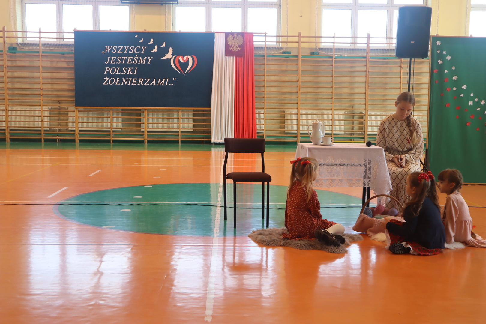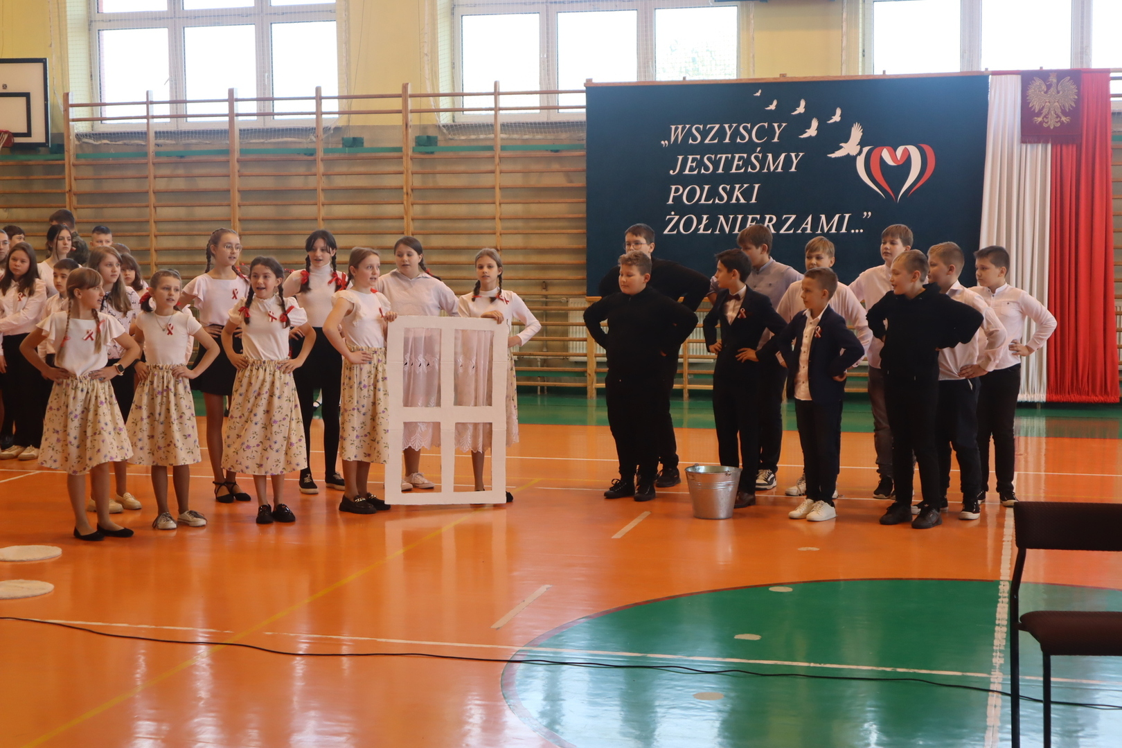 W dalszej części programu uczniowie przygotowani pod okiem nauczycieli wystawili przedstawienie, które wprowadziło nas w atmosferę patriotyzmu i narodowej dumy. Mali artyści przypomnieli najważniejsze wydarzenia z historii Polski, które poprzedzały wydarzenia 11 listopada 1918 r. Podczas akademii nie zabrakło również wspomnień o bohaterach narodowych, którzy poświęcili swoje życie dla niepodległości ojczyzny. Dopełnieniem akademii były pieśni wykonane przez szkolny chór. Na podsumowanie artystycznych występów wystąpili uczniowie z klas 4a i 5a - zwycięzcy Międzyklasowego Konkursu Pieśni Patriotycznych.