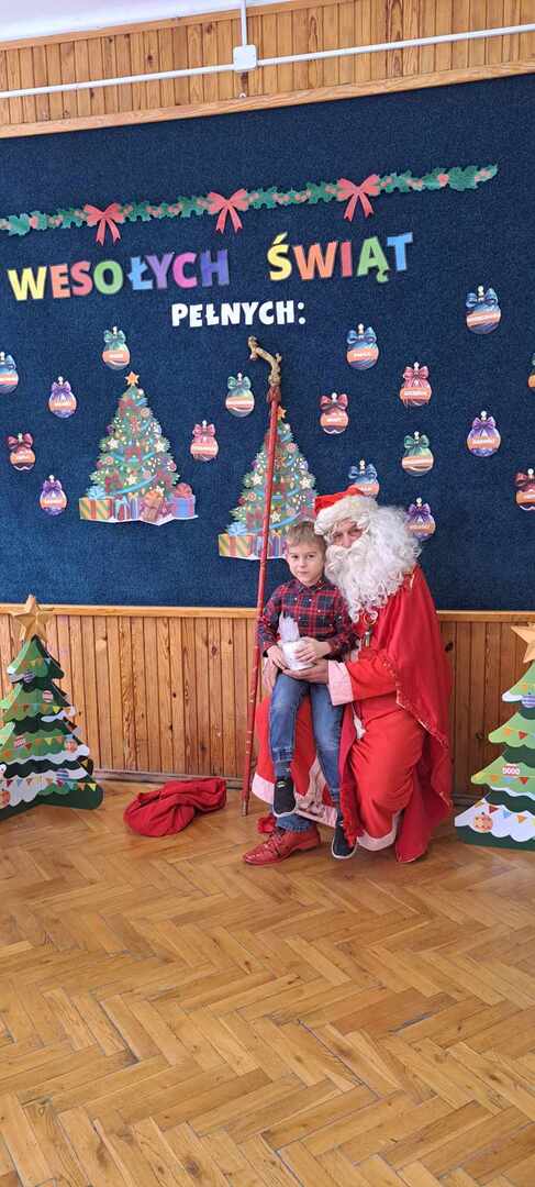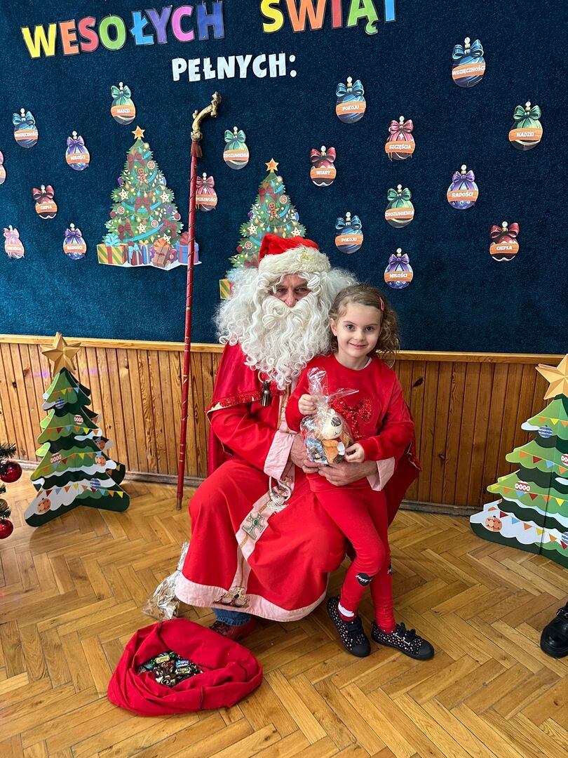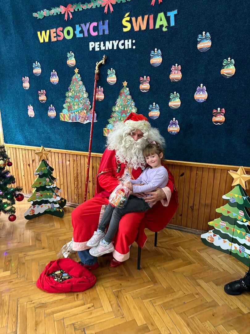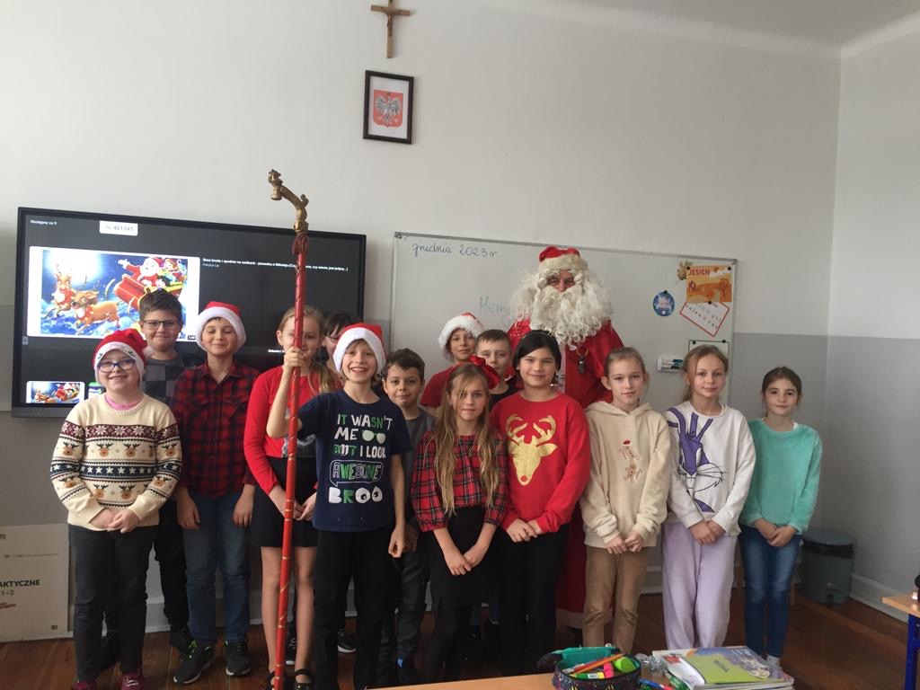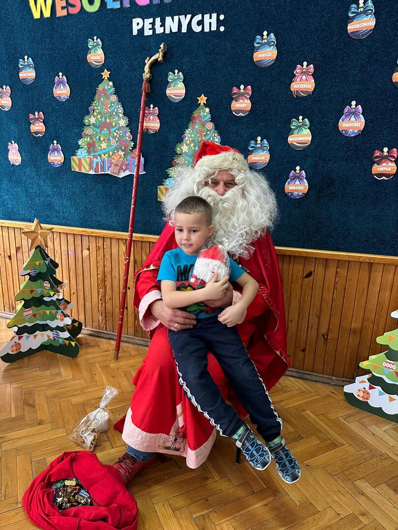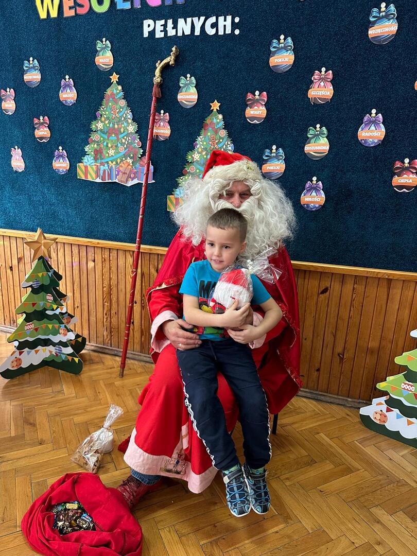 Jak co roku, 6 grudnia 2023r. naszą szkołę odwiedził Mikołaj. Wizyta zacnego gościa wywołała uśmiech na twarzach naszych uczniów, nauczycieli oraz pracowników szkoły. Każda z grup przedszkolnych przygotowała gorące powitanie dla Mikołaja. Już od samego rana dzieci z niecierpliwością wyczekiwały dźwięku dzwoneczka zapowiadającego przybycie tego wyjątkowego gościa. Przedszkolaki zaprezentowały przygotowane wiersze oraz piosenki. Długo oczekiwany gość obdarował w zamian dzieci słodyczami oraz upominkami. Mikołaj nie zapomniał również o starszych uczniach.