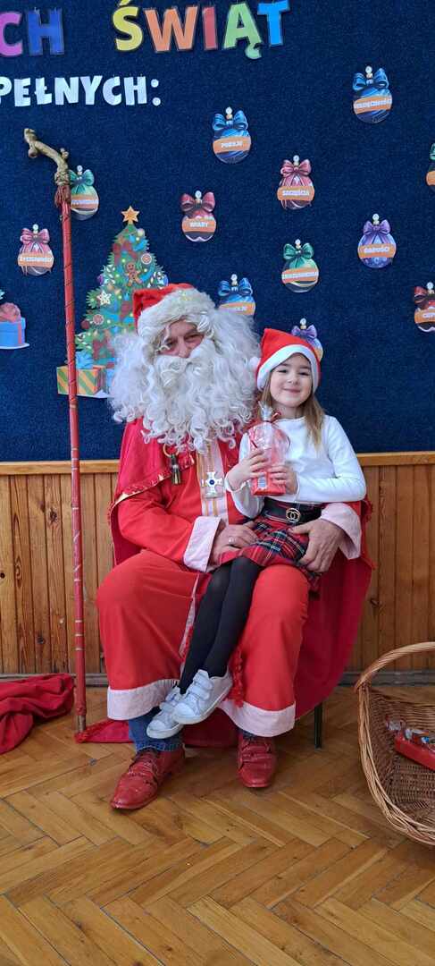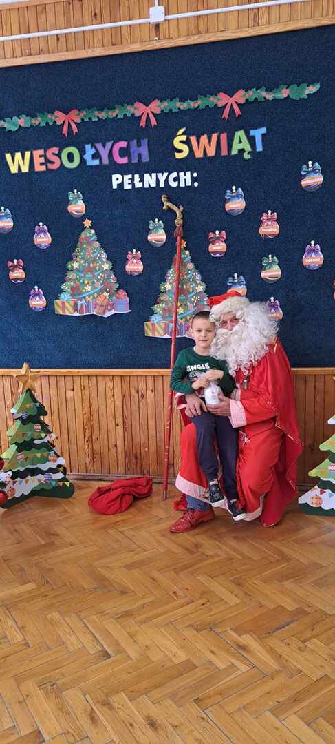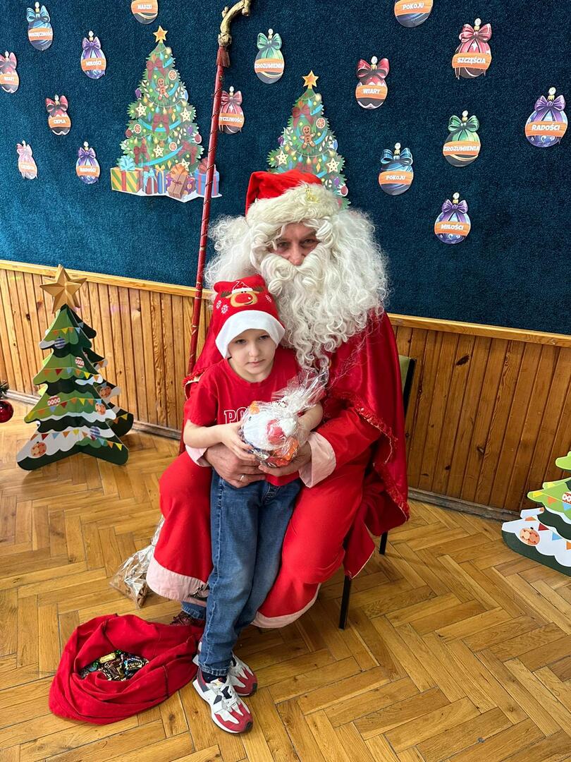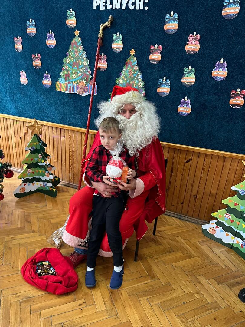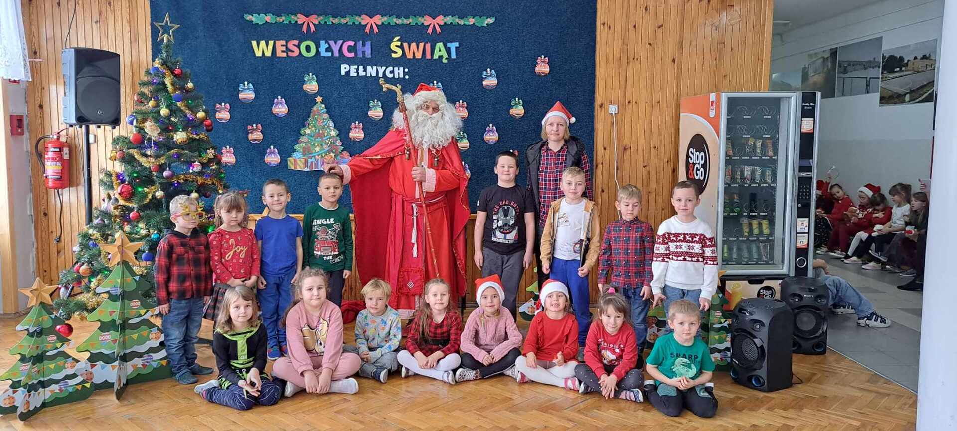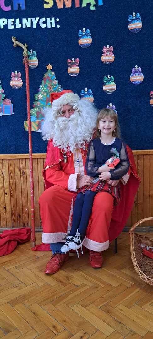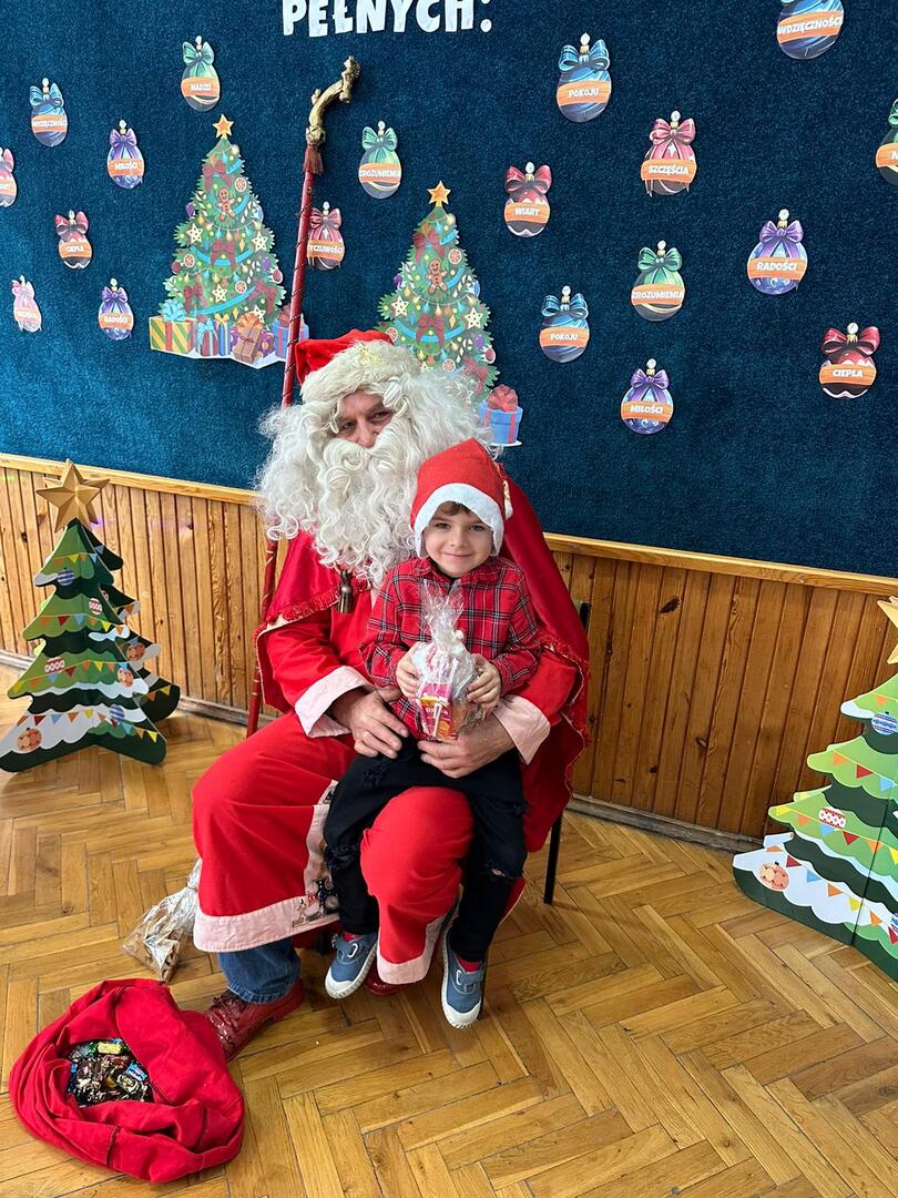 Jak co roku, 6 grudnia 2023r. naszą szkołę odwiedził Mikołaj. Wizyta zacnego gościa wywołała uśmiech na twarzach naszych uczniów, nauczycieli oraz pracowników szkoły. Każda z grup przedszkolnych przygotowała gorące powitanie dla Mikołaja. Już od samego rana dzieci z niecierpliwością wyczekiwały dźwięku dzwoneczka zapowiadającego przybycie tego wyjątkowego gościa. Przedszkolaki zaprezentowały przygotowane wiersze oraz piosenki. Długo oczekiwany gość obdarował w zamian dzieci słodyczami oraz upominkami. Mikołaj nie zapomniał również o starszych uczniach.