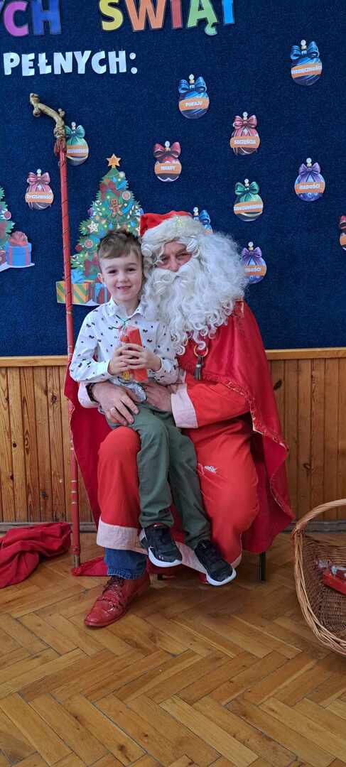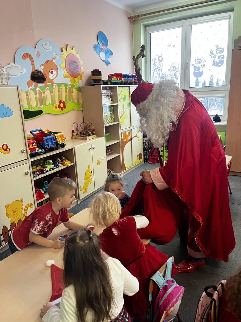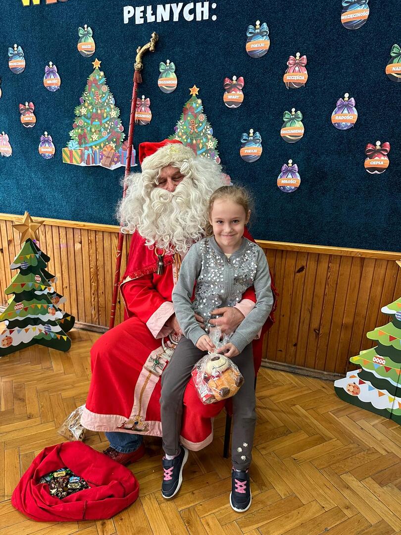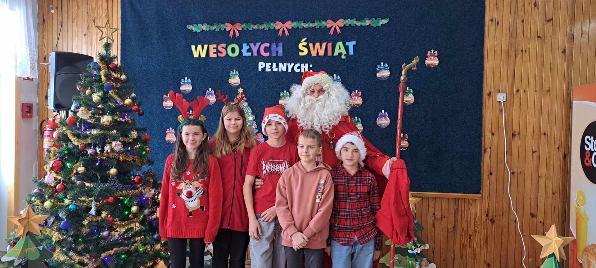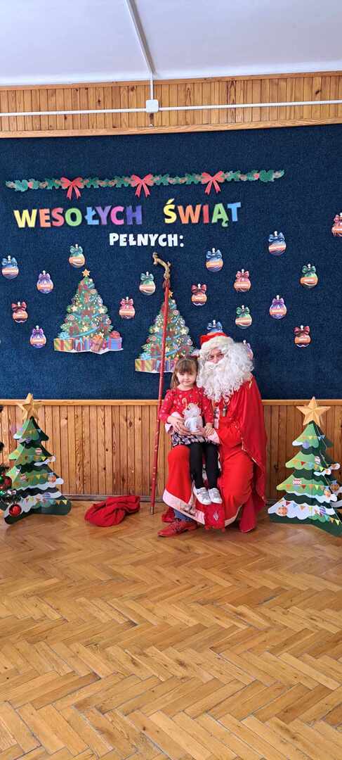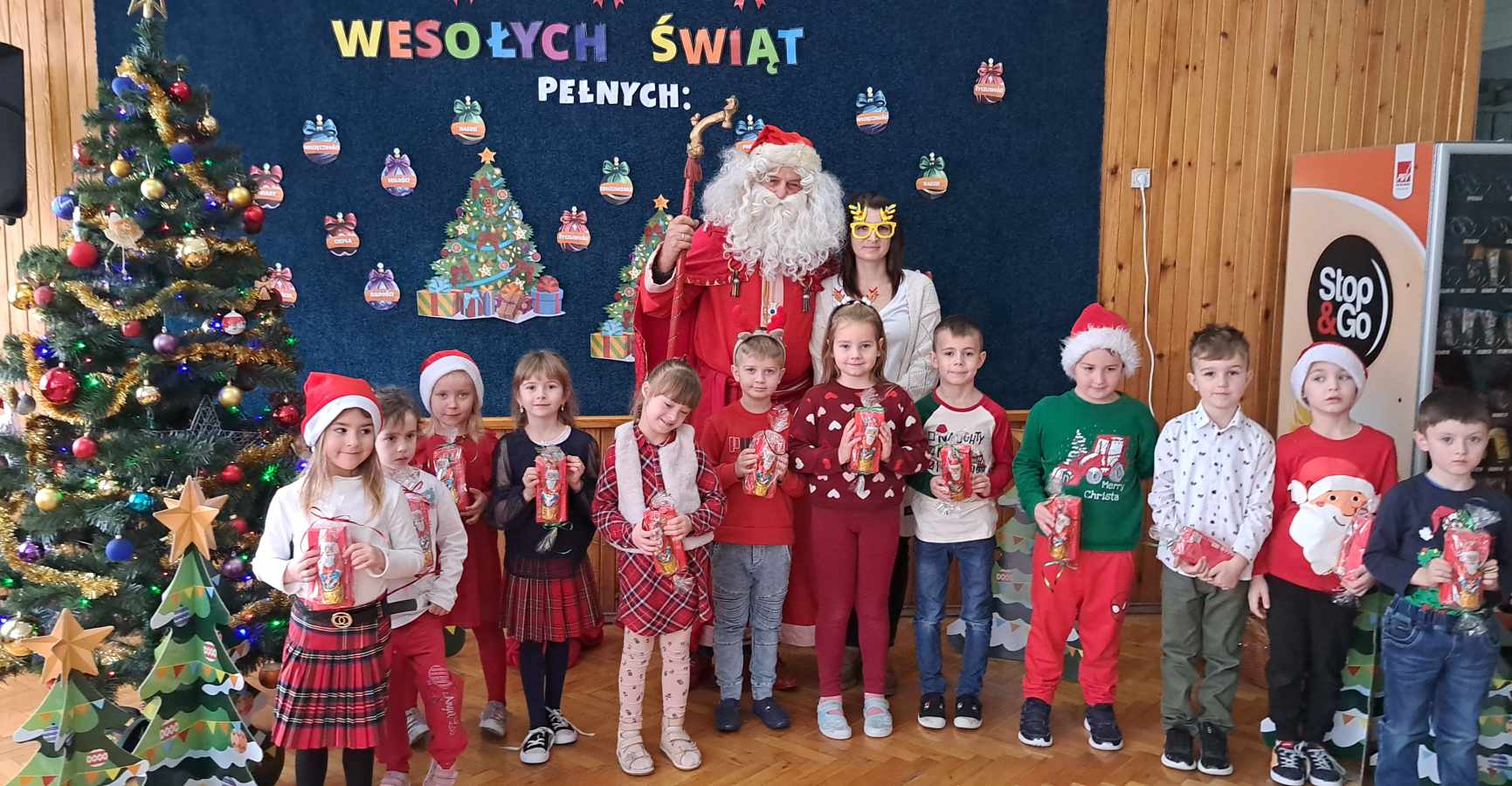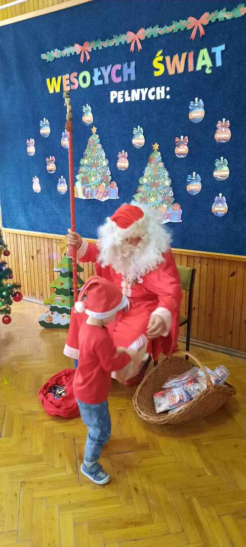 Jak co roku, 6 grudnia 2023r. naszą szkołę odwiedził Mikołaj. Wizyta zacnego gościa wywołała uśmiech na twarzach naszych uczniów, nauczycieli oraz pracowników szkoły. Każda z grup przedszkolnych przygotowała gorące powitanie dla Mikołaja. Już od samego rana dzieci z niecierpliwością wyczekiwały dźwięku dzwoneczka zapowiadającego przybycie tego wyjątkowego gościa. Przedszkolaki zaprezentowały przygotowane wiersze oraz piosenki. Długo oczekiwany gość obdarował w zamian dzieci słodyczami oraz upominkami. Mikołaj nie zapomniał również o starszych uczniach.