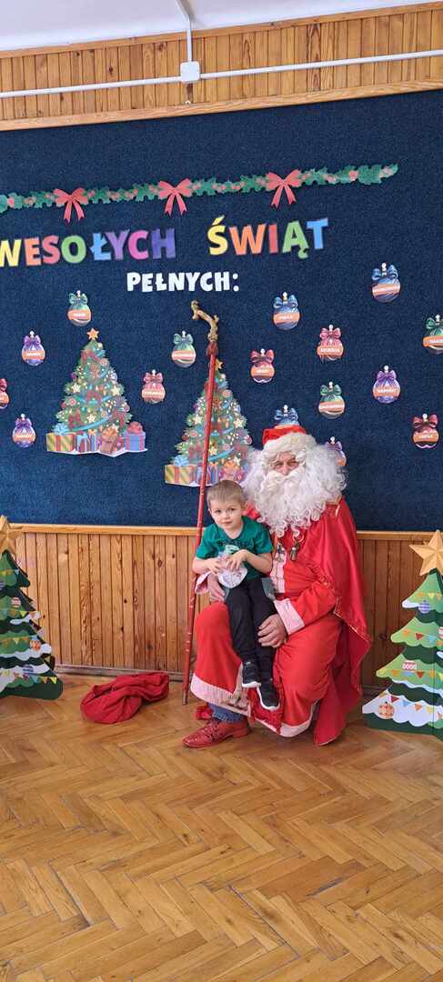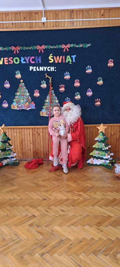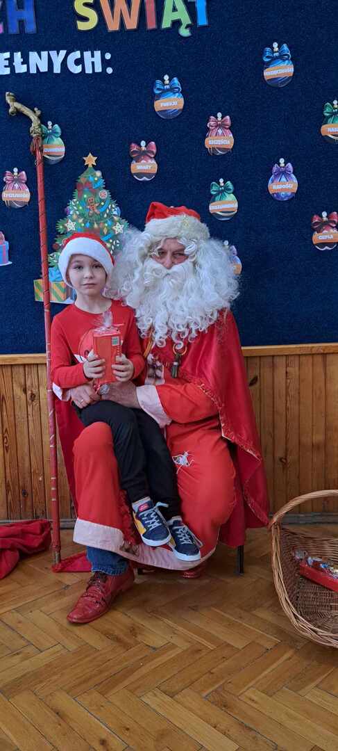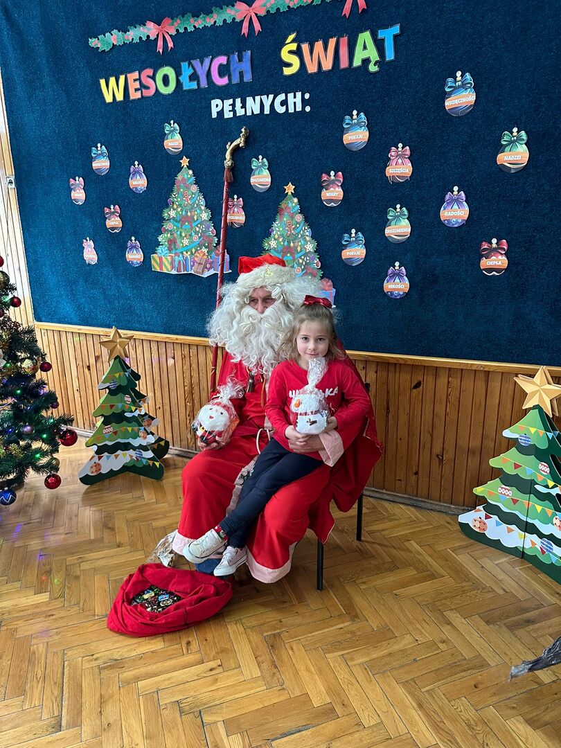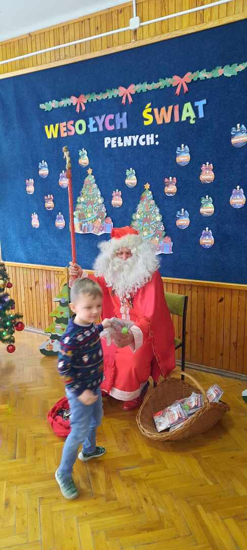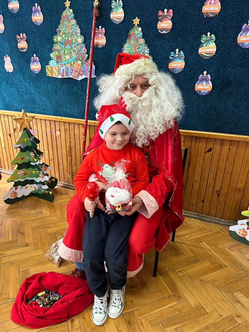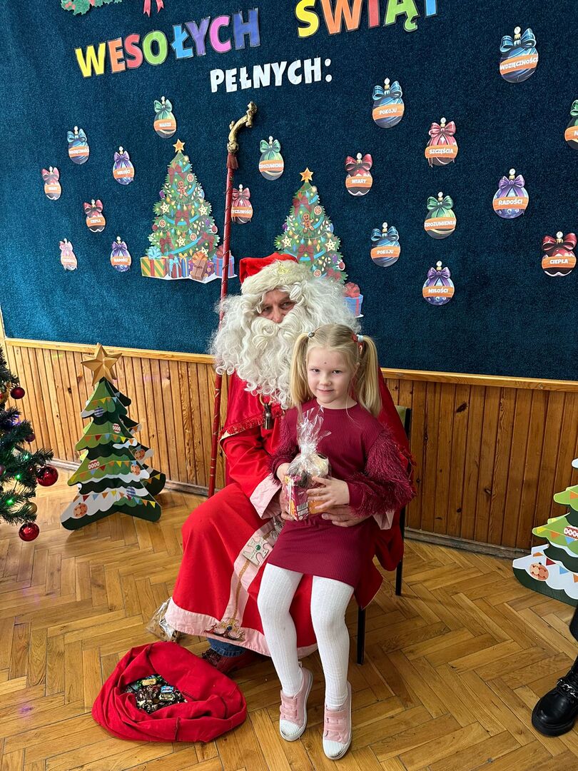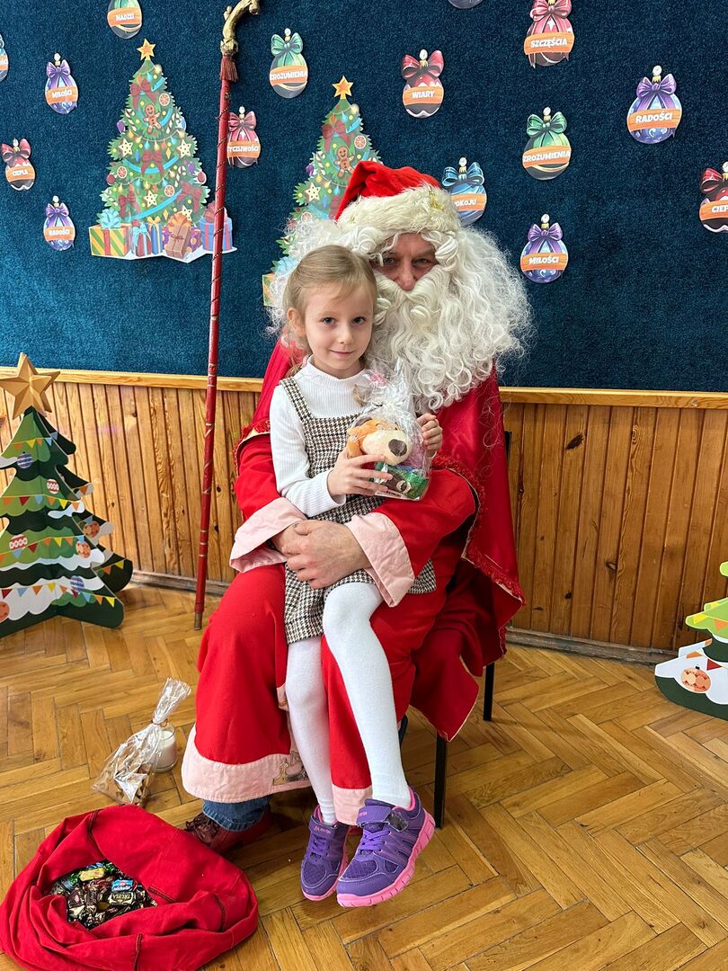 Jak co roku, 6 grudnia 2023r. naszą szkołę odwiedził Mikołaj. Wizyta zacnego gościa wywołała uśmiech na twarzach naszych uczniów, nauczycieli oraz pracowników szkoły. Każda z grup przedszkolnych przygotowała gorące powitanie dla Mikołaja. Już od samego rana dzieci z niecierpliwością wyczekiwały dźwięku dzwoneczka zapowiadającego przybycie tego wyjątkowego gościa. Przedszkolaki zaprezentowały przygotowane wiersze oraz piosenki. Długo oczekiwany gość obdarował w zamian dzieci słodyczami oraz upominkami. Mikołaj nie zapomniał również o starszych uczniach.