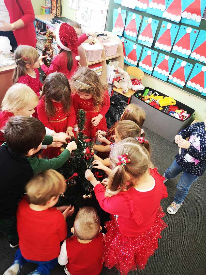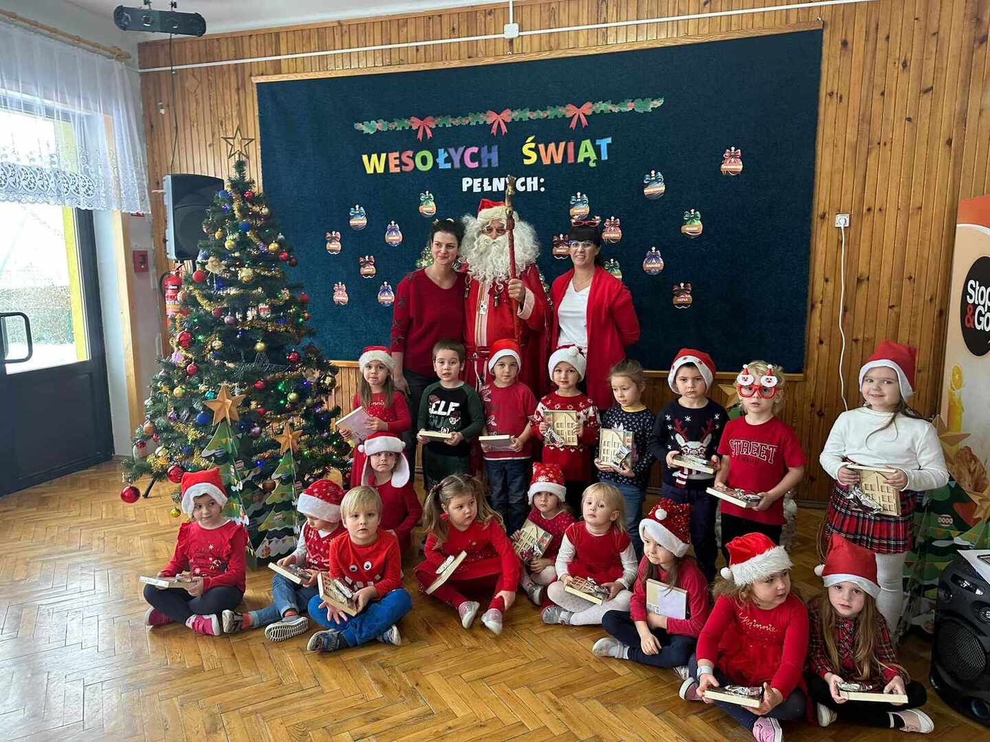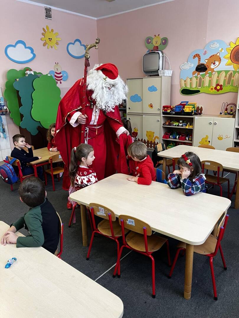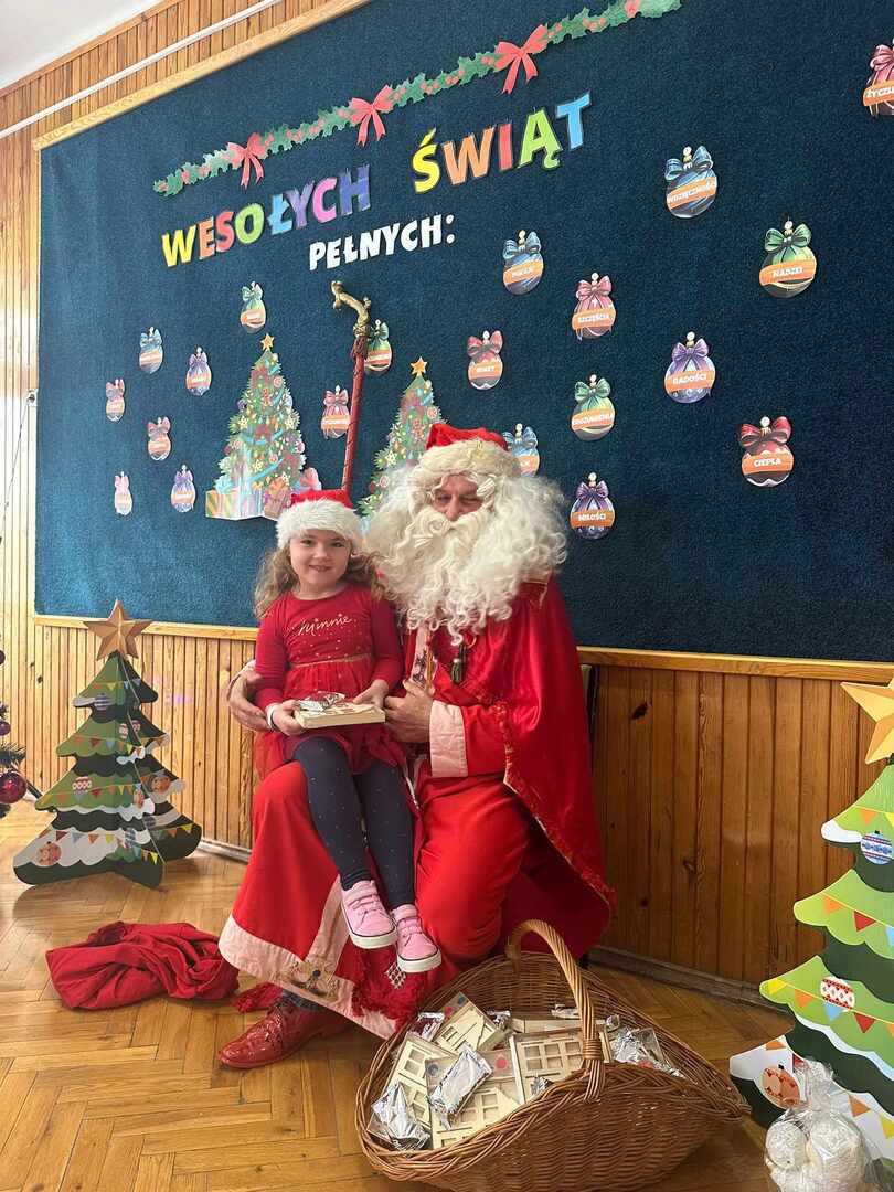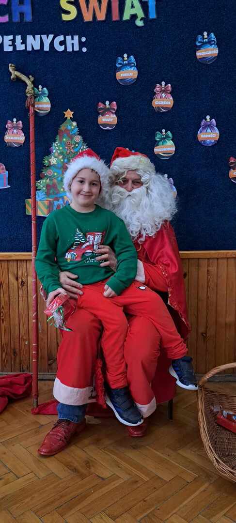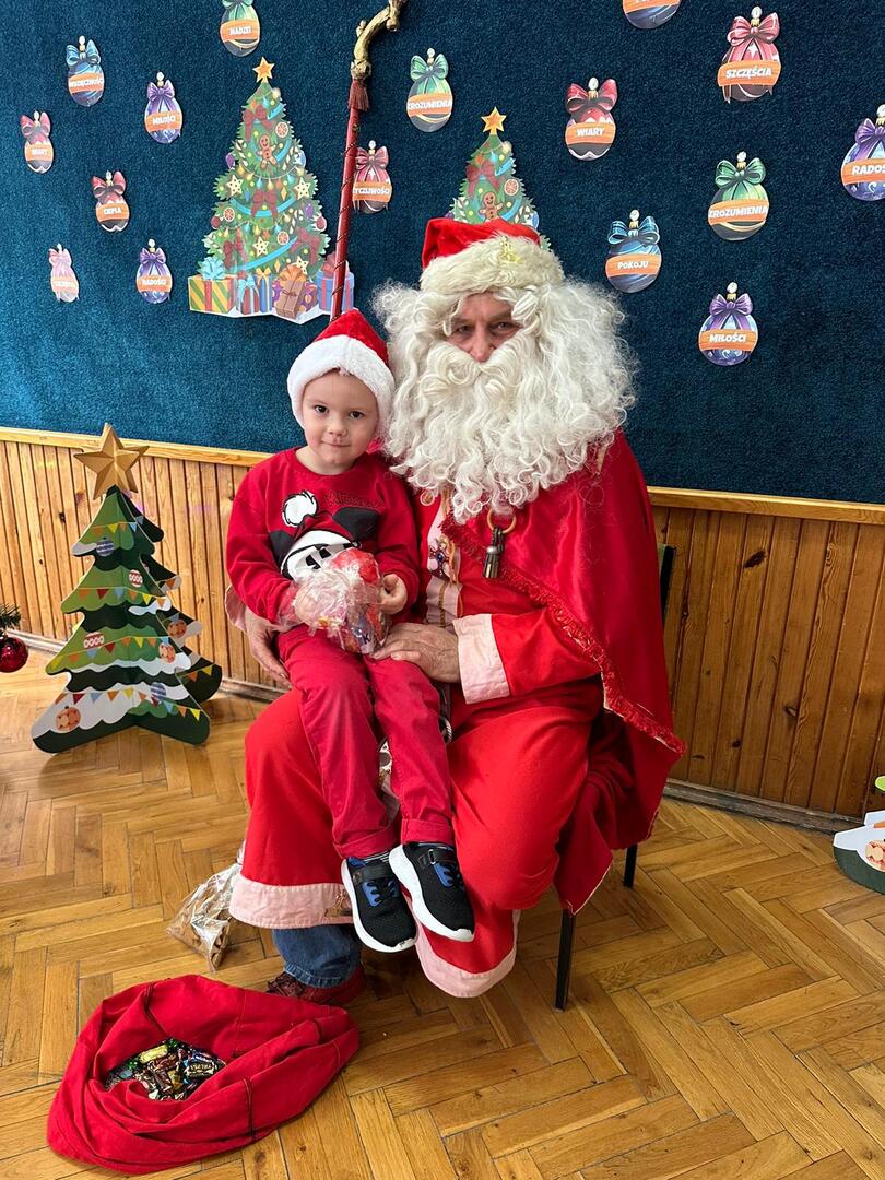 Jak co roku, 6 grudnia 2023r. naszą szkołę odwiedził Mikołaj. Wizyta zacnego gościa wywołała uśmiech na twarzach naszych uczniów, nauczycieli oraz pracowników szkoły. Każda z grup przedszkolnych przygotowała gorące powitanie dla Mikołaja. Już od samego rana dzieci z niecierpliwością wyczekiwały dźwięku dzwoneczka zapowiadającego przybycie tego wyjątkowego gościa. Przedszkolaki zaprezentowały przygotowane wiersze oraz piosenki. Długo oczekiwany gość obdarował w zamian dzieci słodyczami oraz upominkami. Mikołaj nie zapomniał również o starszych uczniach.