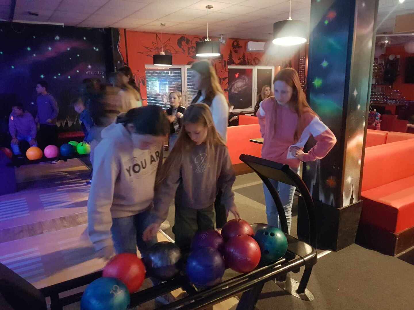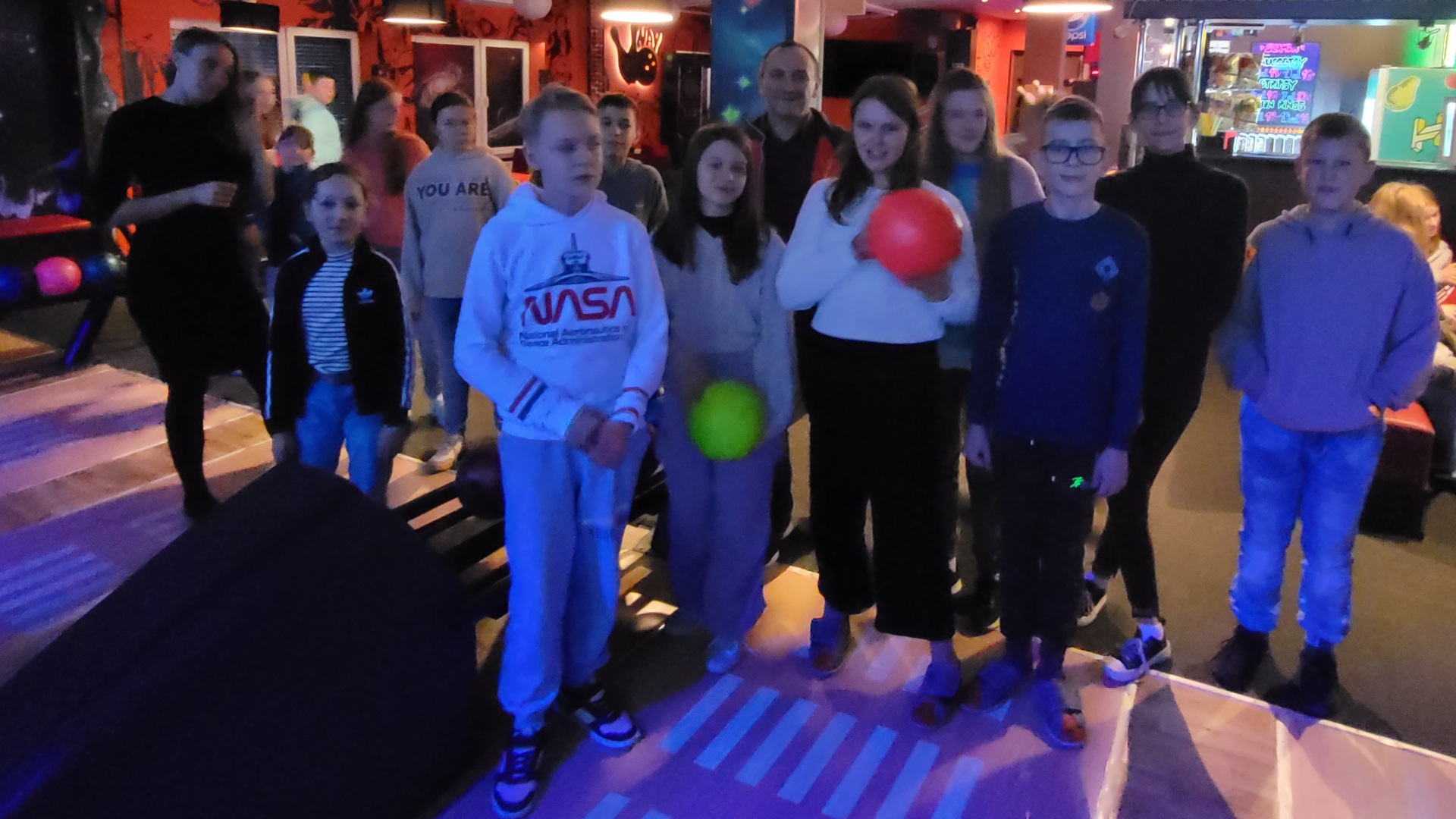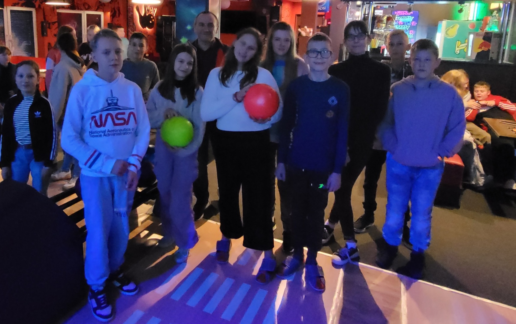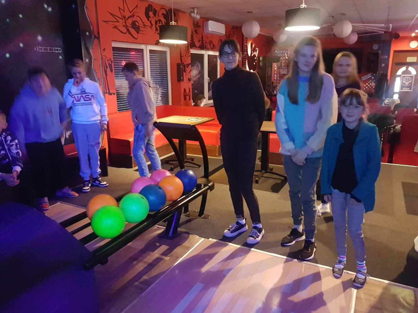 Po wyjściu z kina zjedliśmy posiłek w KFC i udaliśmy się do kręgielni NAVI, ostatniego punktu naszego wyjazdu. Gra w kręgle okazała się niezwykle wciągająca. Wszyscy świetnie poradziliśmy sobie z tą dyscypliną sportu. Zbijanie kręgli było dla nas niesamowicie emocjonujące i wywoływało uśmiech na naszych twarzach.
