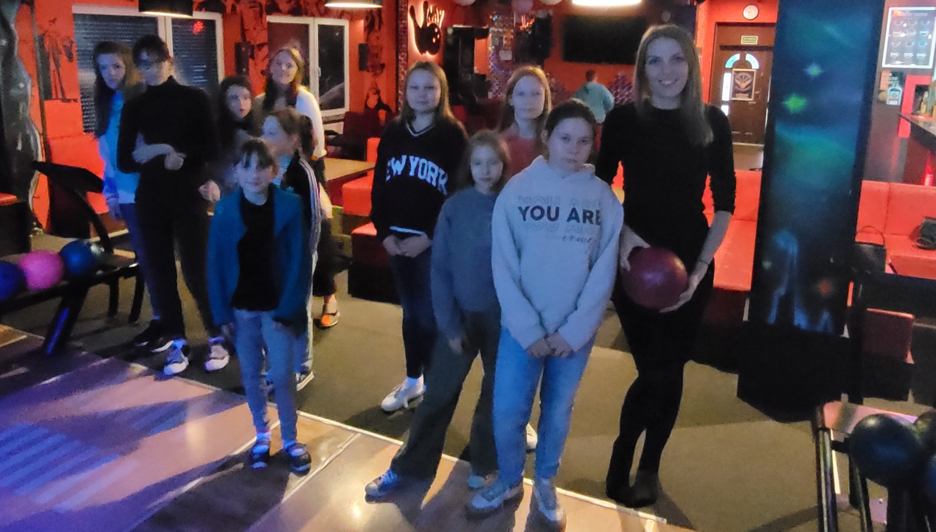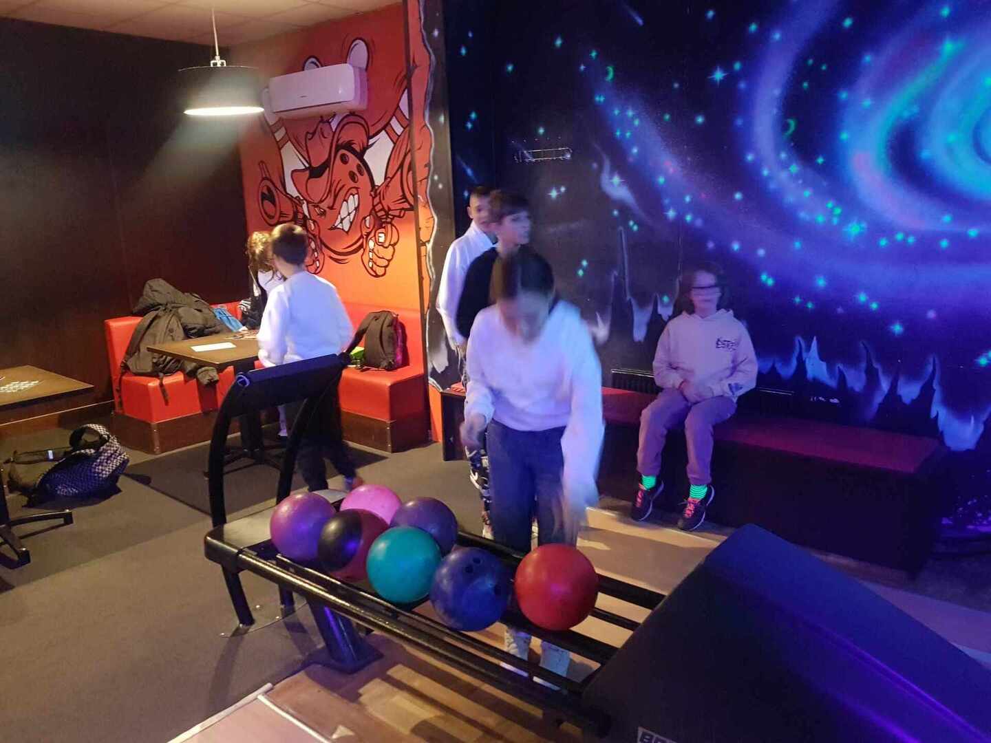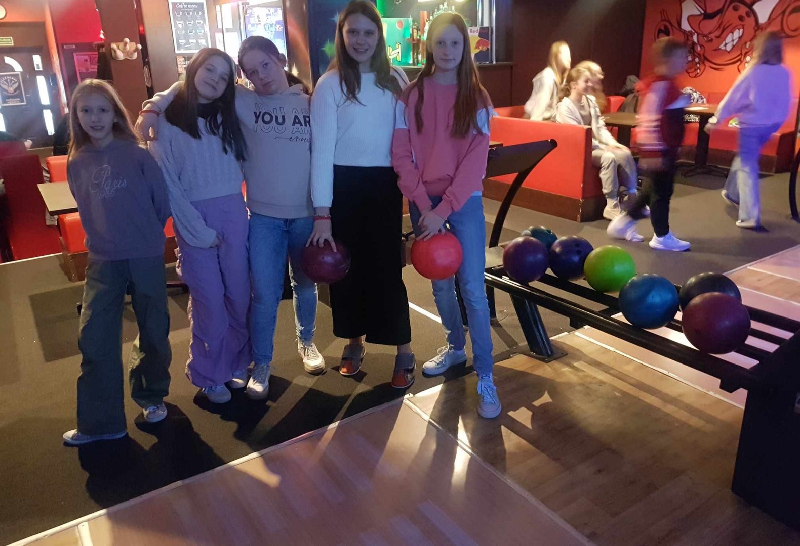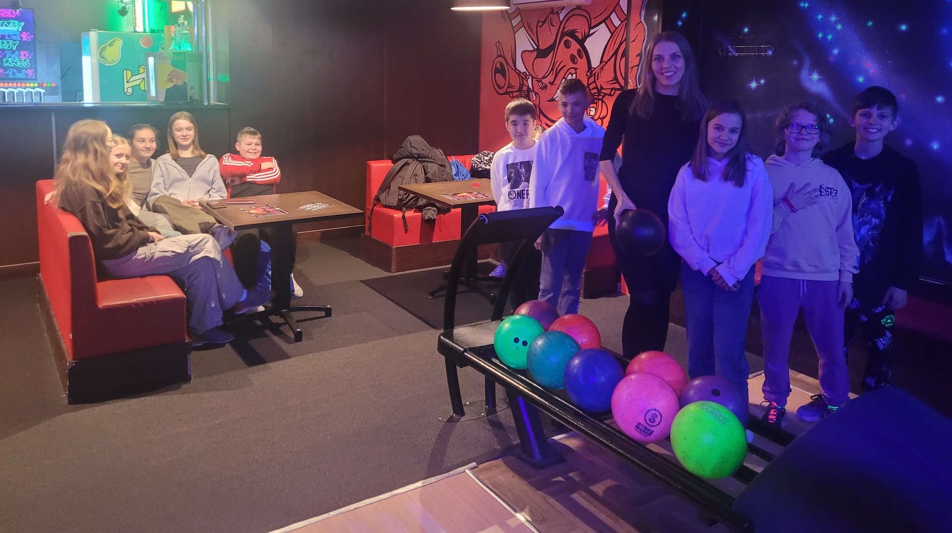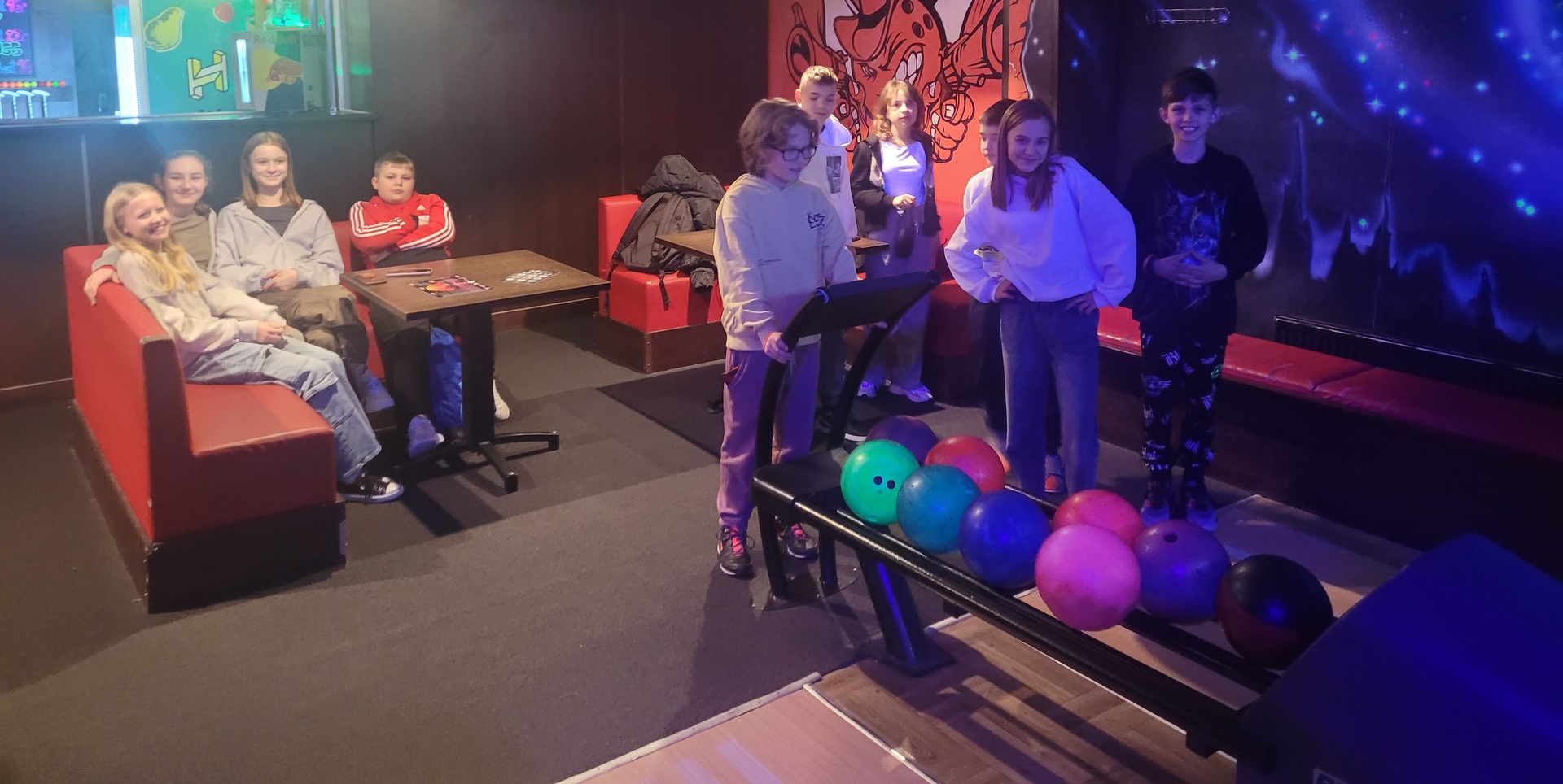 Po wyjściu z kina zjedliśmy posiłek w KFC i udaliśmy się do kręgielni NAVI, ostatniego punktu naszego wyjazdu. Gra w kręgle okazała się niezwykle wciągająca. Wszyscy świetnie poradziliśmy sobie z tą dyscypliną sportu. Zbijanie kręgli było dla nas niesamowicie emocjonujące i wywoływało uśmiech na naszych twarzach.