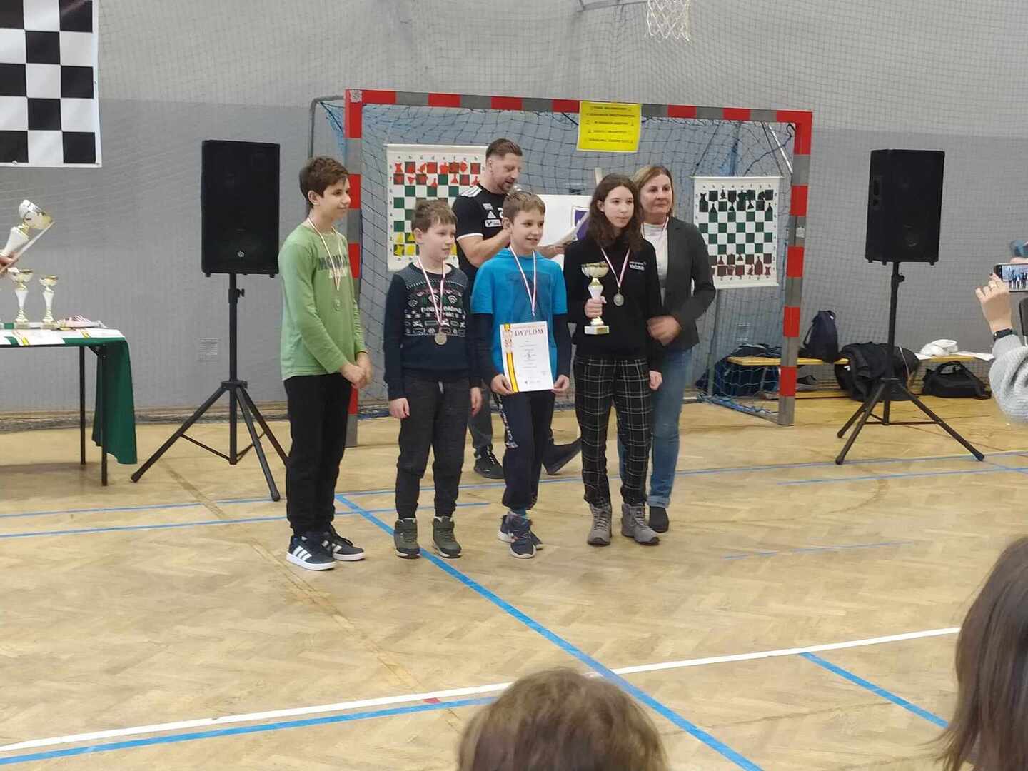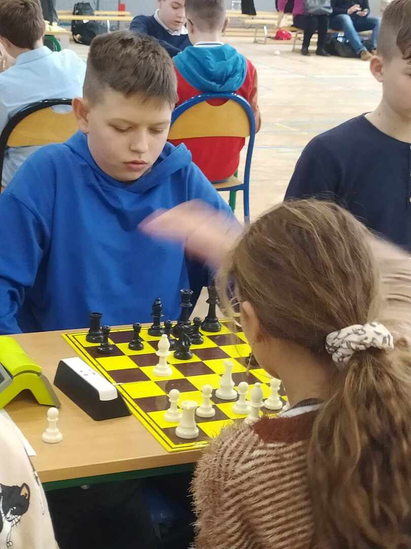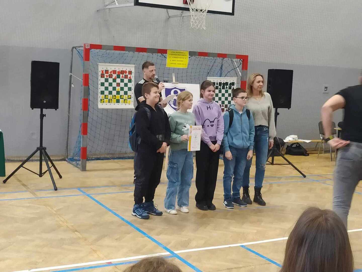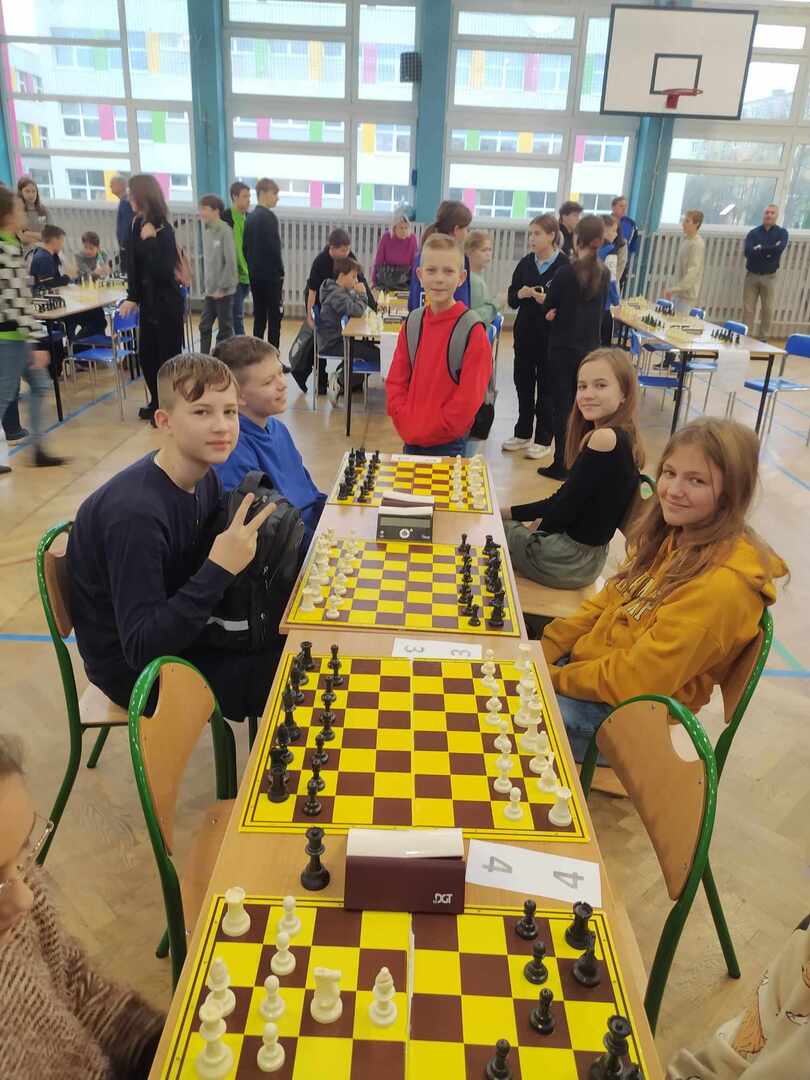 Naszą szkołę reprezentowali utalentowani szachiści: Jakub Kwiatkowski, Wojciech Michniewski, Michał Matysiak, Jagoda Kwiatkowska, Antonina Kotynia. Po wspaniałej i wyczerpującej walce uplasowaliśmy się na 5 miejscu. Dziękujemy zawodnikom i gratulujemy dobrej lokaty. Może w przyszłym roku będzie lepiej?!.