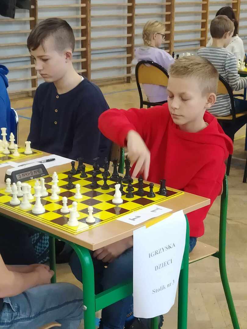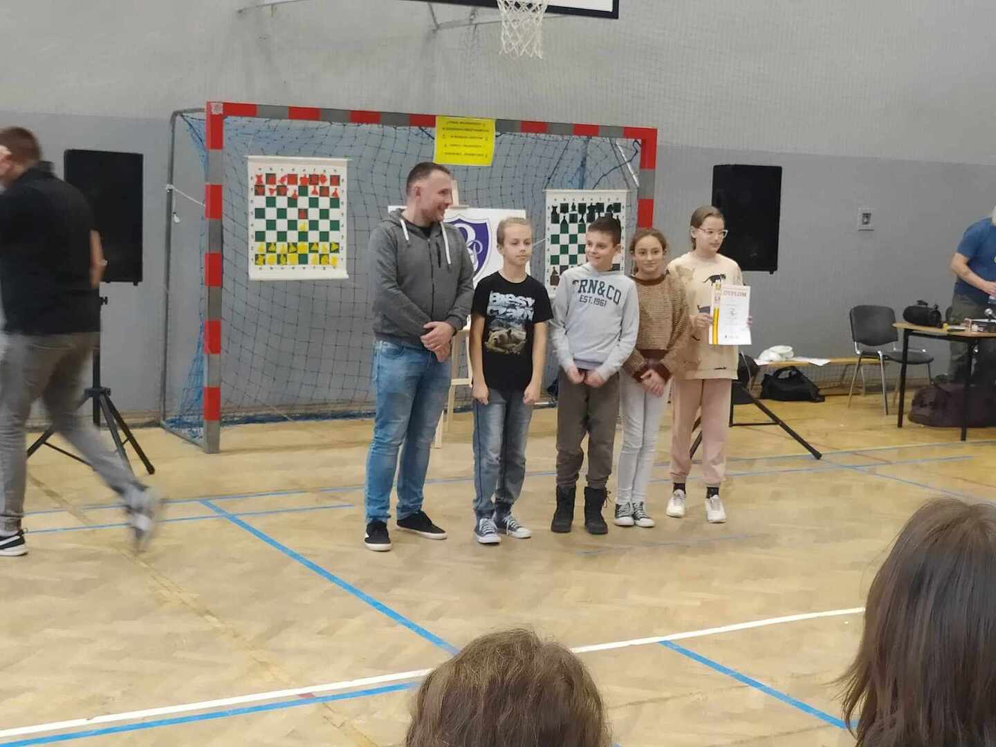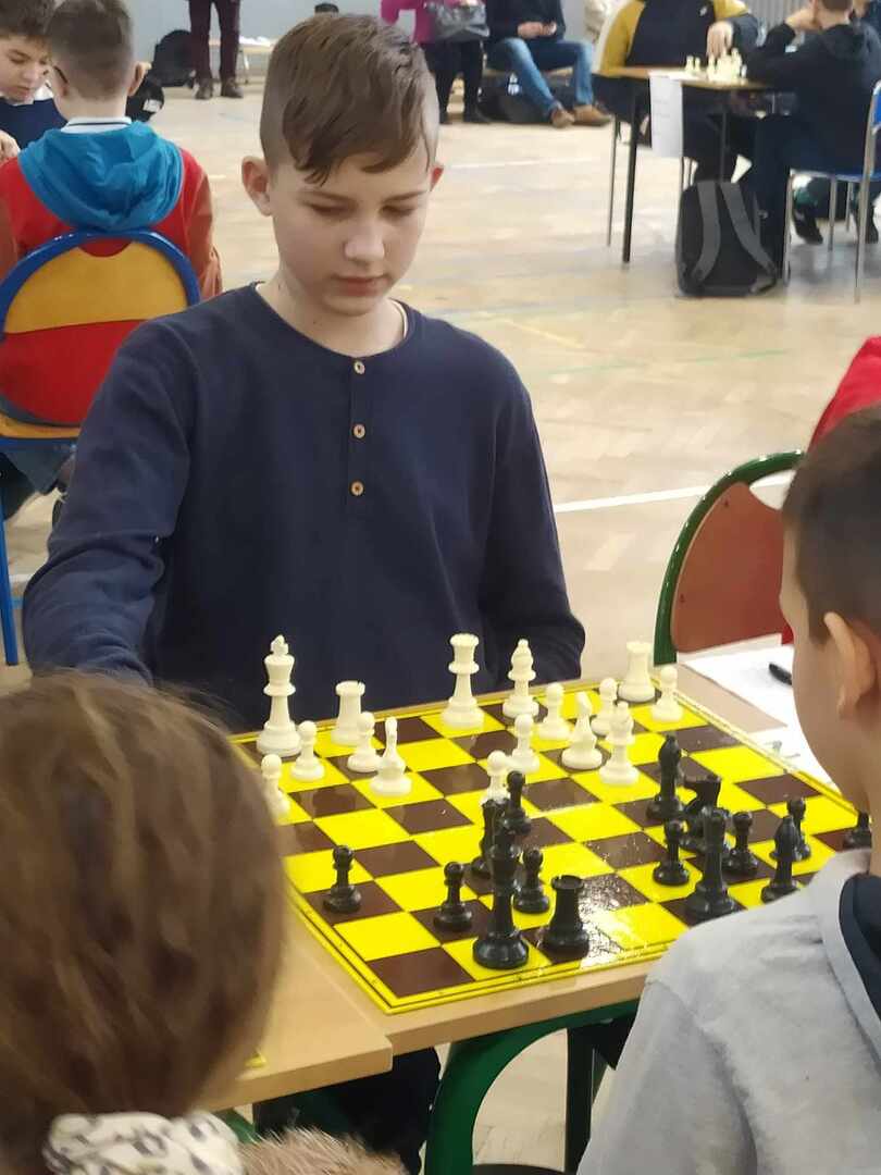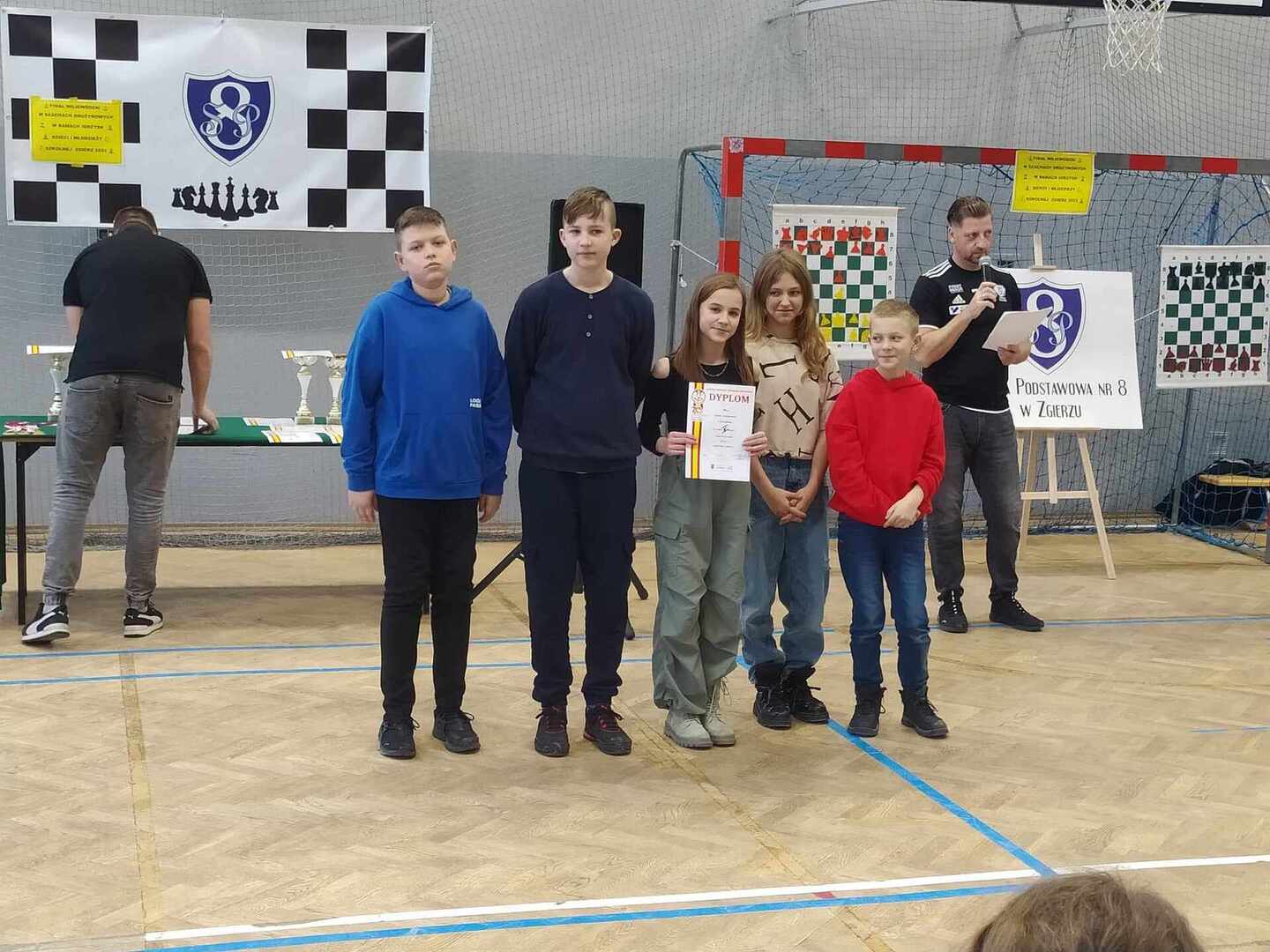 Naszą szkołę reprezentowali utalentowani szachiści: Jakub Kwiatkowski, Wojciech Michniewski, Michał Matysiak, Jagoda Kwiatkowska, Antonina Kotynia. Po wspaniałej i wyczerpującej walce uplasowaliśmy się na 5 miejscu. Dziękujemy zawodnikom i gratulujemy dobrej lokaty. Może w przyszłym roku będzie lepiej?!.