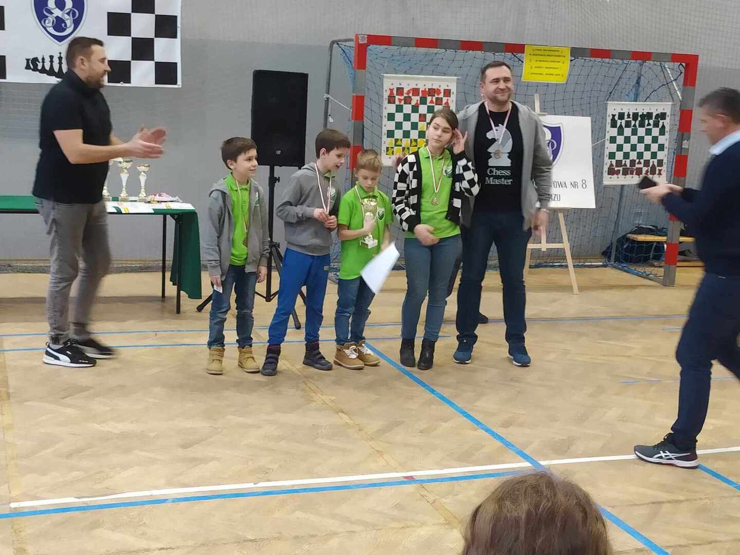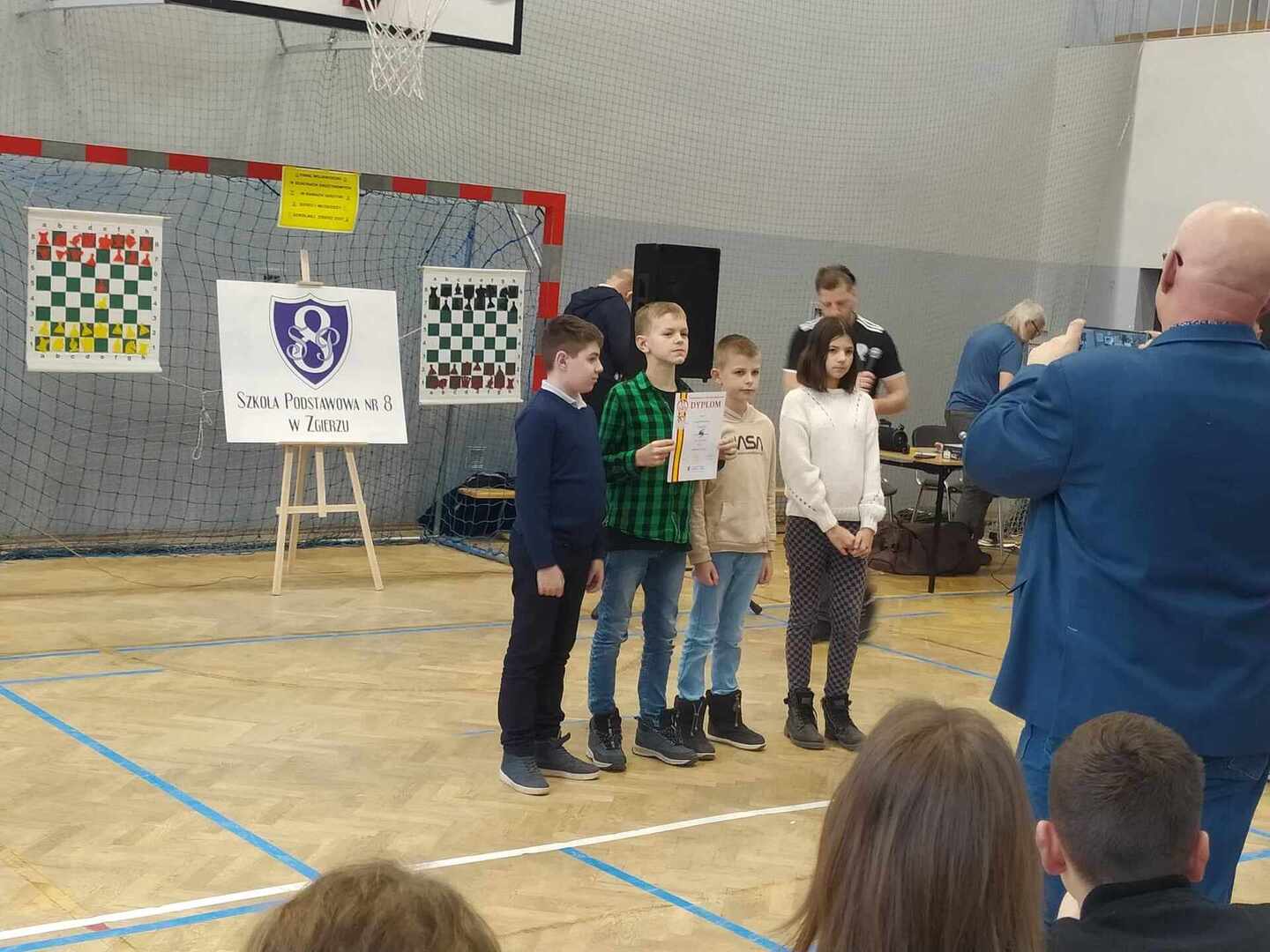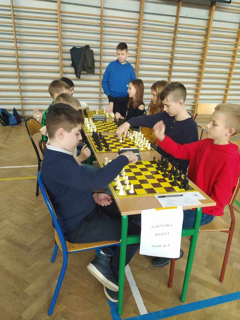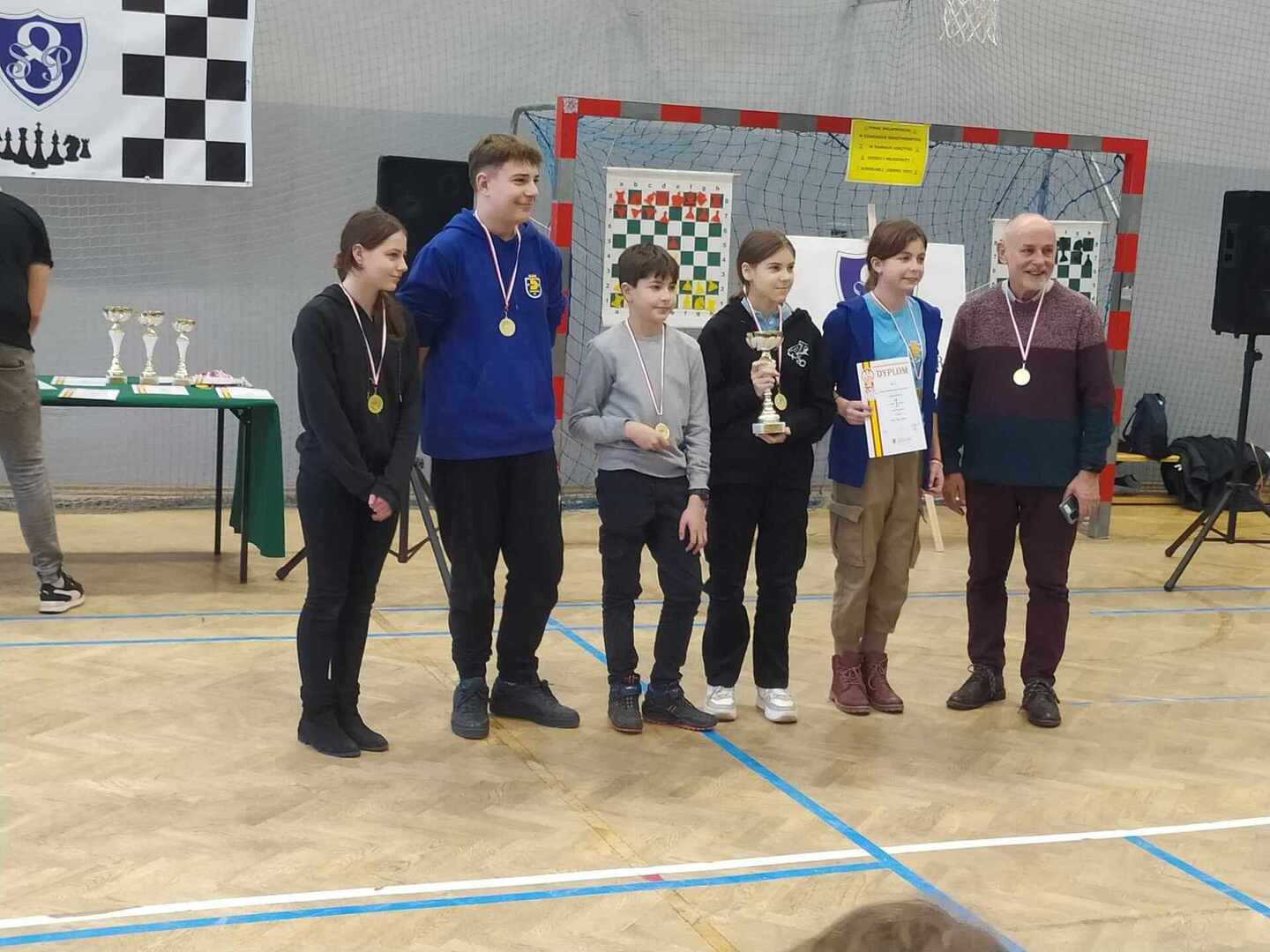 Naszą szkołę reprezentowali utalentowani szachiści: Jakub Kwiatkowski, Wojciech Michniewski, Michał Matysiak, Jagoda Kwiatkowska, Antonina Kotynia. Po wspaniałej i wyczerpującej walce uplasowaliśmy się na 5 miejscu. Dziękujemy zawodnikom i gratulujemy dobrej lokaty. Może w przyszłym roku będzie lepiej?!.