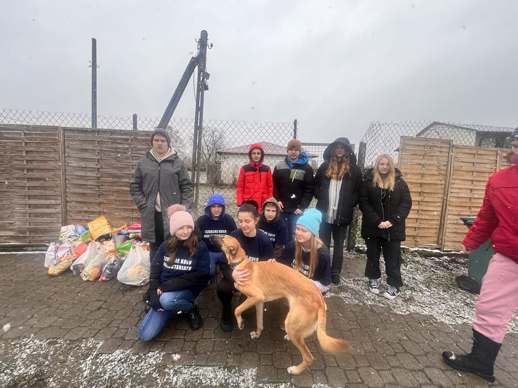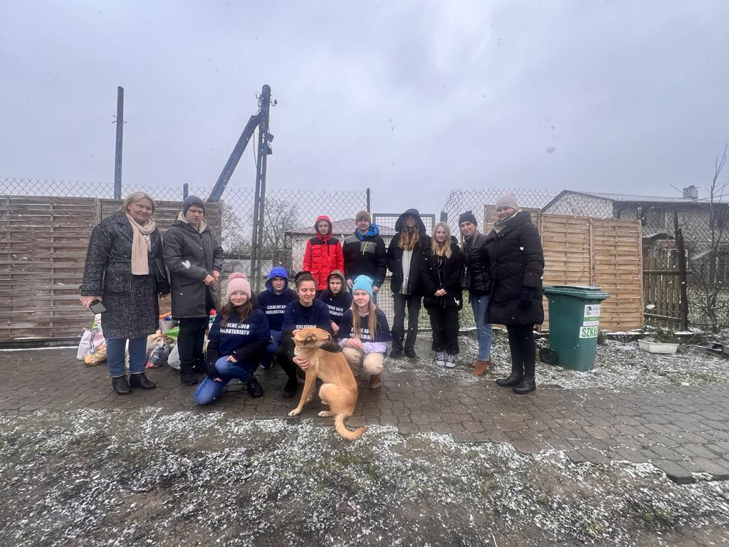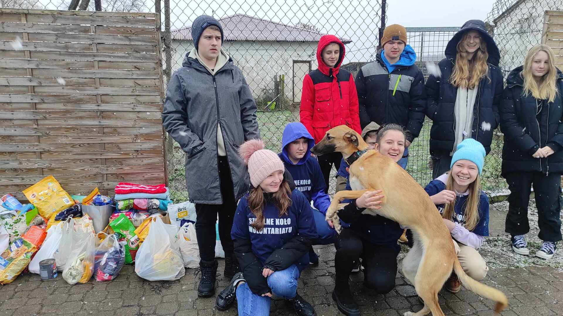 Przez cały listopad 2023 r. trwała w naszej szkole zbiórka darów dla schroniska w Boguszycach, zorganizowana przez Szkolne Koło Wolontariatu. Dzięki zaangażowaniu wolontariuszy i uczniów udało się zebrać pokaźne zapasy smakołyków, środków czystości, zabawek, ale przede wszystkim karmy dla podopiecznych schroniska. Wolontariusze wraz z opiekunami w ostatni piątek (15 grudnia) odwiedzili schronisko w Boguszycach i obdarowali czworonożnych pupili darami. Szczególnego wymiaru nabrało to wydarzenie dzięki atmosferze zbliżających się świąt. Spotkanie nie obyło się również bez zabawy, spacerów i szaleństwa z psiakami w zimowej atmosferze.