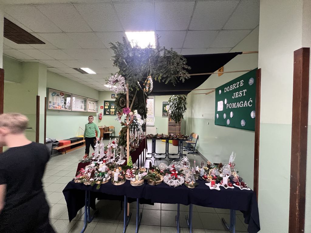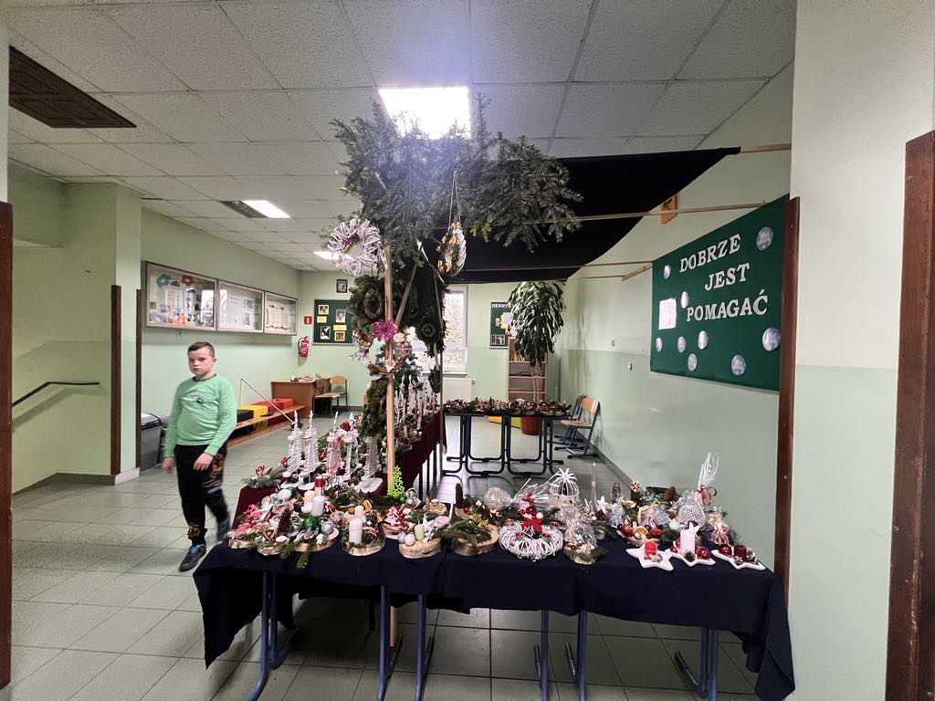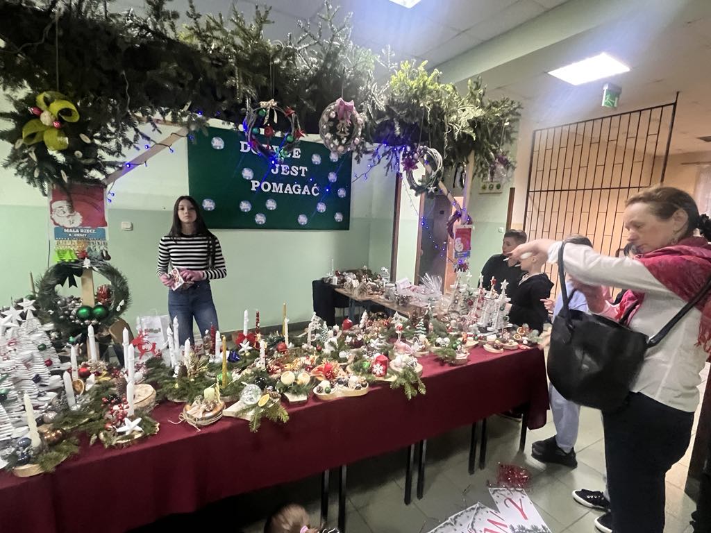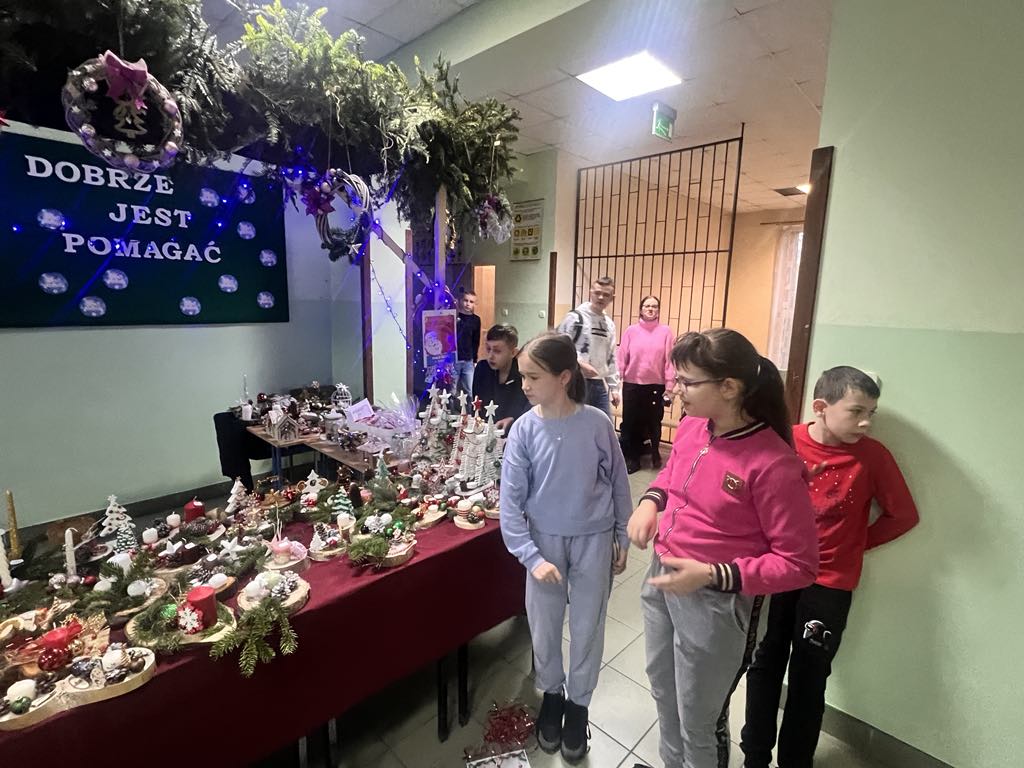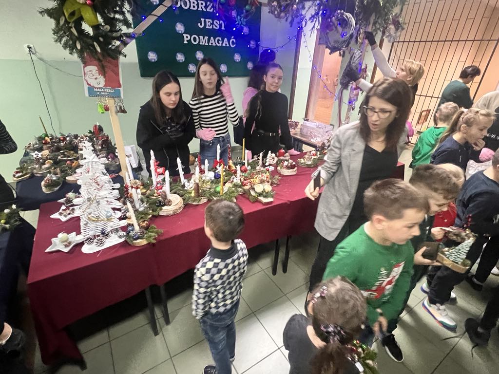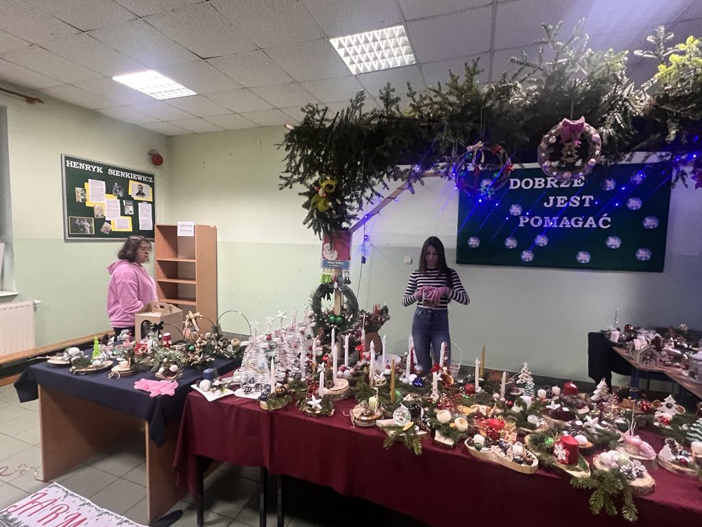 Tradycją w naszej szkole stało się, że corocznie w okresie przedświątecznym organizowany jest, przez Szkolne Koło Wolontariatu, Jarmark Bożonarodzeniowy. Także i w tym roku mogliśmy podziwiać i nabyć wyroby rękodzieła naszych uczniów. Trzecia już edycja Jarmarku odbyła się w środę, 20 grudnia. Na wszystkich, którzy odwiedzili szkolny kiermasz, czekało wiele pięknych ozdób świątecznych, stroików, breloczków, figurek oraz domowych ciast i pierników. Można było również zakupić gorącą czekoladę, popcorn i smakowite rogaliki. W trakcie trwania kiermaszu zakupy umilała melodia świątecznych piosenek, zapach choinki i świąteczna aranżacja stoisk.