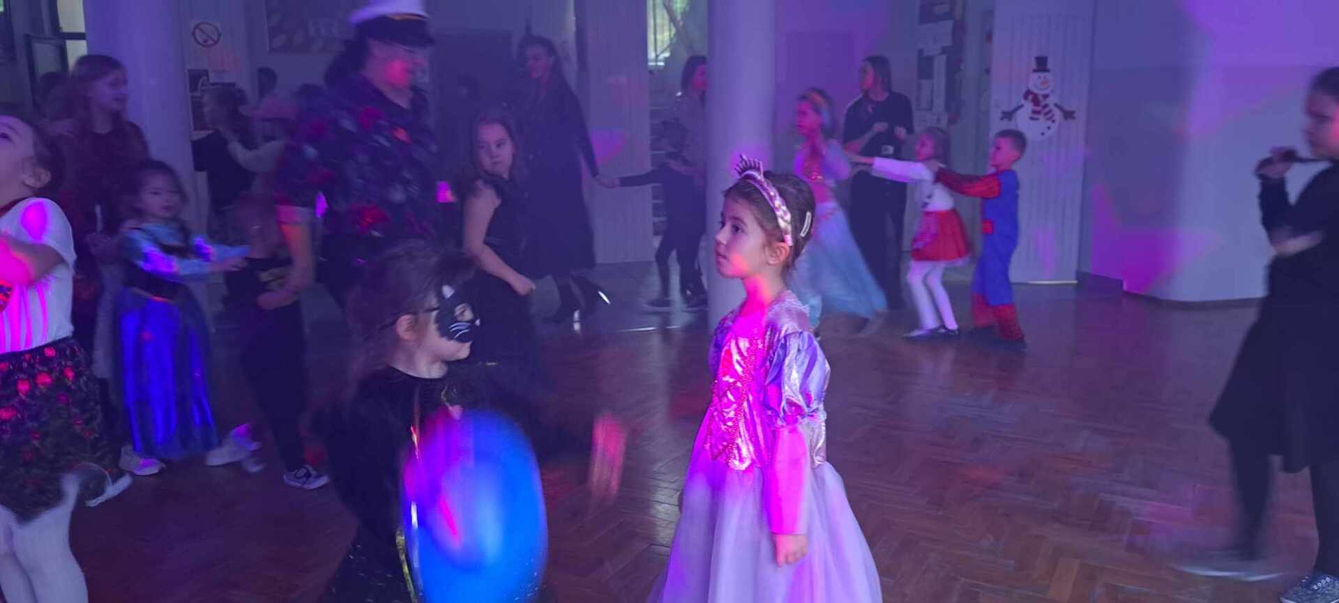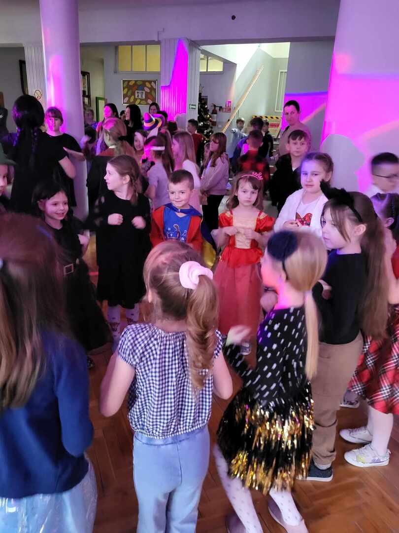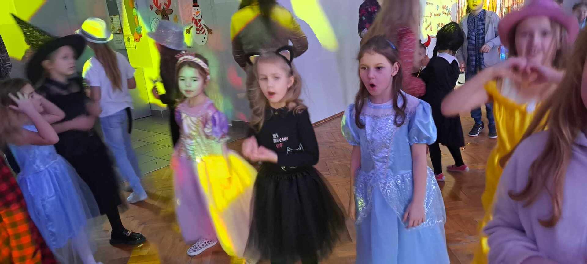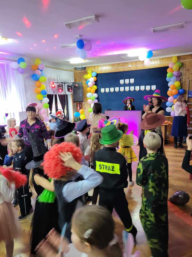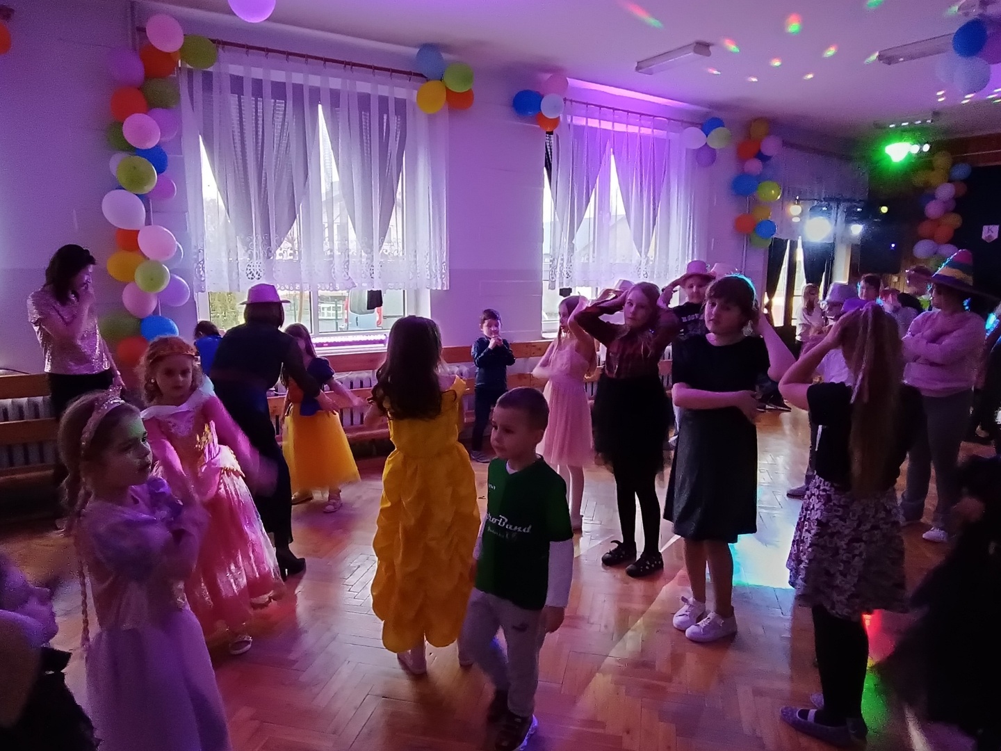 Bal karnawałowy został podzielony na dwie tury: od 9 do 12.10 bawiły się dzieci z grup przedszkolnych i punktu przedszkolnego oraz klasy I-III, natomiast później, od 15 do 19, starsi uczniowie, klasy IV-VIII. Najmłodsi przybyli do szkoły w pięknych i pomysłowych strojach. Wcielili się w bajkowe postaci, księżniczki, policjantów, strażaków, bohaterów filmów i seriali. Uczestnicy balu bawili się przy rytmach różnorodnej muzyki serwowanej przez Didżejkę panią Arletę z Artleta Events. Były również zabawy: pociągi, kaczuchy, belgijka, "Makarena" i wiele innych. Nie obyło się bez efektów specjalnych: dymu i kolorowych światełek… Każdy z uczestników zabawy mógł poeksperymentować z nakryciem głowy i wcielić się w wybraną przez siebie postać. Oprawę muzyczną ufundował Zarząd Rady Rodziców.