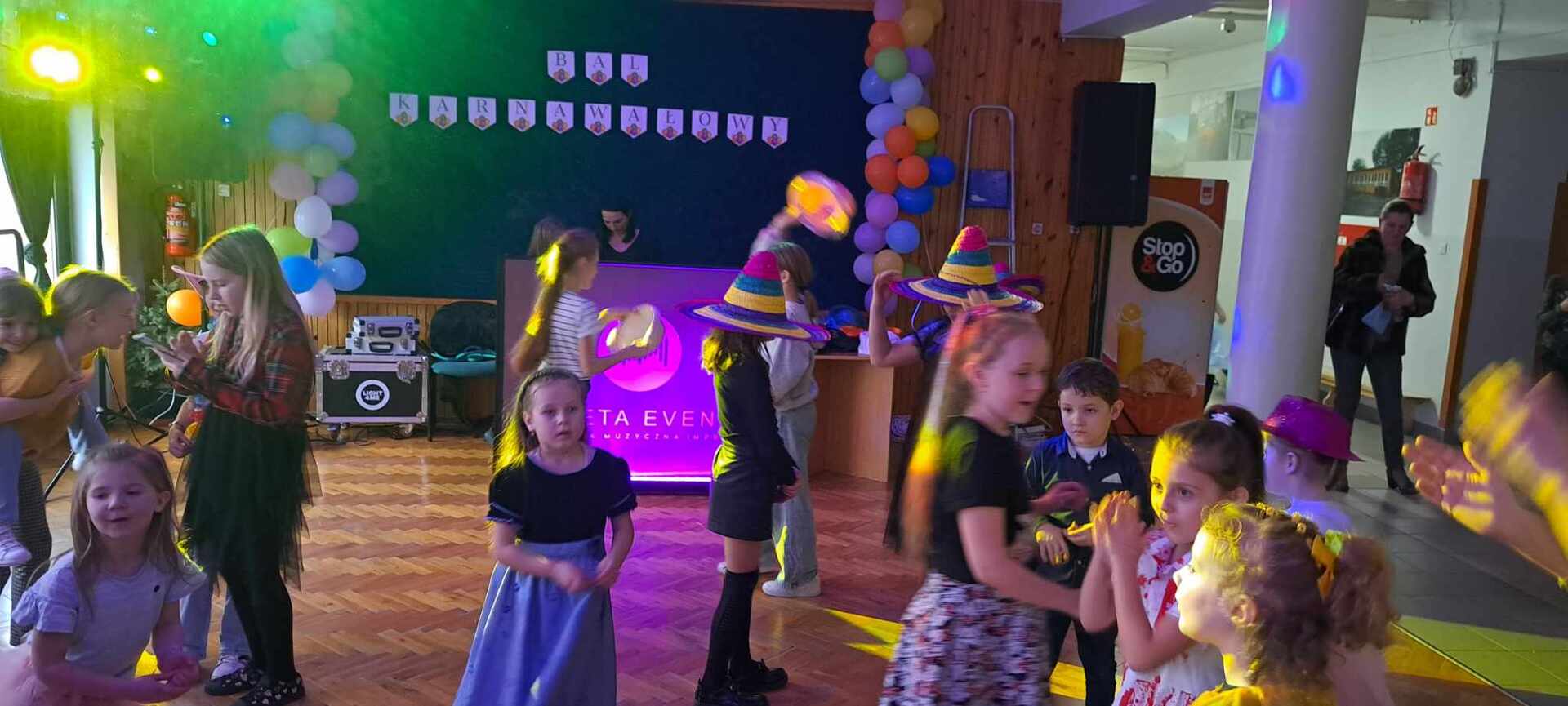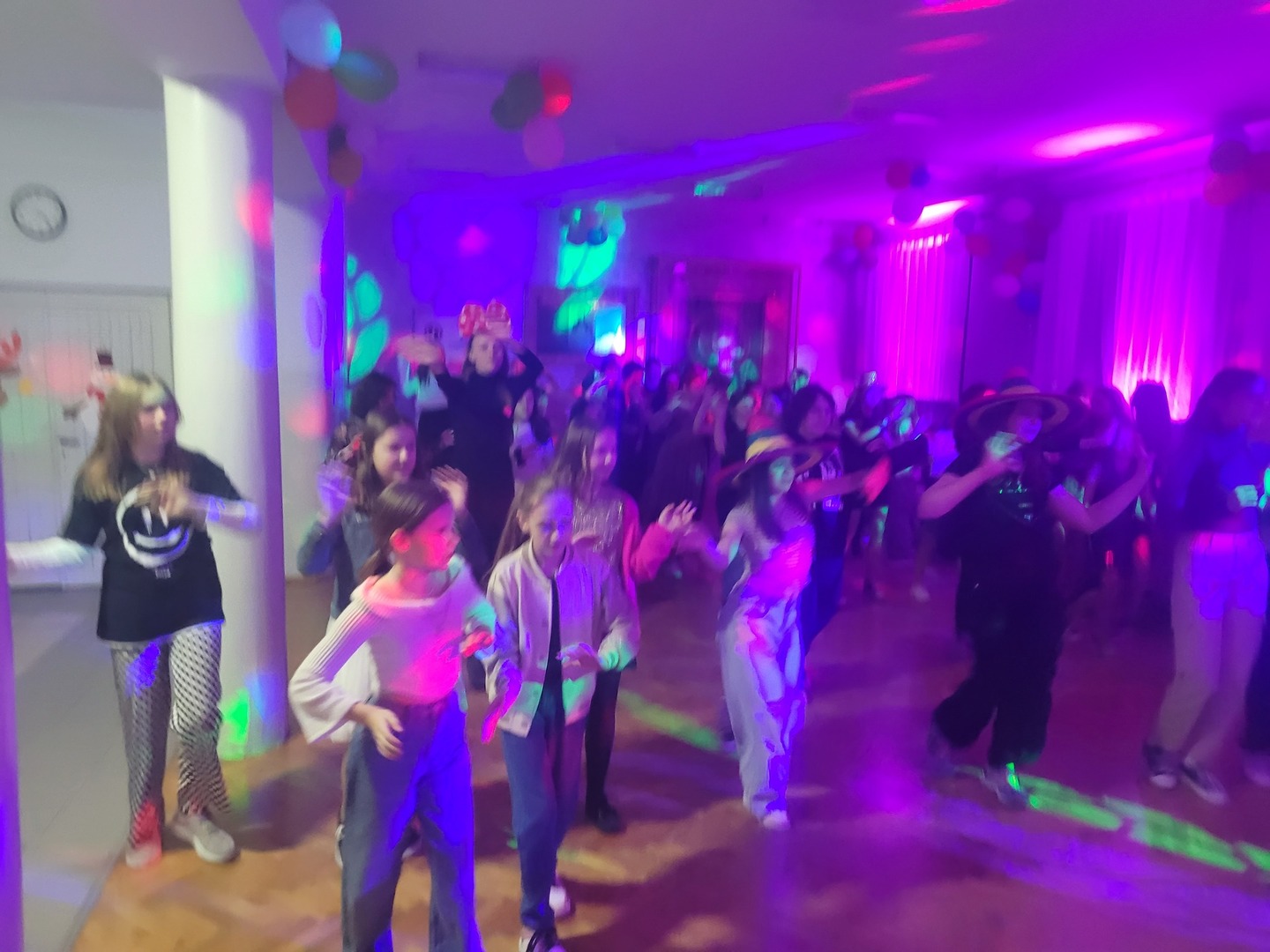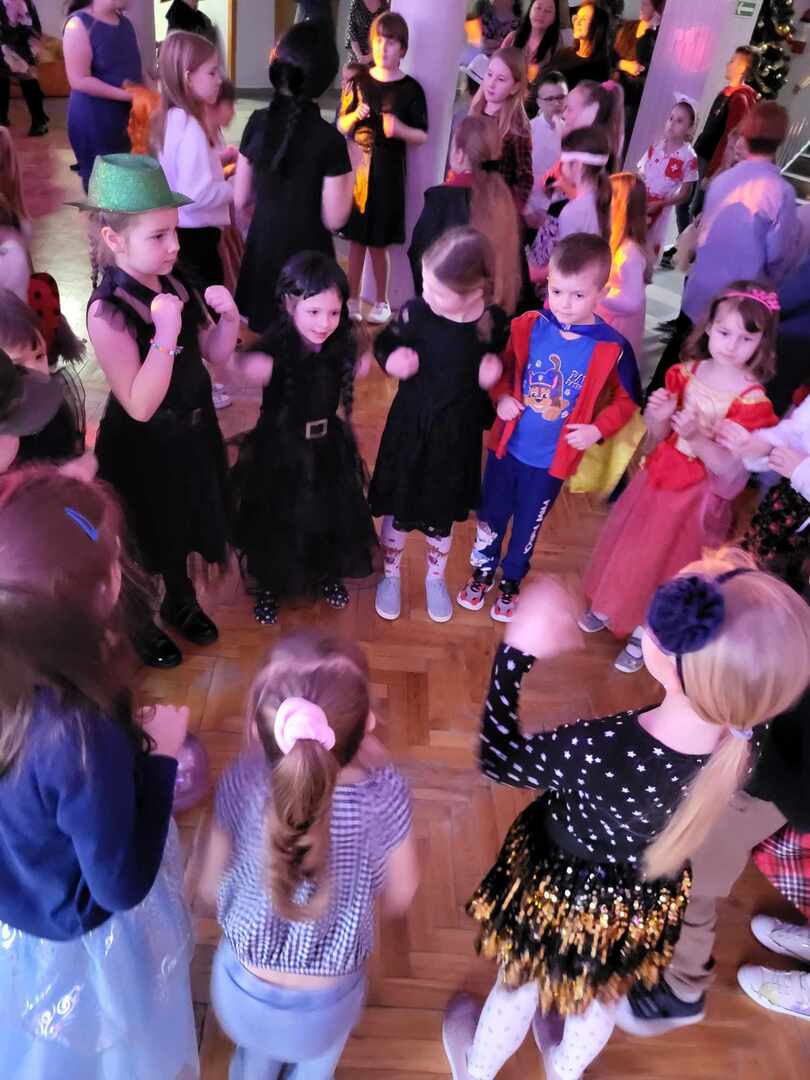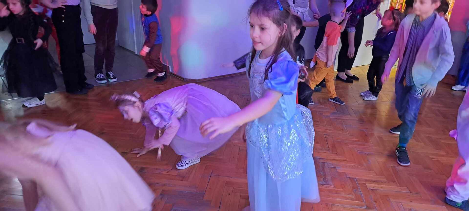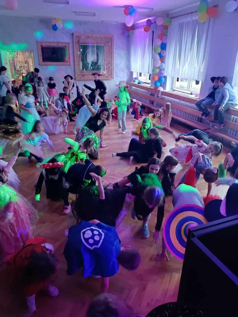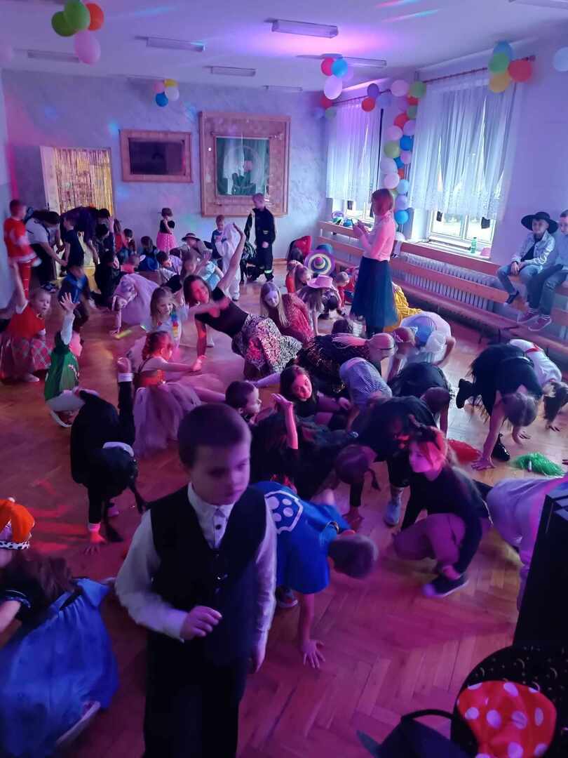 Bal karnawałowy został podzielony na dwie tury: od 9 do 12.10 bawiły się dzieci z grup przedszkolnych i punktu przedszkolnego oraz klasy I-III, natomiast później, od 15 do 19, starsi uczniowie, klasy IV-VIII. Najmłodsi przybyli do szkoły w pięknych i pomysłowych strojach. Wcielili się w bajkowe postaci, księżniczki, policjantów, strażaków, bohaterów filmów i seriali. Uczestnicy balu bawili się przy rytmach różnorodnej muzyki serwowanej przez Didżejkę panią Arletę z Artleta Events. Były również zabawy: pociągi, kaczuchy, belgijka, "Makarena" i wiele innych. Nie obyło się bez efektów specjalnych: dymu i kolorowych światełek… Każdy z uczestników zabawy mógł poeksperymentować z nakryciem głowy i wcielić się w wybraną przez siebie postać. Oprawę muzyczną ufundował Zarząd Rady Rodziców.