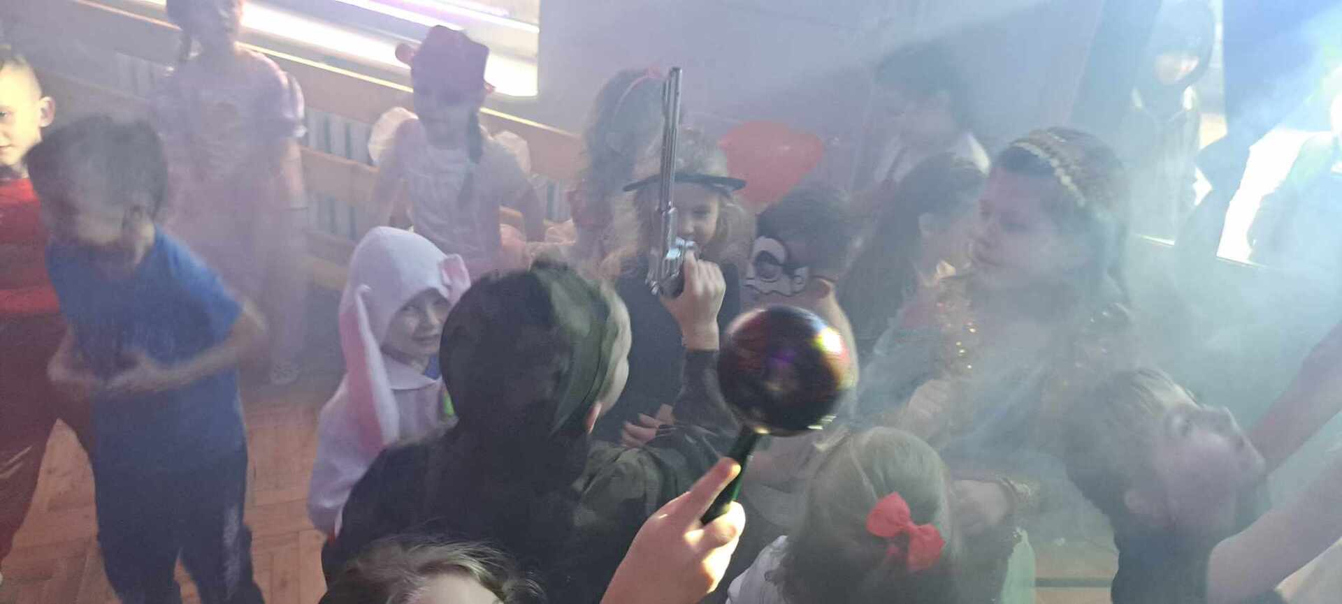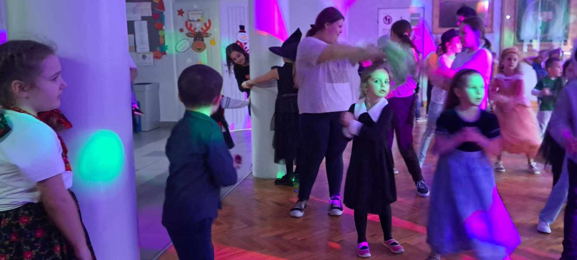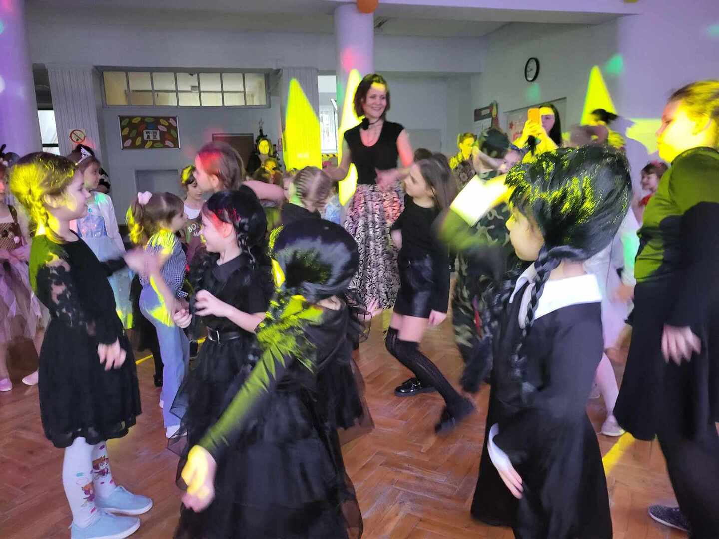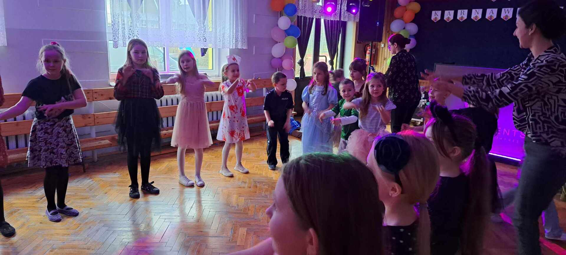 Bal karnawałowy został podzielony na dwie tury: od 9 do 12.10 bawiły się dzieci z grup przedszkolnych i punktu przedszkolnego oraz klasy I-III, natomiast później, od 15 do 19, starsi uczniowie, klasy IV-VIII. Najmłodsi przybyli do szkoły w pięknych i pomysłowych strojach. Wcielili się w bajkowe postaci, księżniczki, policjantów, strażaków, bohaterów filmów i seriali. Uczestnicy balu bawili się przy rytmach różnorodnej muzyki serwowanej przez Didżejkę panią Arletę z Artleta Events. Były również zabawy: pociągi, kaczuchy, belgijka, "Makarena" i wiele innych. Nie obyło się bez efektów specjalnych: dymu i kolorowych światełek… Każdy z uczestników zabawy mógł poeksperymentować z nakryciem głowy i wcielić się w wybraną przez siebie postać. Oprawę muzyczną ufundował Zarząd Rady Rodziców.