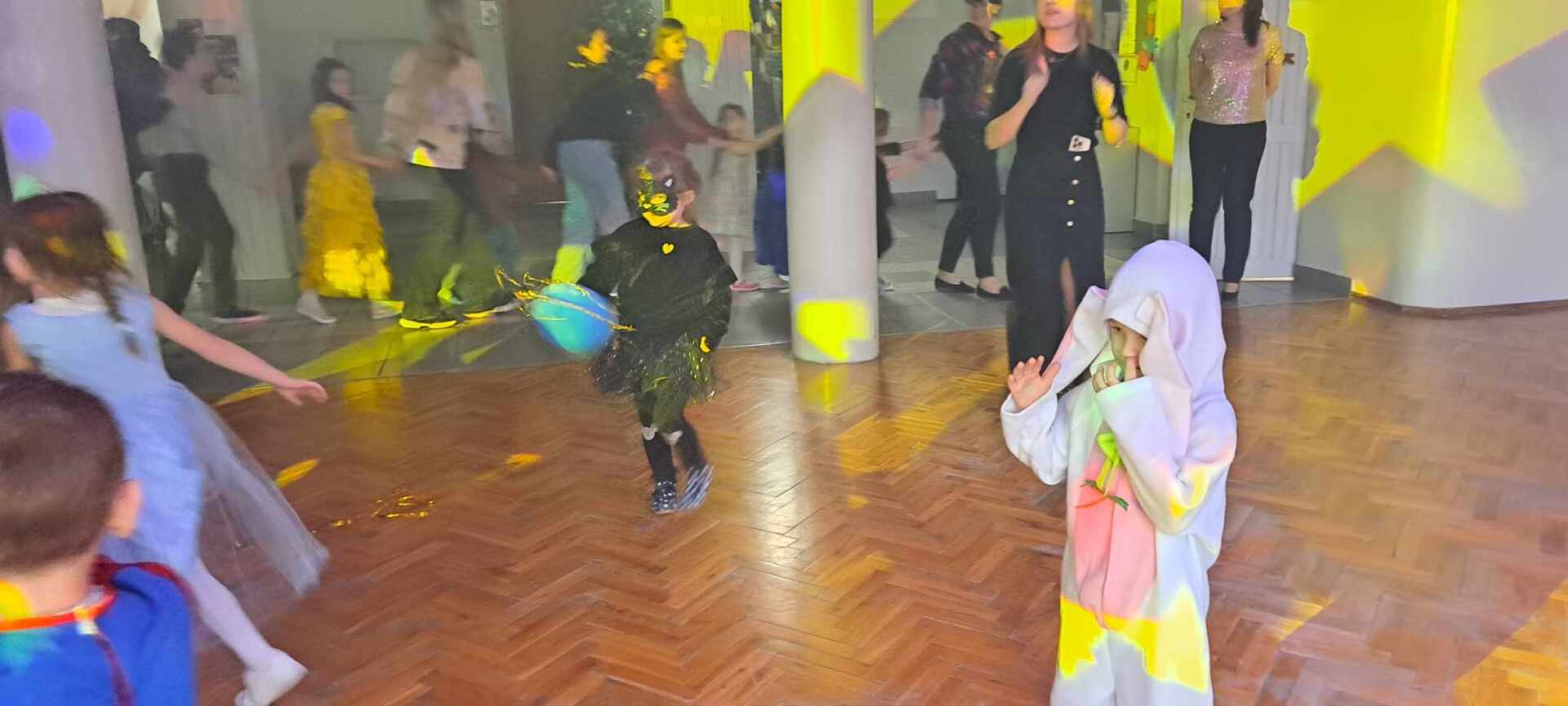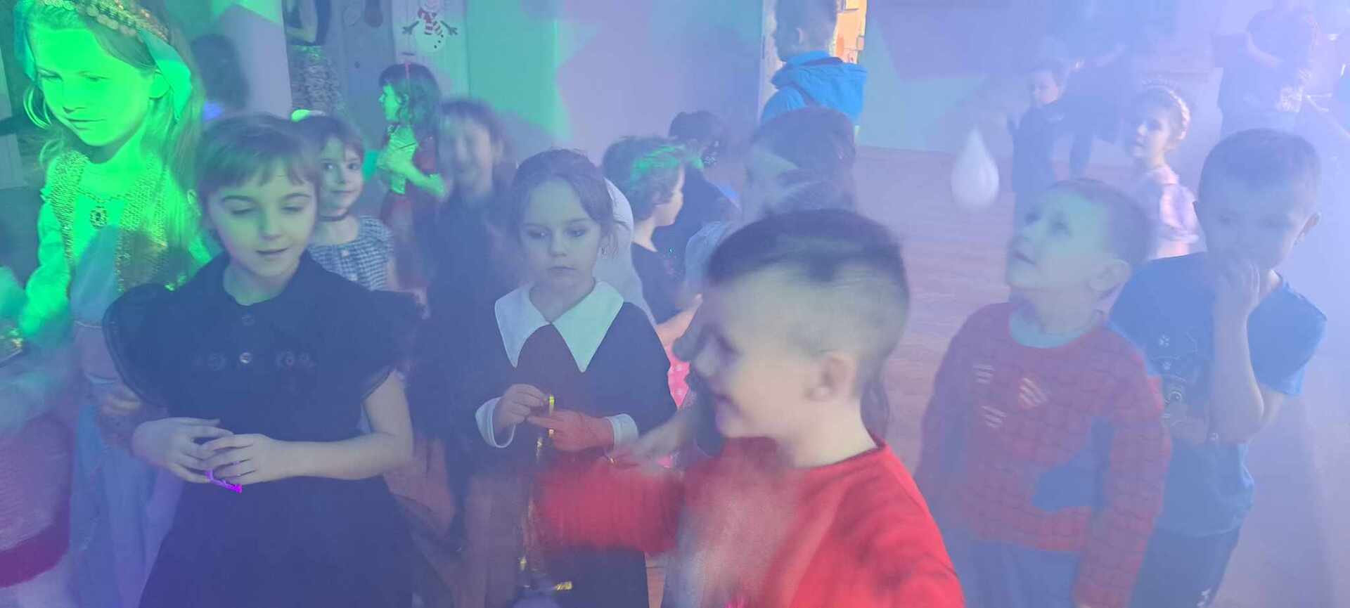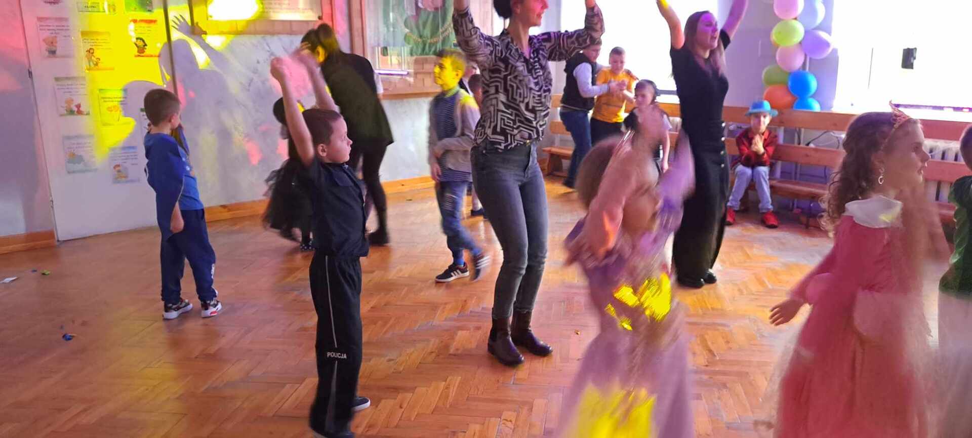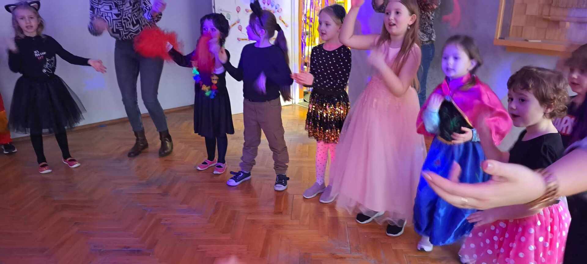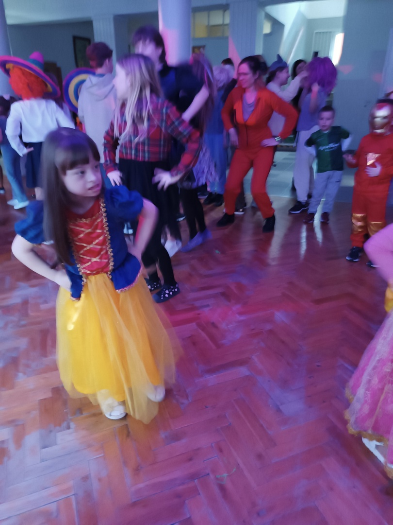 Bal karnawałowy został podzielony na dwie tury: od 9 do 12.10 bawiły się dzieci z grup przedszkolnych i punktu przedszkolnego oraz klasy I-III, natomiast później, od 15 do 19, starsi uczniowie, klasy IV-VIII. Najmłodsi przybyli do szkoły w pięknych i pomysłowych strojach. Wcielili się w bajkowe postaci, księżniczki, policjantów, strażaków, bohaterów filmów i seriali. Uczestnicy balu bawili się przy rytmach różnorodnej muzyki serwowanej przez Didżejkę panią Arletę z Artleta Events. Były również zabawy: pociągi, kaczuchy, belgijka, "Makarena" i wiele innych. Nie obyło się bez efektów specjalnych: dymu i kolorowych światełek… Każdy z uczestników zabawy mógł poeksperymentować z nakryciem głowy i wcielić się w wybraną przez siebie postać. Oprawę muzyczną ufundował Zarząd Rady Rodziców.