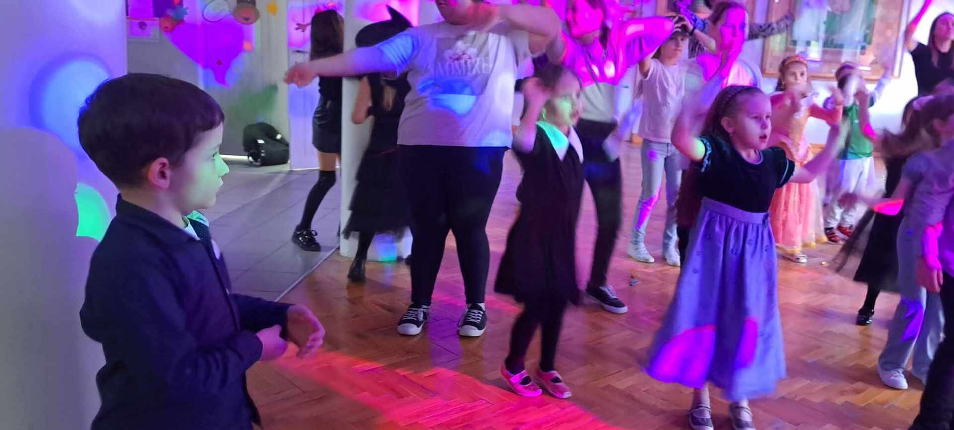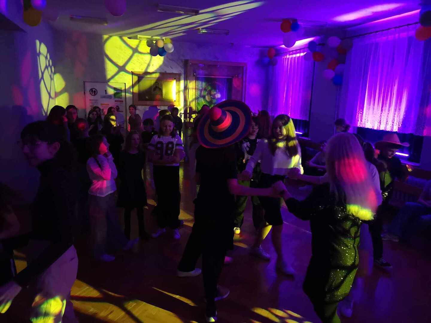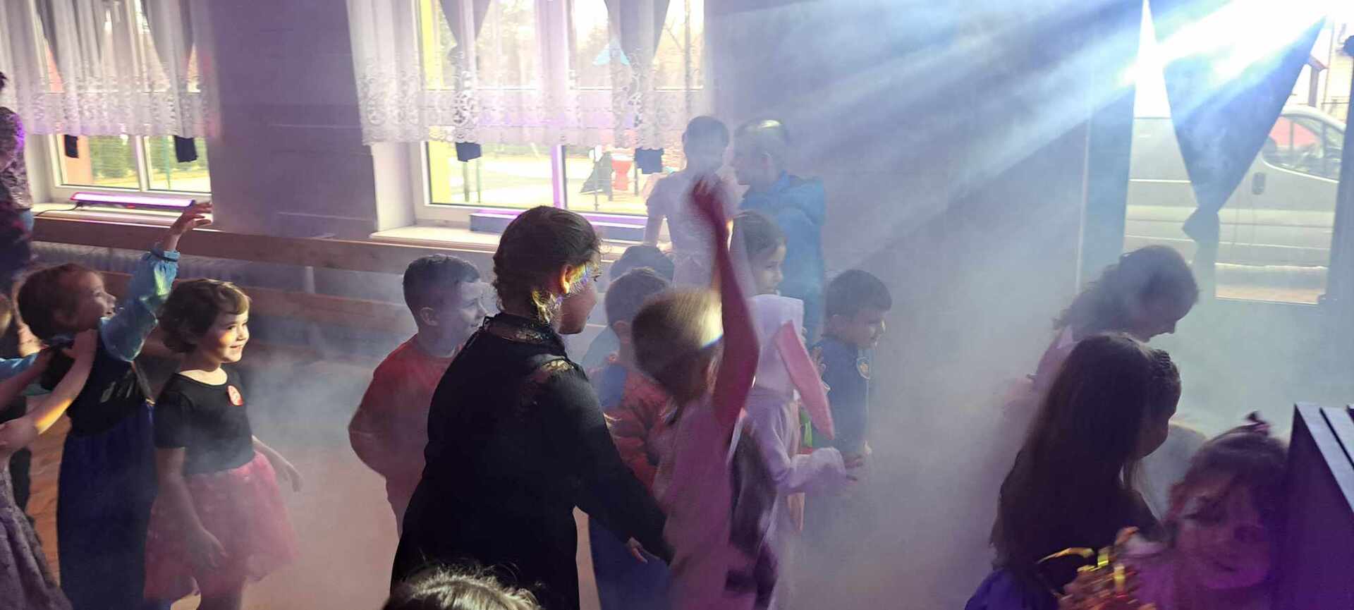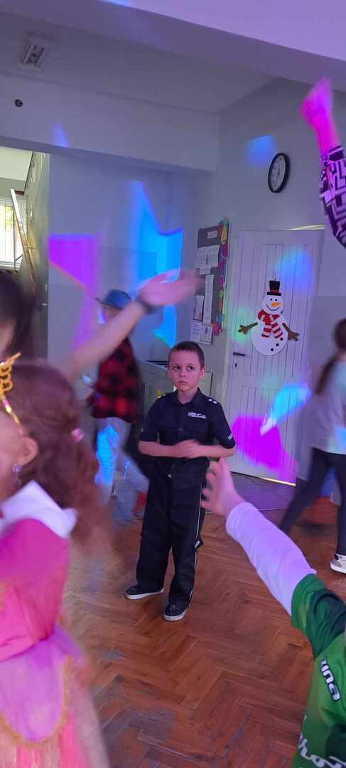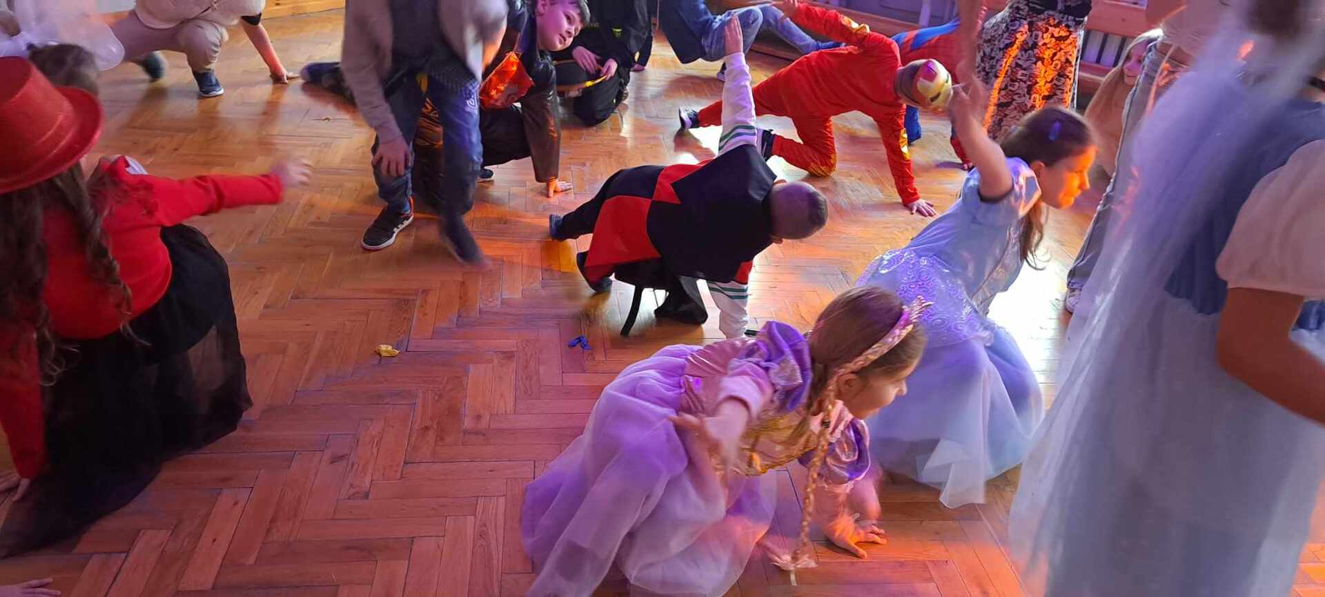 Bal karnawałowy został podzielony na dwie tury: od 9 do 12.10 bawiły się dzieci z grup przedszkolnych i punktu przedszkolnego oraz klasy I-III, natomiast później, od 15 do 19, starsi uczniowie, klasy IV-VIII. Najmłodsi przybyli do szkoły w pięknych i pomysłowych strojach. Wcielili się w bajkowe postaci, księżniczki, policjantów, strażaków, bohaterów filmów i seriali. Uczestnicy balu bawili się przy rytmach różnorodnej muzyki serwowanej przez Didżejkę panią Arletę z Artleta Events. Były również zabawy: pociągi, kaczuchy, belgijka, "Makarena" i wiele innych. Nie obyło się bez efektów specjalnych: dymu i kolorowych światełek… Każdy z uczestników zabawy mógł poeksperymentować z nakryciem głowy i wcielić się w wybraną przez siebie postać. Oprawę muzyczną ufundował Zarząd Rady Rodziców.