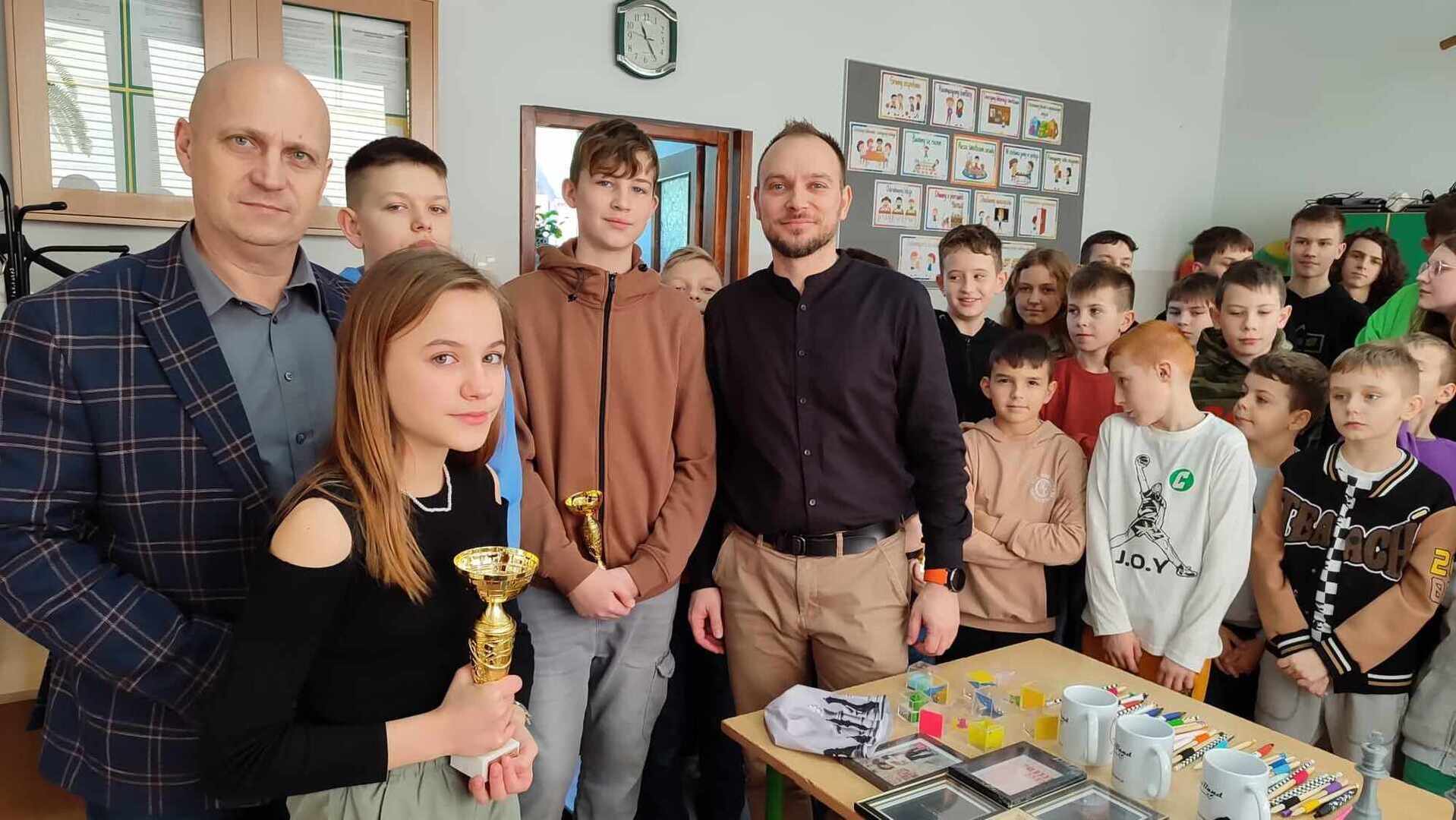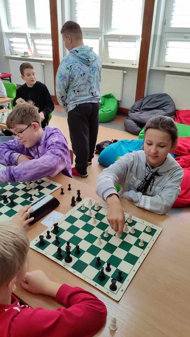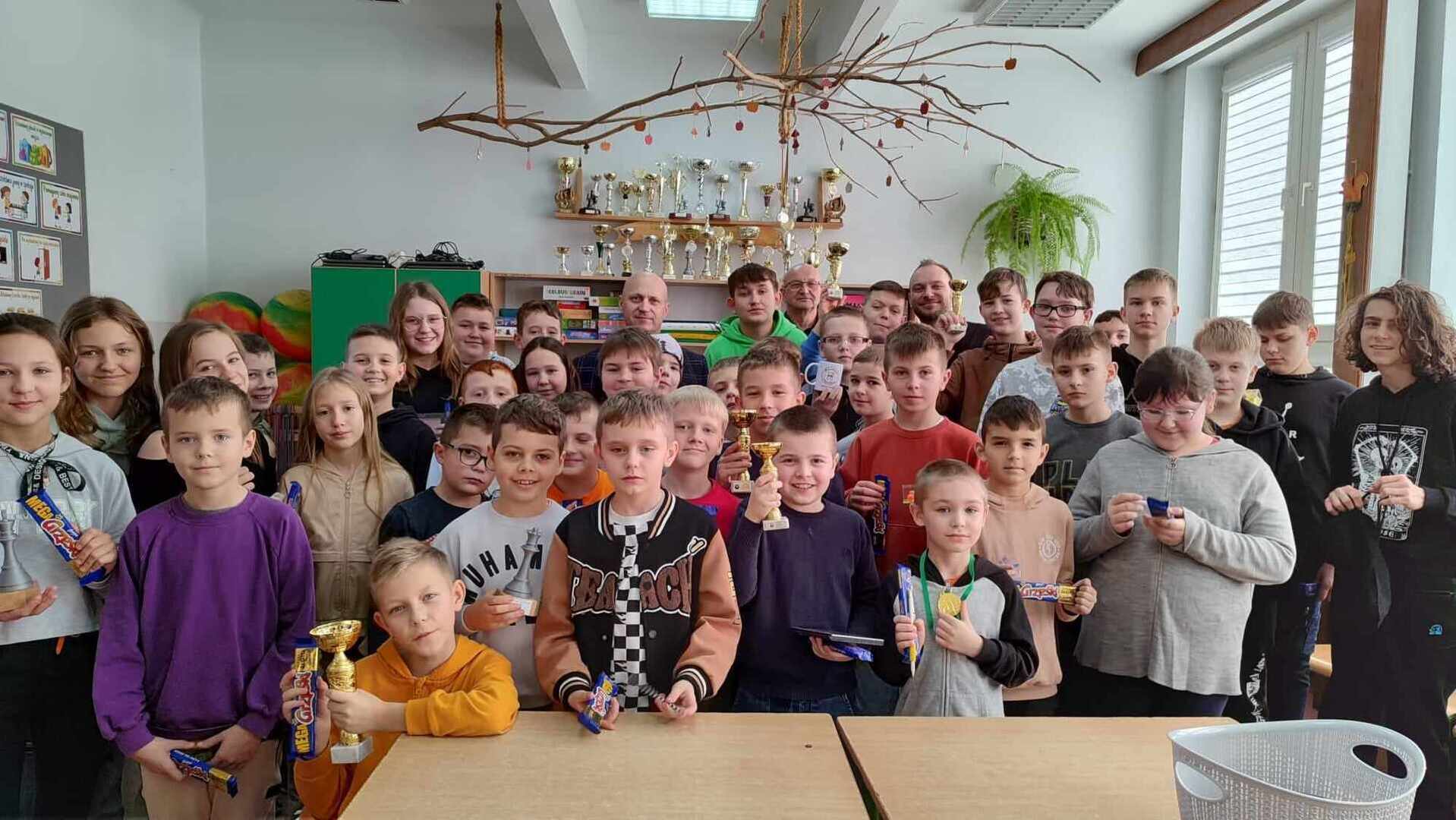 W dniu 16.02.2024 r. uczniowie naszej szkoły uczestniczyli w szkolnym turnieju szachowym. Organizatorami turnieju byli KS Hetman Żelechlinek oraz SP Żelechlinek. Wystartowało 40 zawodników i wszyscy, pomimo różnych trudności i kryzysów, wytrwali do końca. Turniej przeprowadzono na dystansie 7 rund systemem szwajcarskim w tempie 10 minut na zawodnika. Klasyfikacja obejmowała dwie grupy wiekowe kl. I-IV oraz kl. V-VIII. Zwycięzcy w poszczególnych grupach to: kl. I-IV 1. JAKUB KWIATKOWSKI 2. ADAM SZYDŁOWSKI 3. SZYMON WALICKI Kl. V-VIII 1. JAGODA KWIATKOWSKA 2. MICHAŁ MATYSIAK 3. WOJCIECH MICHNIEWSKI. Tabela końcowa wszystkich wyników jest załączona w zdjęciach. Turniej wymagał od uczestników dużego wysiłku, cierpliwości i wytrwałości. Doceniając to, dostrzegliśmy najdzielniejszych graczy i oni otrzymali pamiątkowe statuetki. Są to SZYMON SZEWCZYK oraz AMELIA SZEWCZYK. Nad wszystkimi zawodnikami czuwała niezmiennie najczcigodniejsza "CAISSA" muza i bogini szachów. Swoją troską i natchnieniem obdarzyła wszystkich równo. Przytulała jednak najmocniej tych, którym było najciężej. W myśl tego założenia wszyscy okazali się zwycięzcami, bo wszyscy wykonali wiele wspaniałych posunięć i motywów szachowych. Niekoniecznie musimy zawsze wygrywać. Sama rywalizacja jest wartością "samą w sobie". Wszystkim zawodnikom serdecznie gratulujemy. Wszystkim zaangażowanym w organizację i przeprowadzenie turnieju bardzo dziękujemy. Największą wdzięczność i uznanie składamy panu PAWŁOWI KWIATKOWSKIEMU prezesowi KS Hetman Żelechlinek, który współorganizował turniej, zapewnił oprawę techniczną i przeprowadził rozgrywki. Dziękujemy KS Hetman Żelechlinek za ufundowanie pucharów i upominków. Dziękujemy miłośnikom szachów za "słodki akcent" umilający rywalizację. Zapraszamy na kolejny, wiosenny turniej, o którym szczegółowo będziemy informować. Z szachowym pozdrowieniem Józef Wenecki.