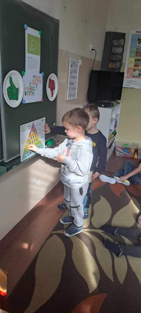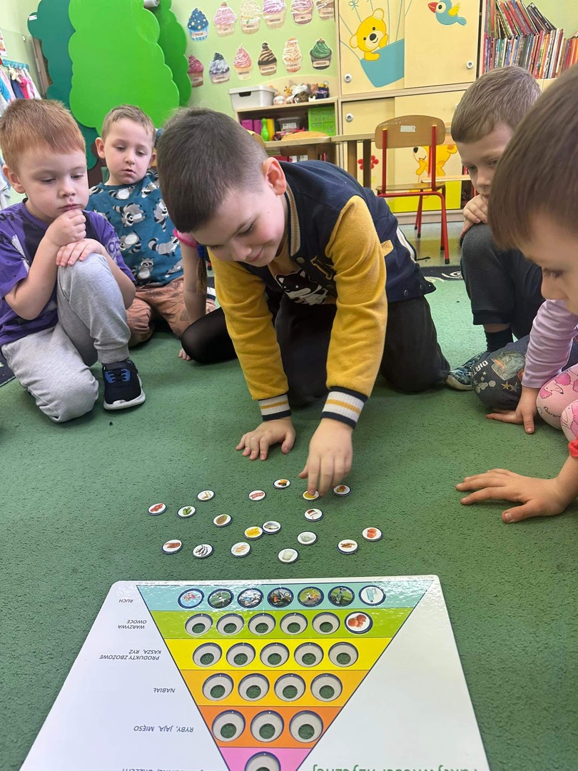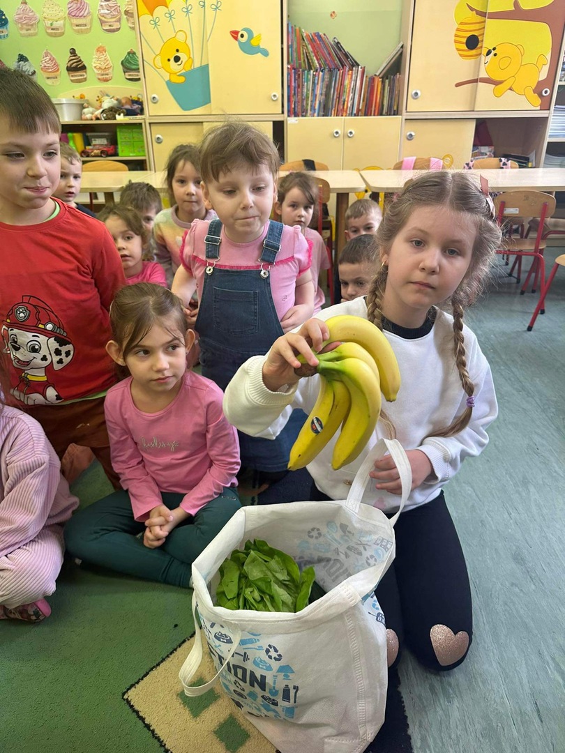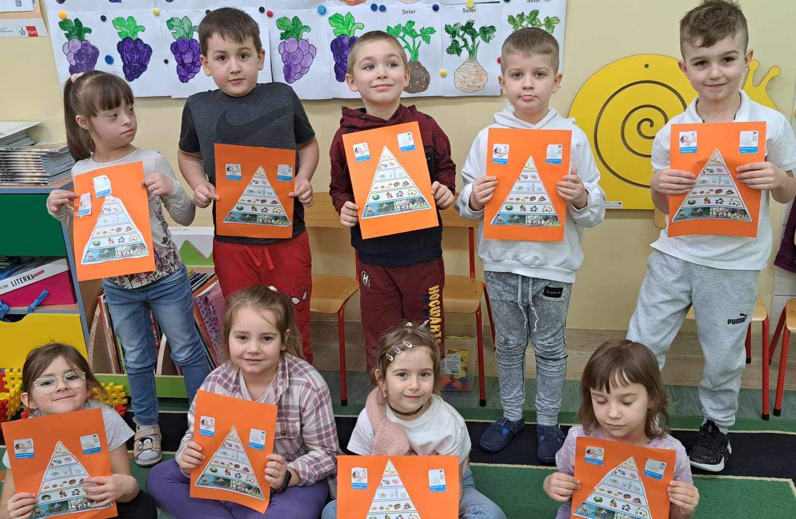Zajęcia realizowane były poprzez wykorzystanie dedykowanego dzieciom filmu animowanego „Skąd się biorą produkty ekologiczne?”. Podczas oglądania przedszkolaczki dowiedziały się, że EKO oznacza naturalne, czyli takie, które nie ma żadnych sztucznych, niezdrowych dodatków. Zapoznały się z Piramidą Zdrowego Żywienia i Stylu Życia, przypomniały sobie, co należy robić, aby prowadzić zdrowy styl życia, a następnie wykonały samodzielnie piramidę żywienia. Miały okazję poznać i posmakować produktów ekologicznych oraz poszerzyć swoją wiedzę na temat znaczka Eko.