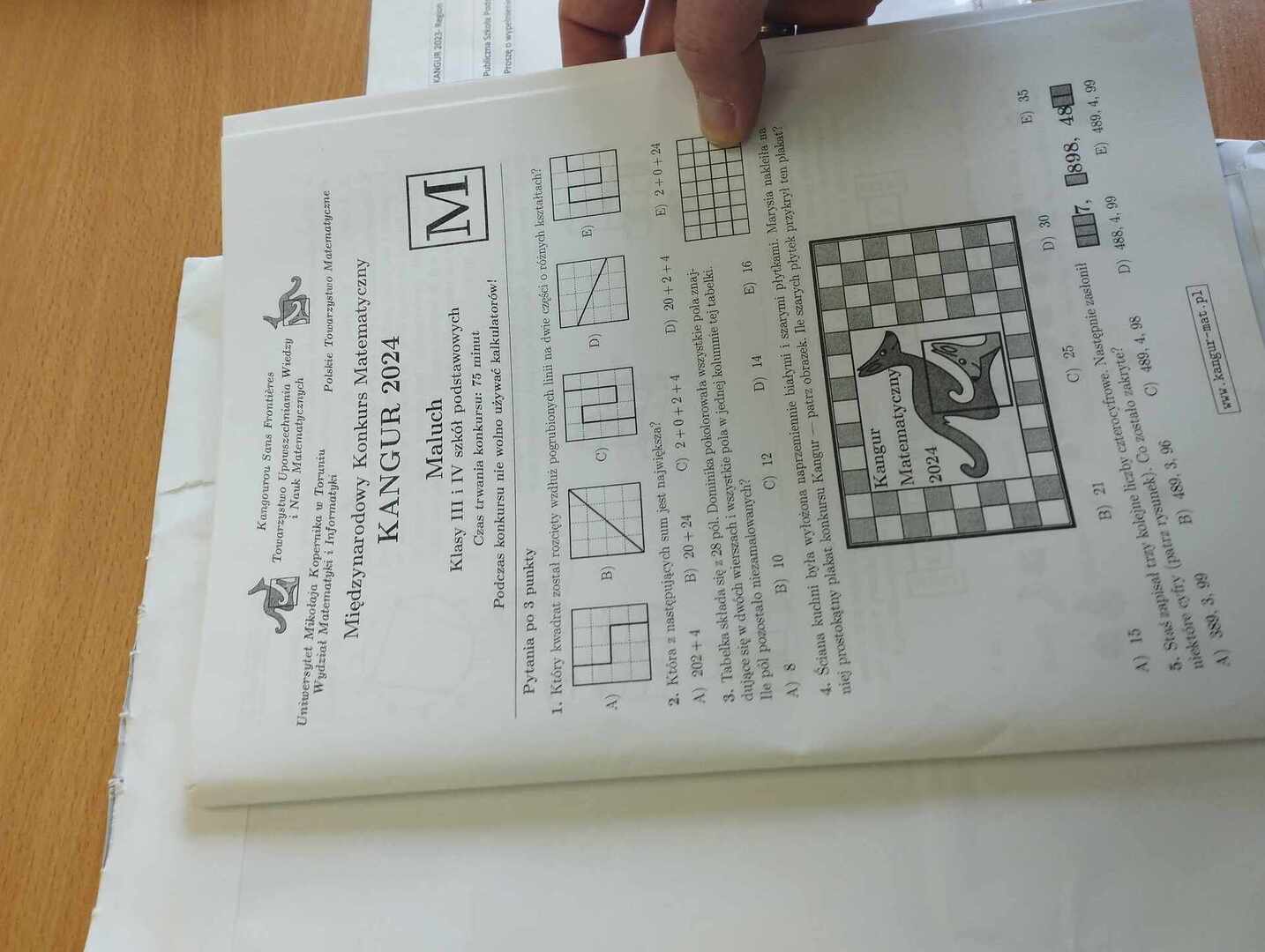 W dniu 21 marca 2024 uczniowie naszej szkoły przystąpili do Międzynarodowego Konkursu Matematycznego KANGUR 2024.