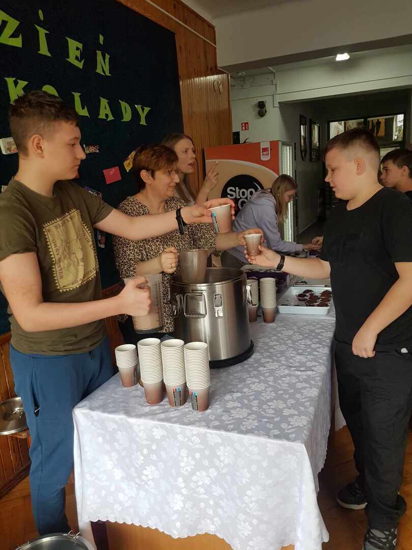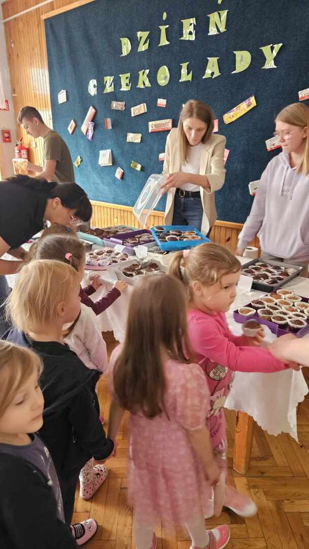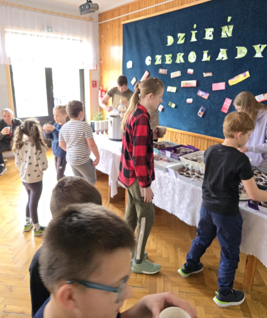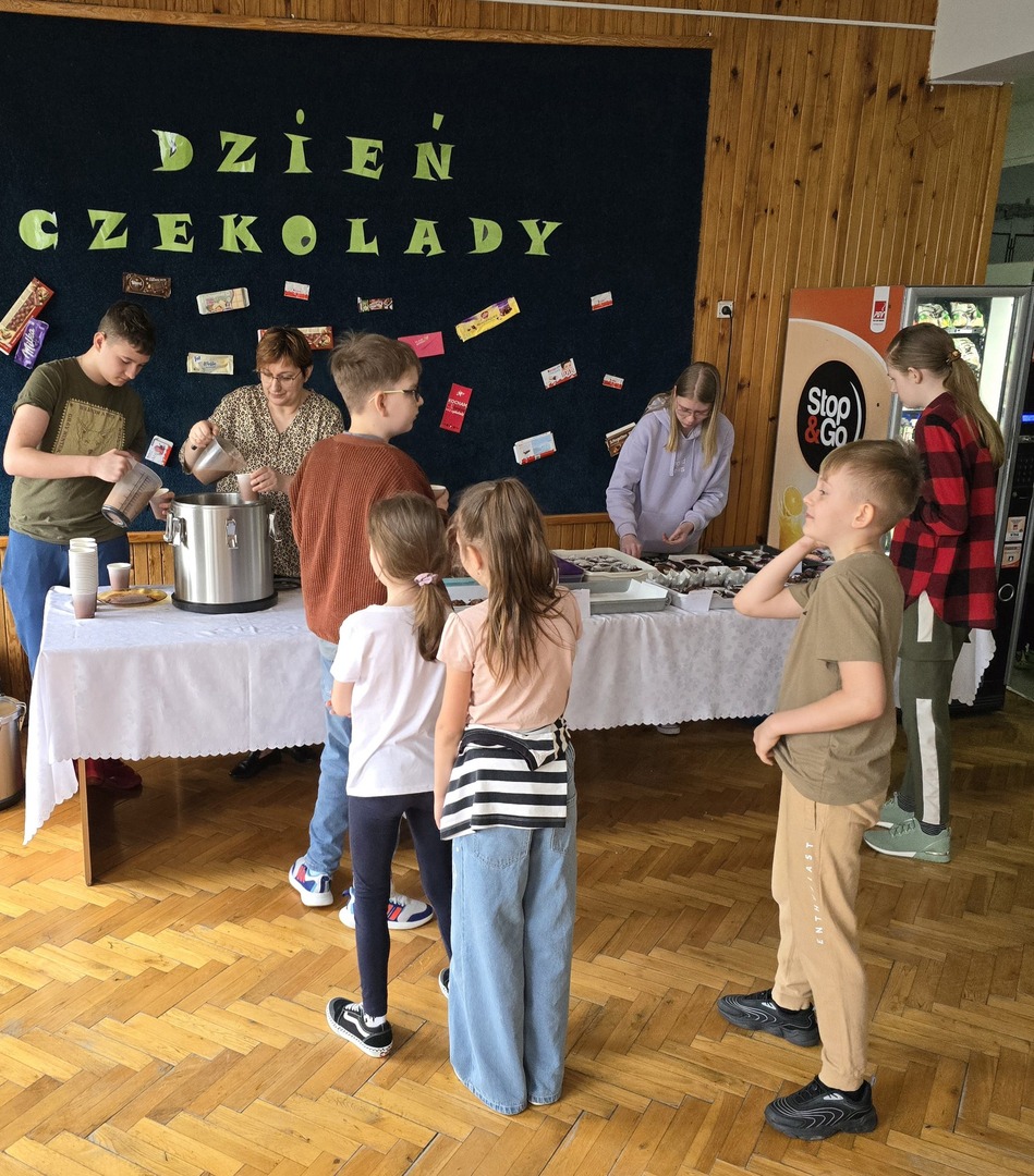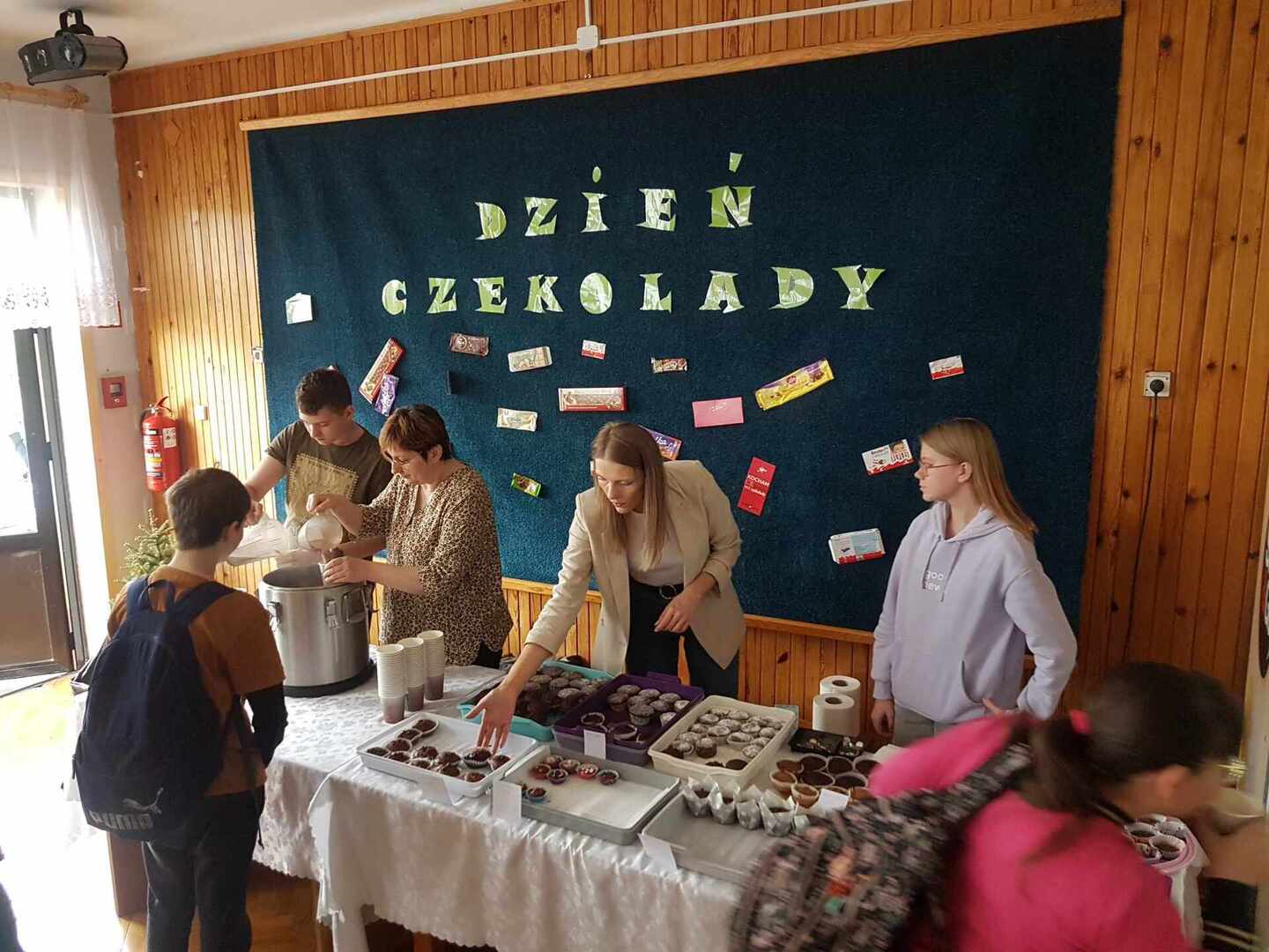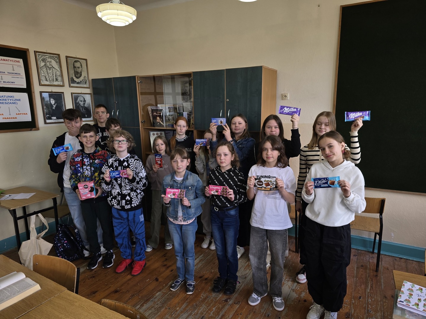 W salach lekcyjnych uczniowie prezentowali i częstowali kolegów i koleżanki swoim ulubionym smakiem tego słodkiego przysmaku. Oj, było w czym wybierać:) Każdy z uczniów i nauczycieli mógł wskazać tę czekoladę, która najbardziej mu smakowała.