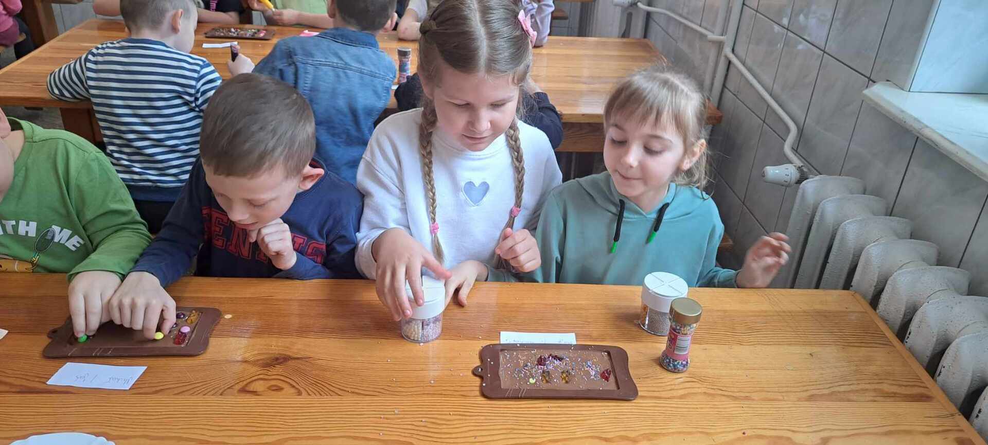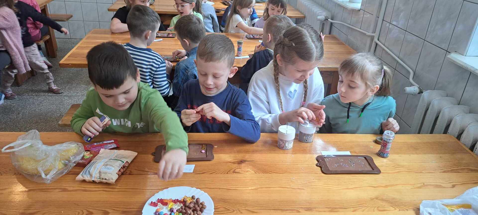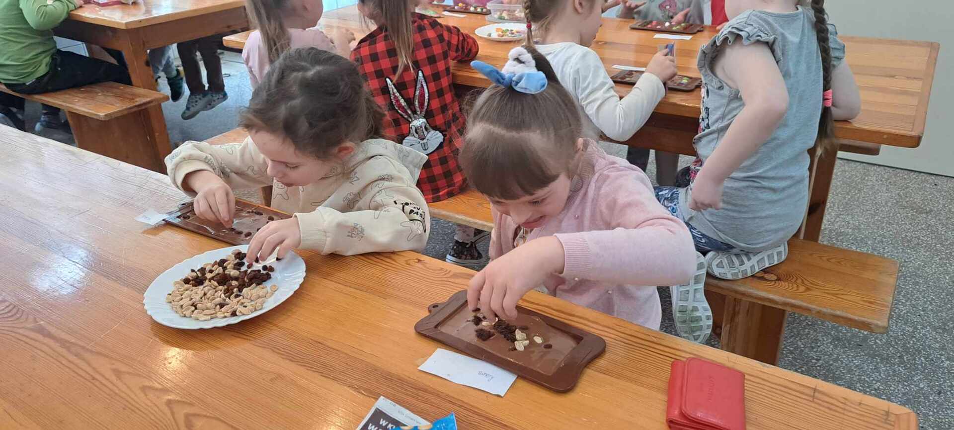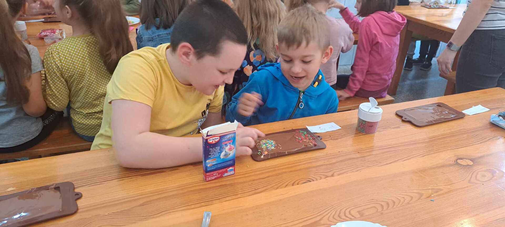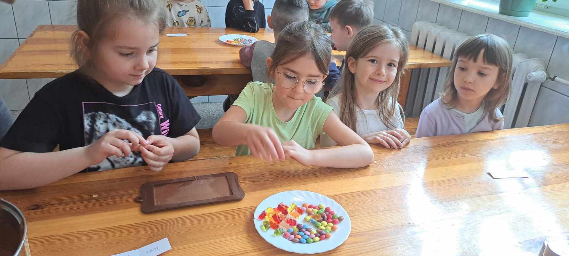 W salach lekcyjnych uczniowie prezentowali i częstowali kolegów i koleżanki swoim ulubionym smakiem tego słodkiego przysmaku. Oj, było w czym wybierać:) Każdy z uczniów i nauczycieli mógł wskazać tę czekoladę, która najbardziej mu smakowała.