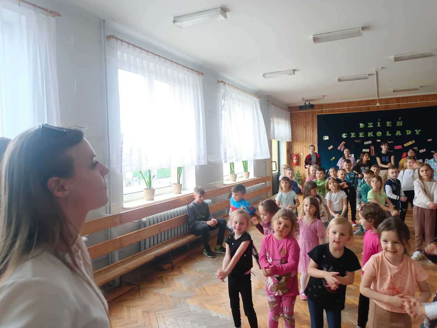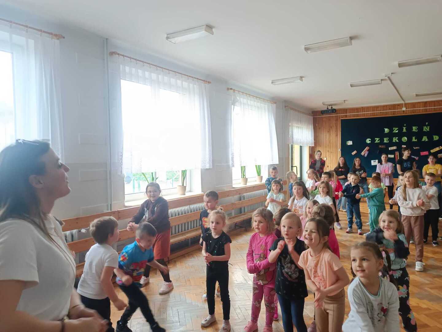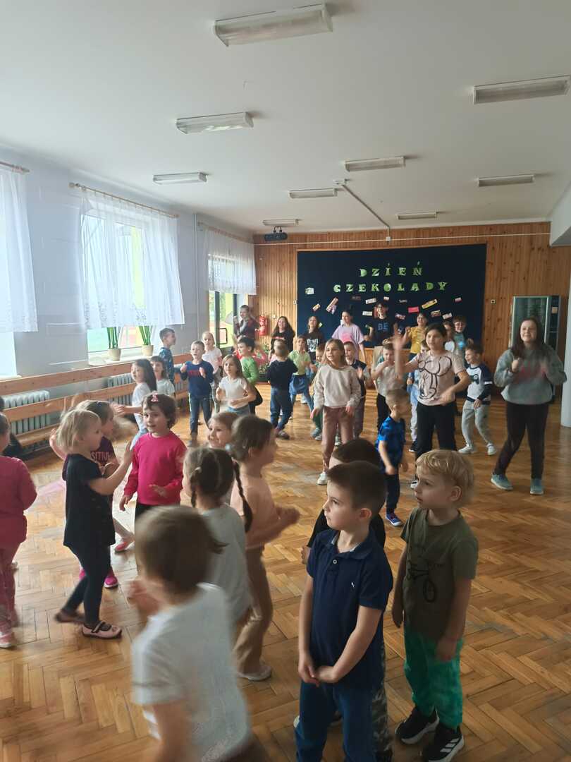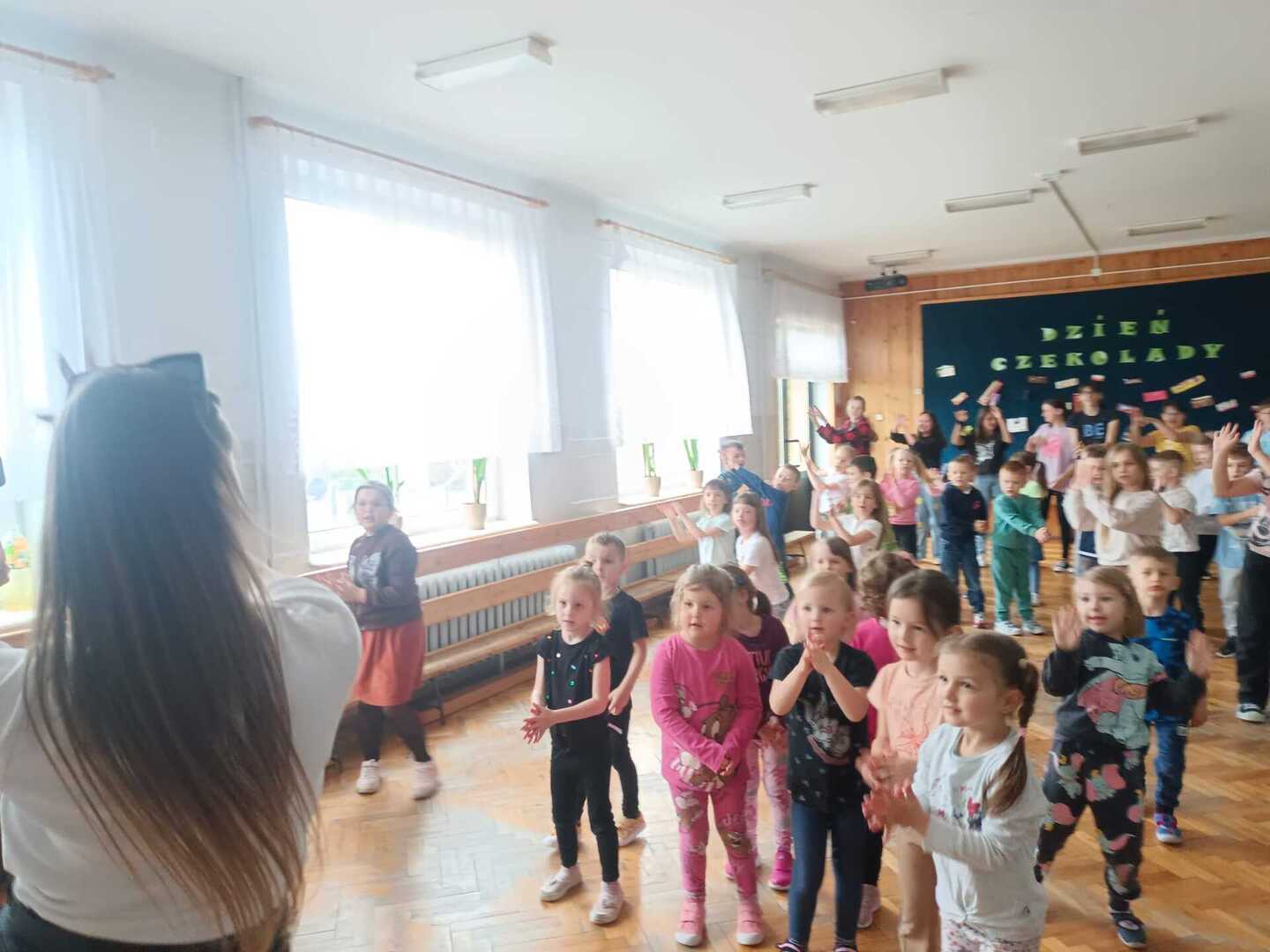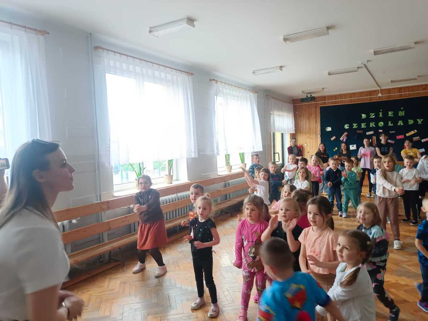 Podczas długiej przerwy dzieci, młodzież i nauczyciele bawili się wspólnie przy piosence Chocolate choco choco.