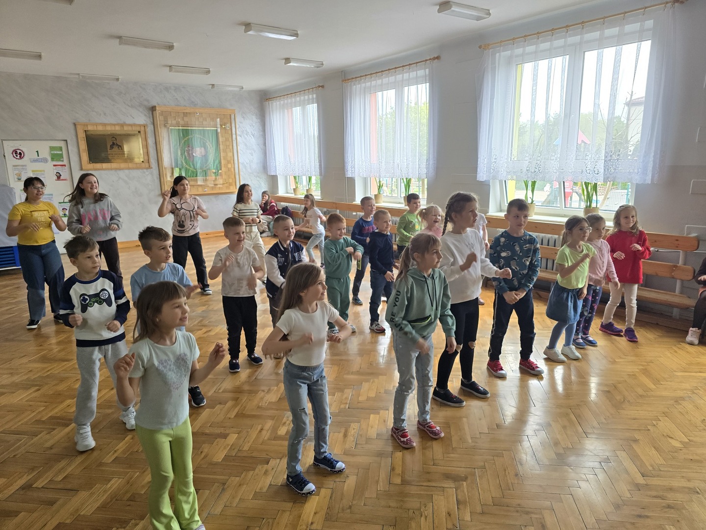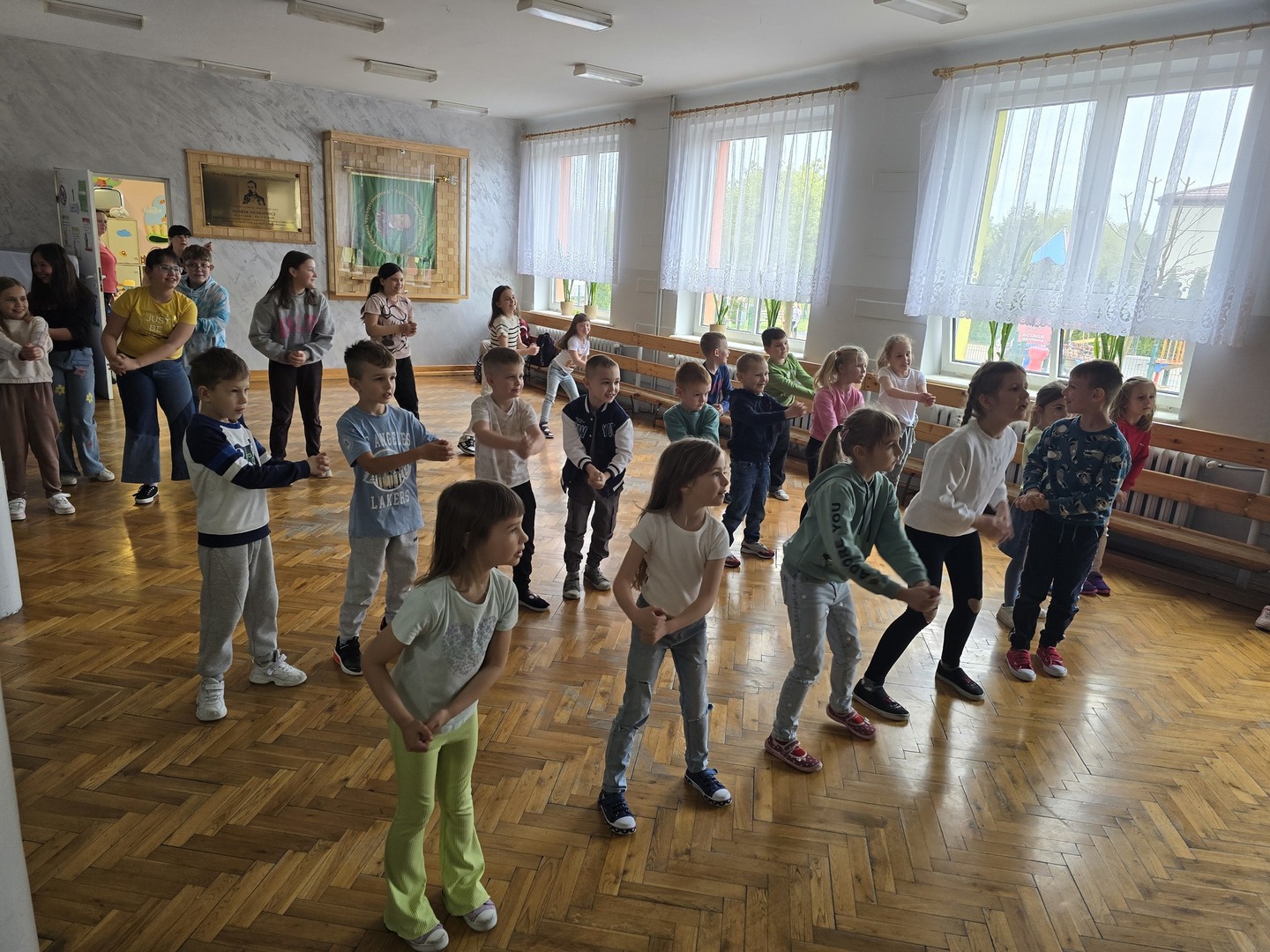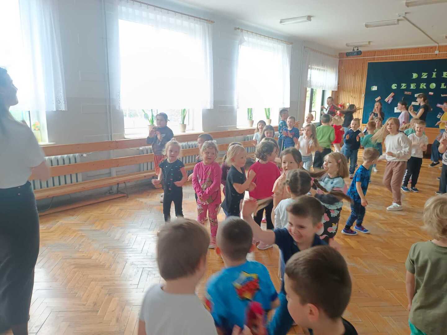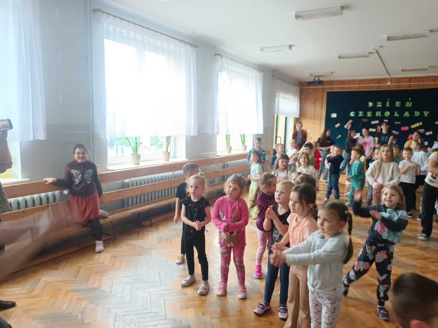 Podczas długiej przerwy dzieci, młodzież i nauczyciele bawili się wspólnie przy piosence Chocolate choco choco.