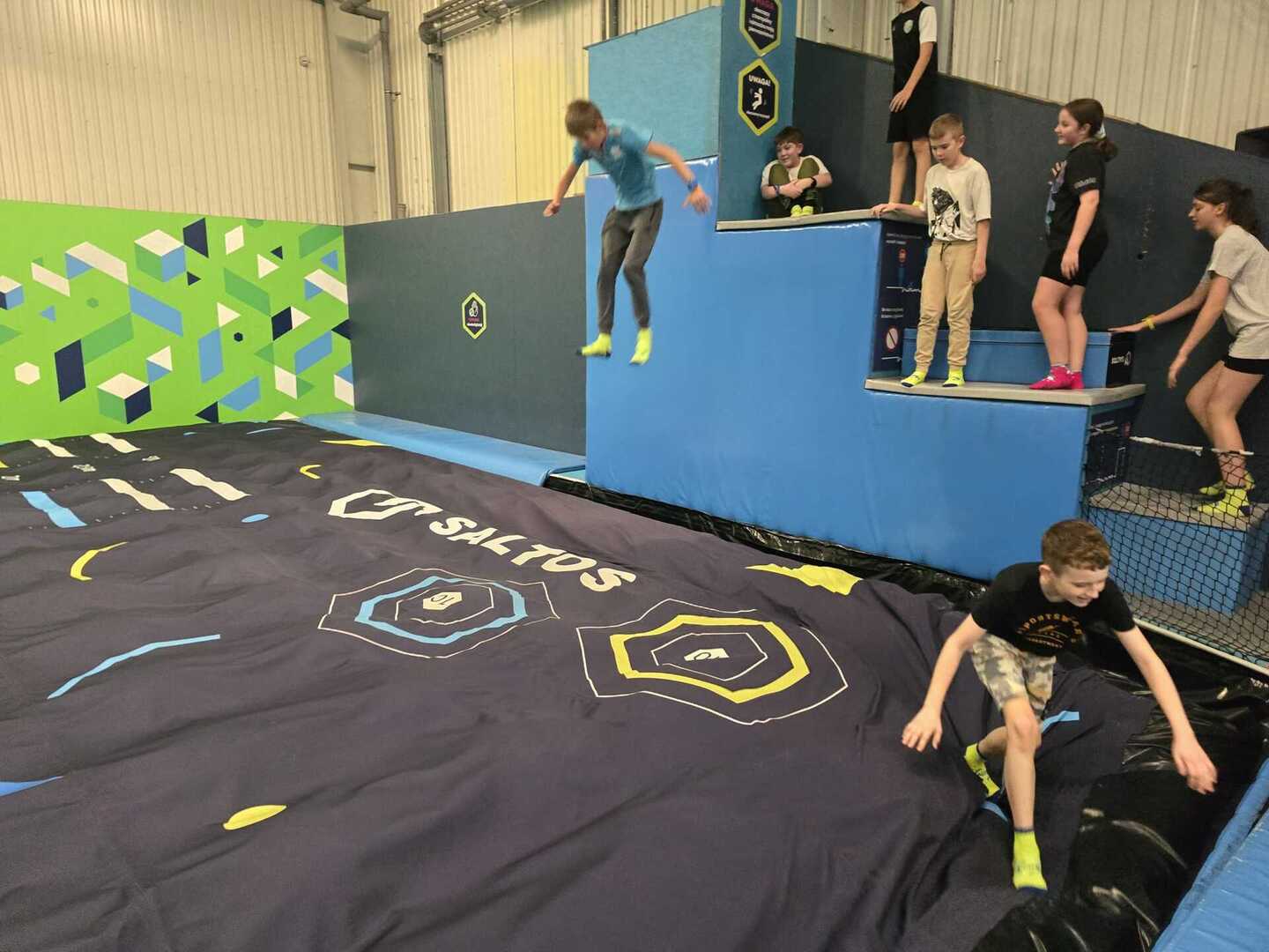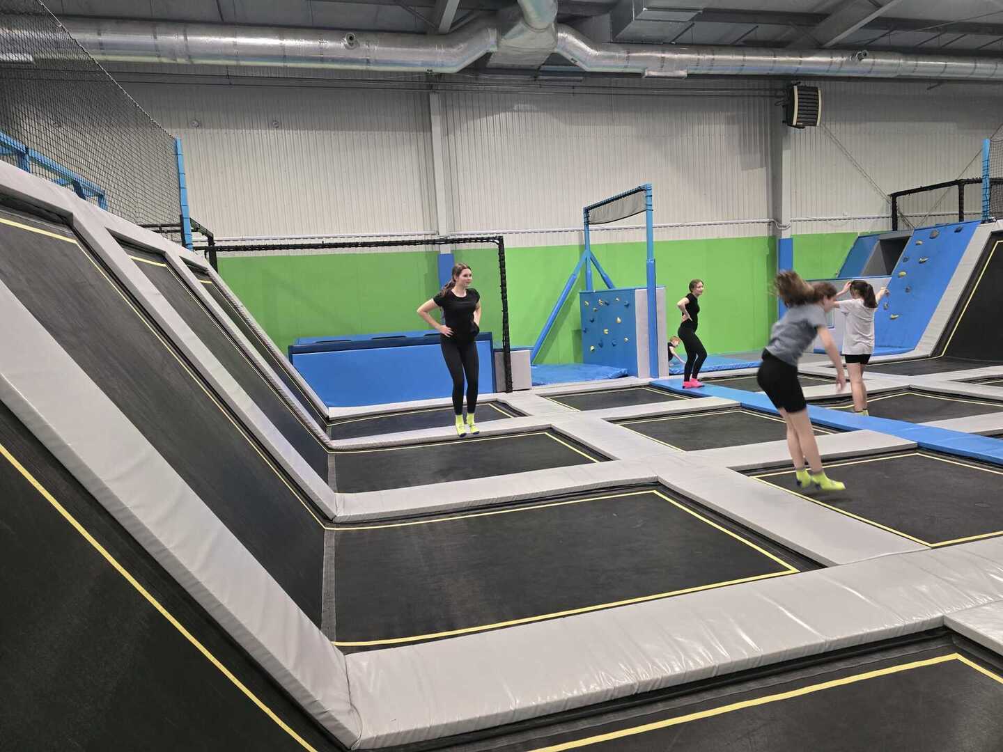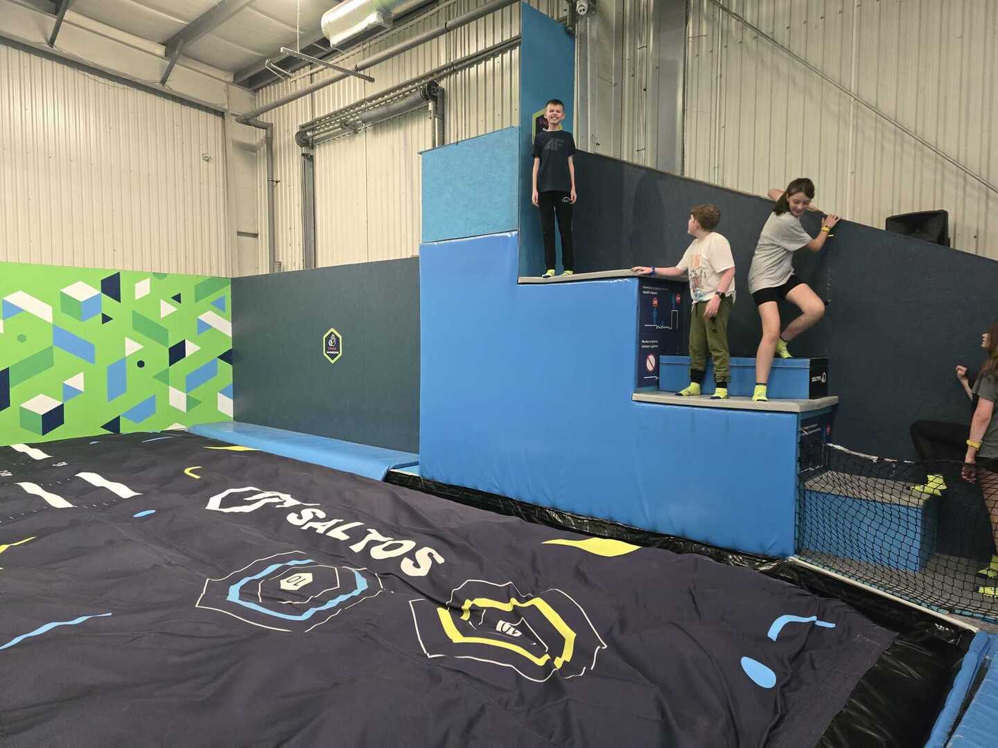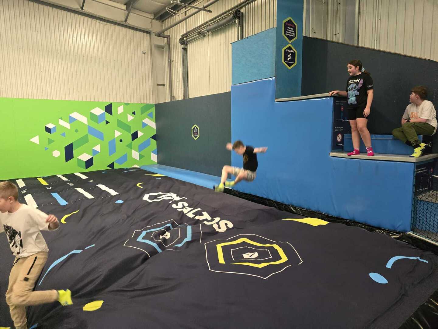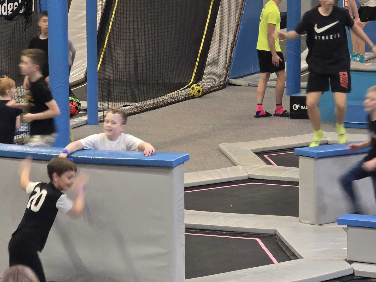 Kolejnym celem wycieczki był pobyt w parku trampolin z matami gimnastycznymi i basenem z gąbkami. Najpierw uczniowie przeszli szkolenie z zakresu bezpieczeństwa i techniki skoków. Następnie po profesjonalnej rozgrzewce pod okiem instruktorów korzystali z szeregu atrakcji. Wszyscy z radością skakali na różne sposoby. Dużym zainteresowaniem cieszyły się skoki do basenu z gąbkami.