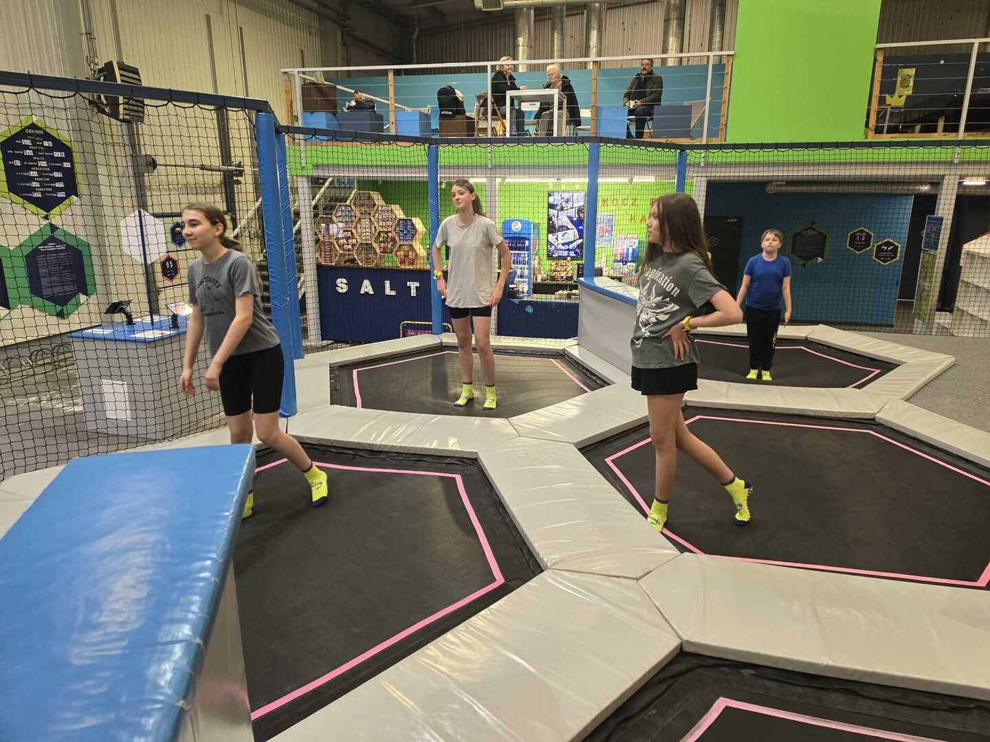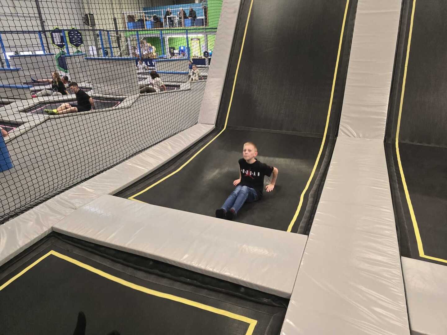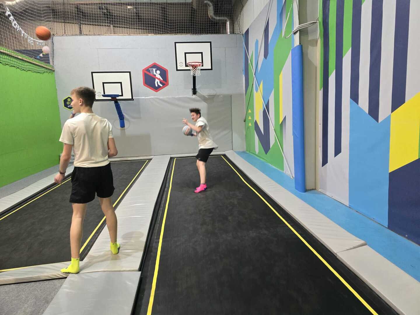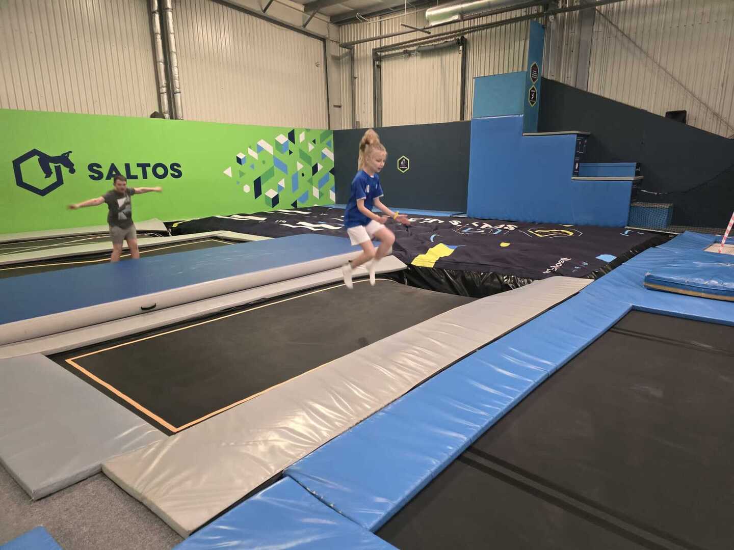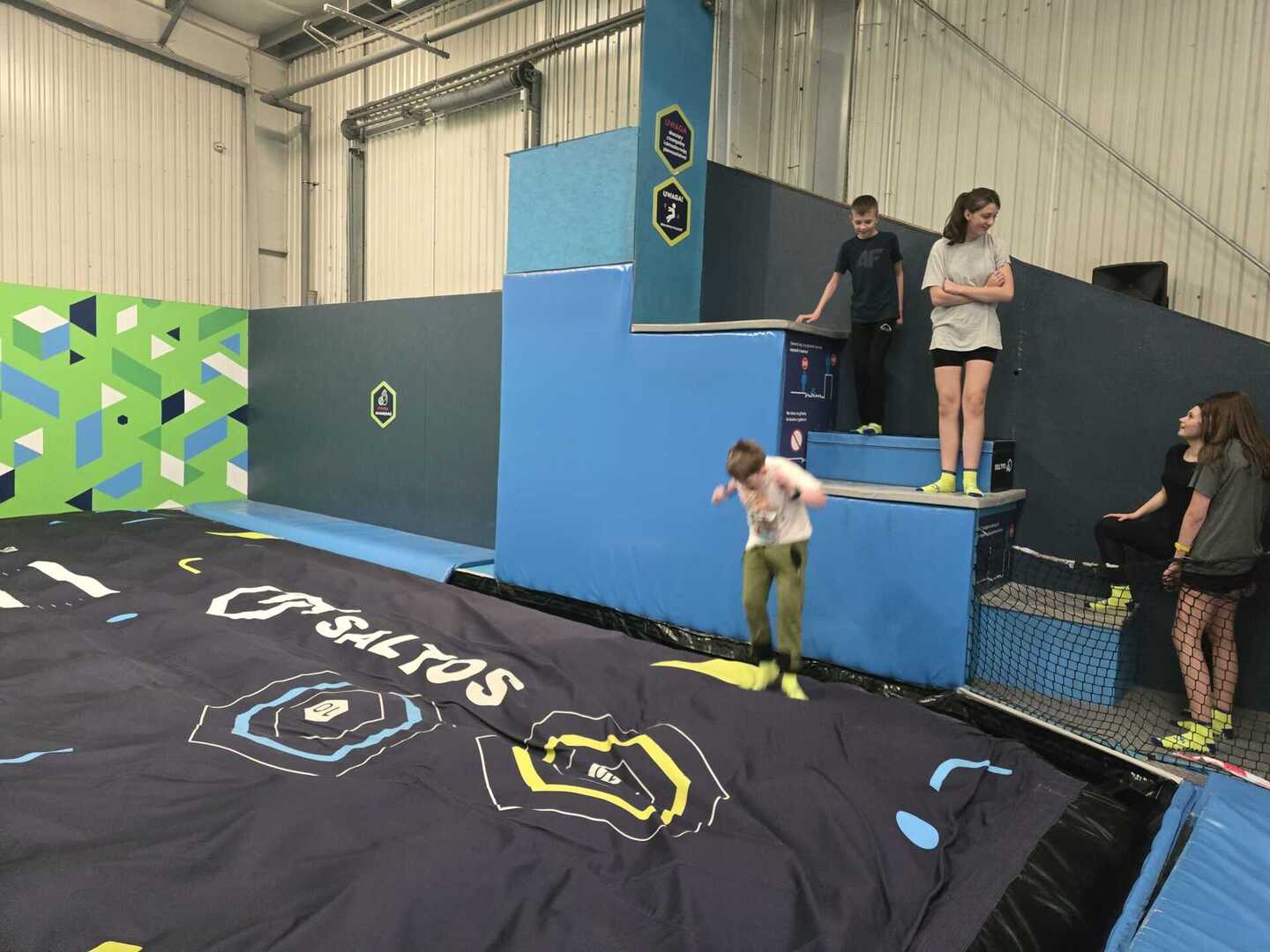 Kolejnym celem wycieczki był pobyt w parku trampolin z matami gimnastycznymi i basenem z gąbkami. Najpierw uczniowie przeszli szkolenie z zakresu bezpieczeństwa i techniki skoków. Następnie po profesjonalnej rozgrzewce pod okiem instruktorów korzystali z szeregu atrakcji. Wszyscy z radością skakali na różne sposoby. Dużym zainteresowaniem cieszyły się skoki do basenu z gąbkami.