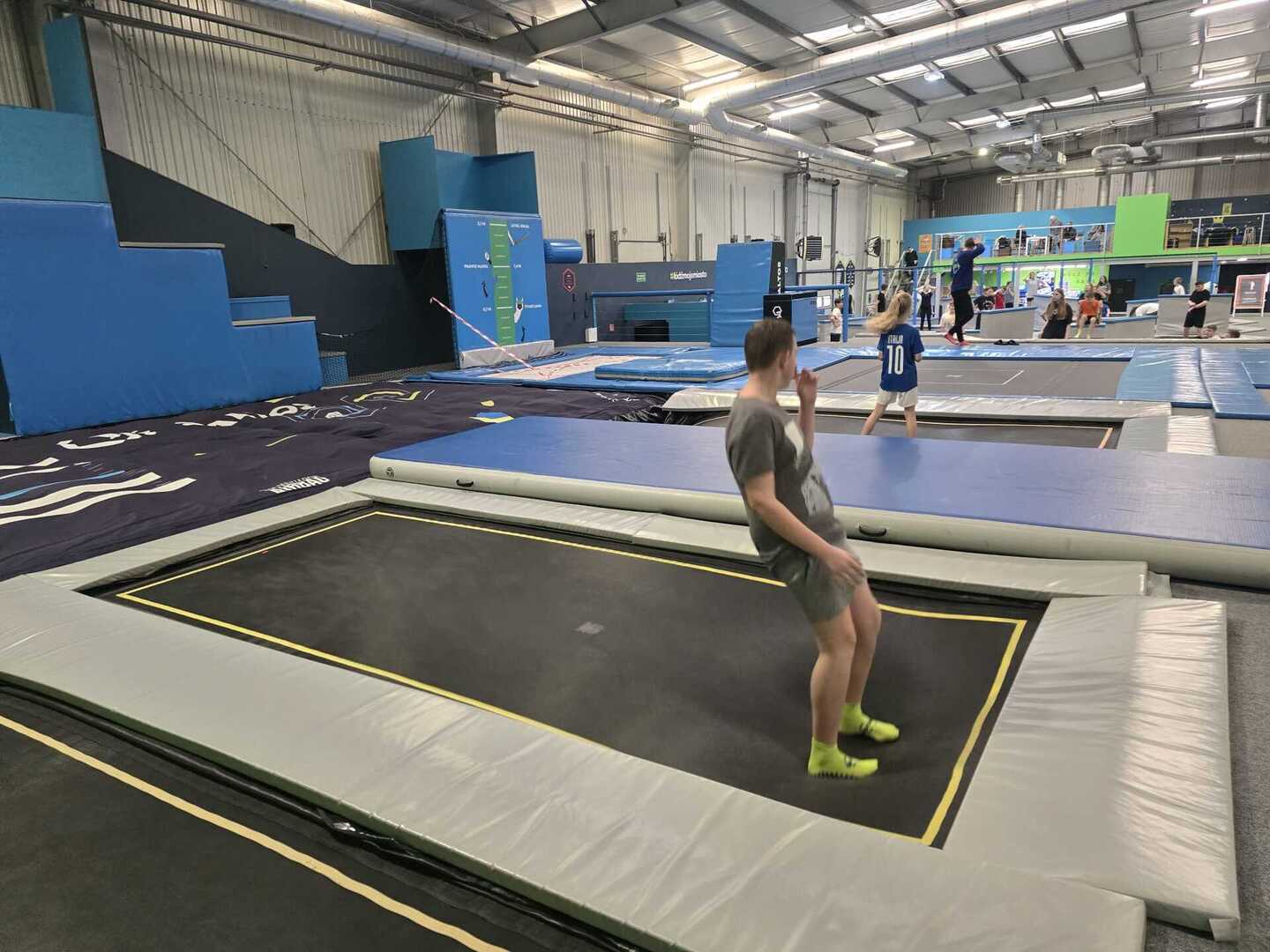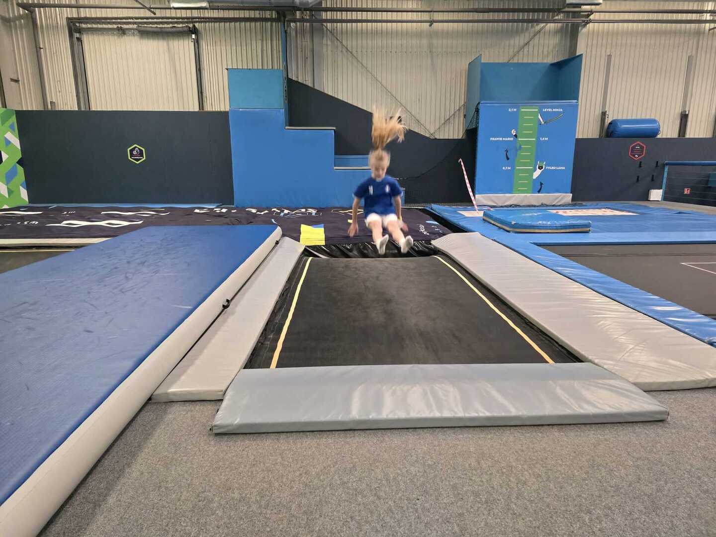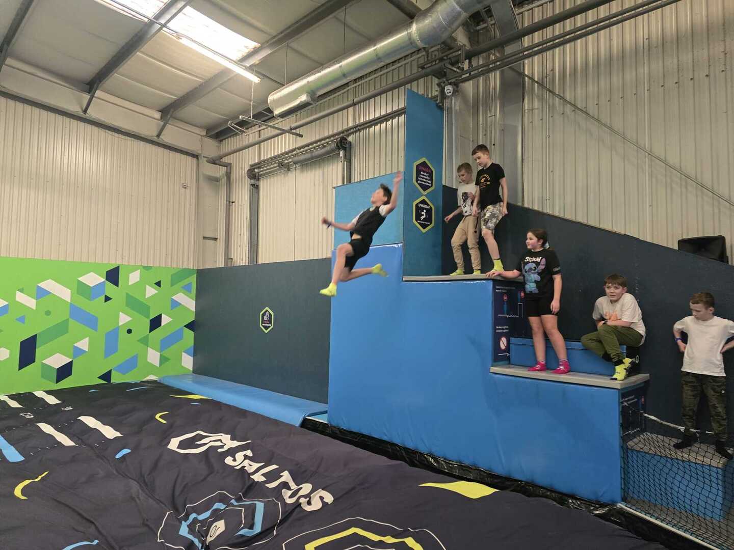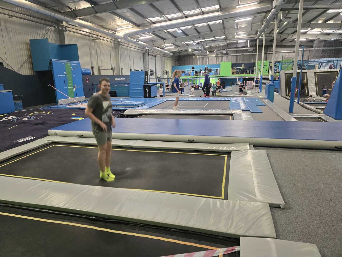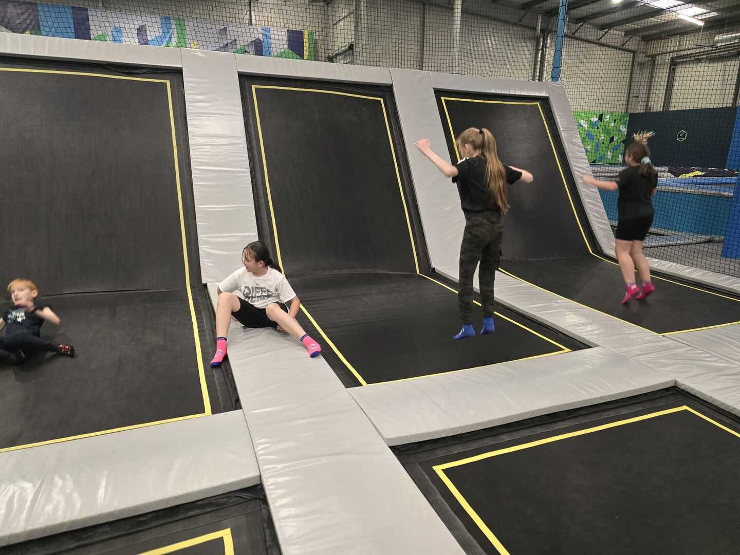 Kolejnym celem wycieczki był pobyt w parku trampolin z matami gimnastycznymi i basenem z gąbkami. Najpierw uczniowie przeszli szkolenie z zakresu bezpieczeństwa i techniki skoków. Następnie po profesjonalnej rozgrzewce pod okiem instruktorów korzystali z szeregu atrakcji. Wszyscy z radością skakali na różne sposoby. Dużym zainteresowaniem cieszyły się skoki do basenu z gąbkami.