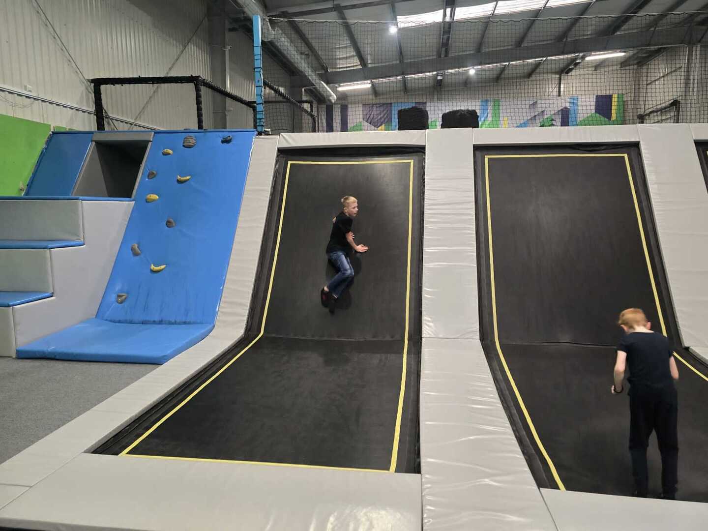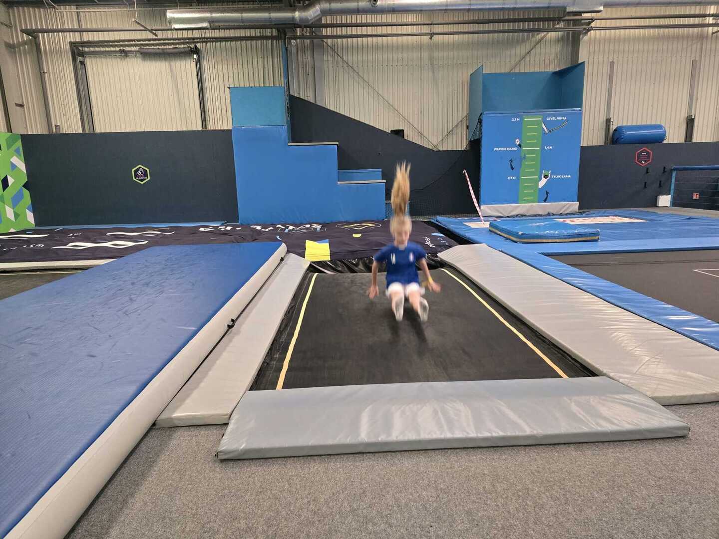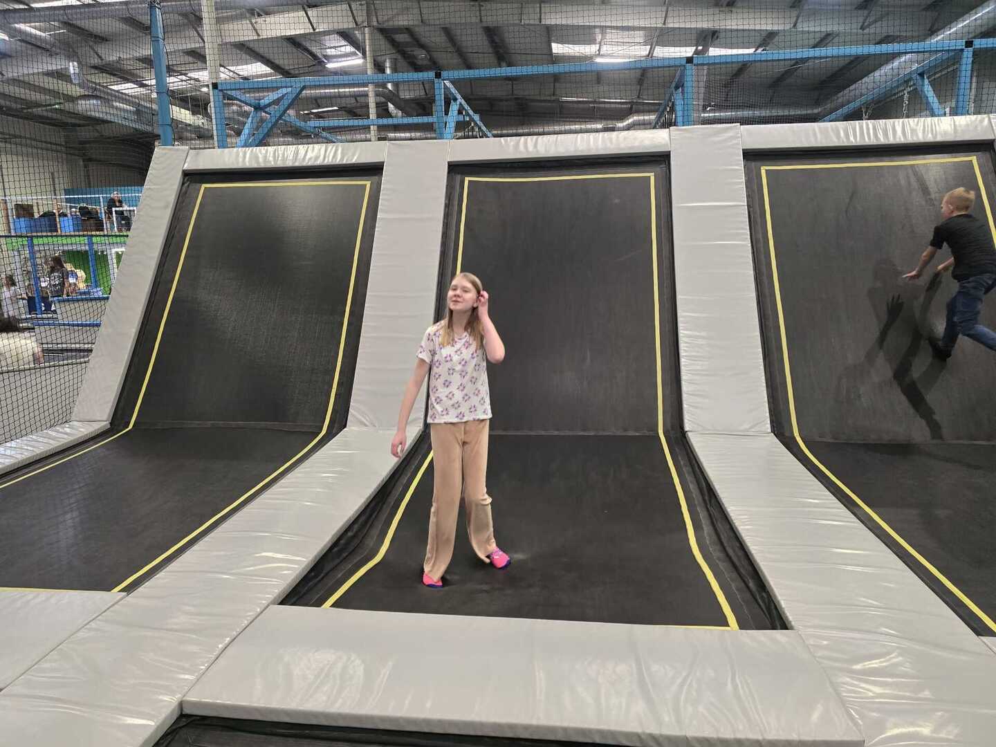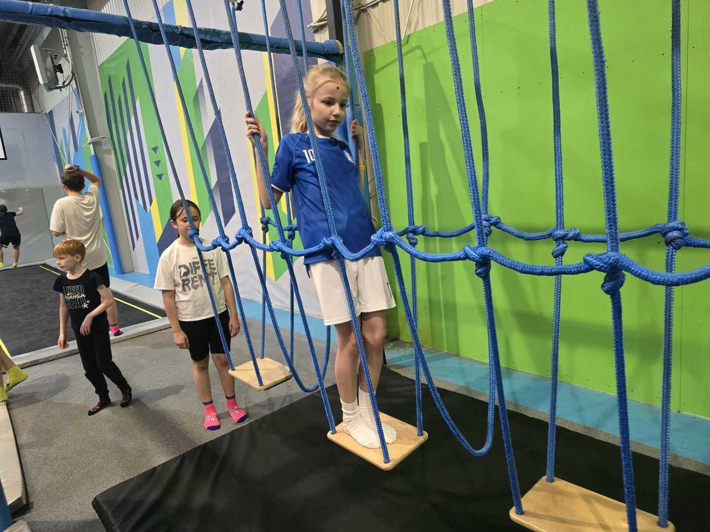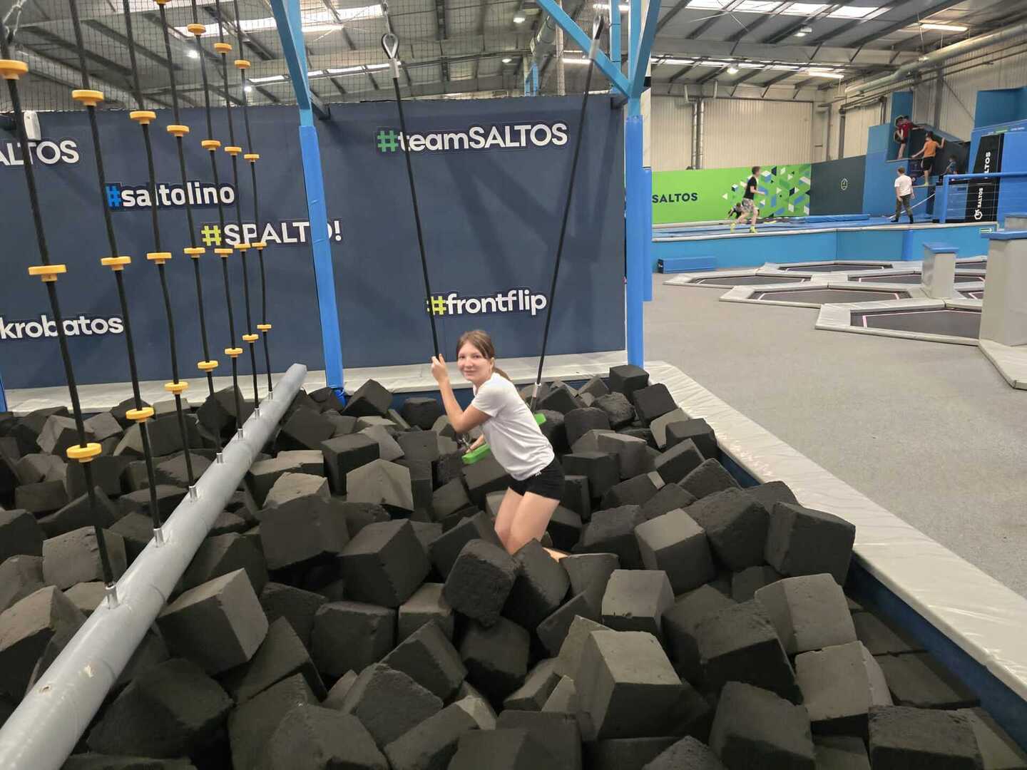 Kolejnym celem wycieczki był pobyt w parku trampolin z matami gimnastycznymi i basenem z gąbkami. Najpierw uczniowie przeszli szkolenie z zakresu bezpieczeństwa i techniki skoków. Następnie po profesjonalnej rozgrzewce pod okiem instruktorów korzystali z szeregu atrakcji. Wszyscy z radością skakali na różne sposoby. Dużym zainteresowaniem cieszyły się skoki do basenu z gąbkami.