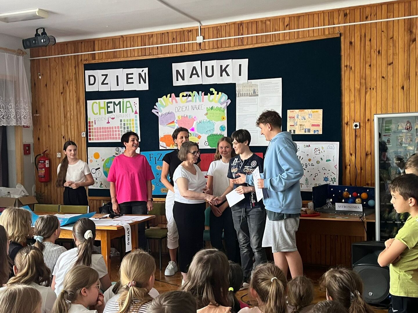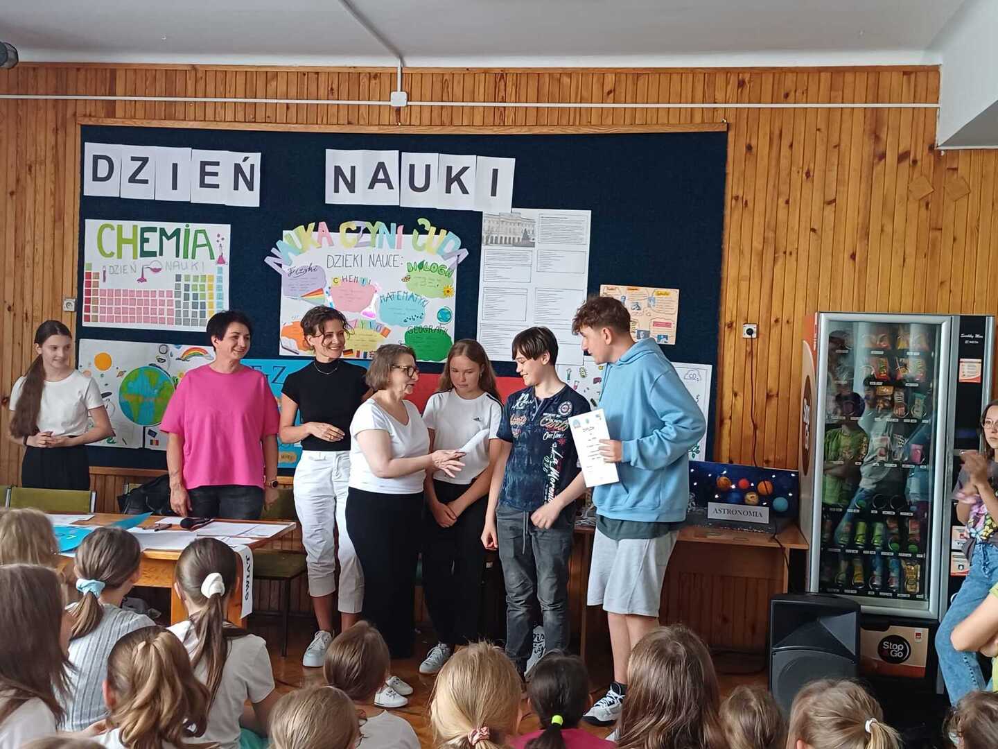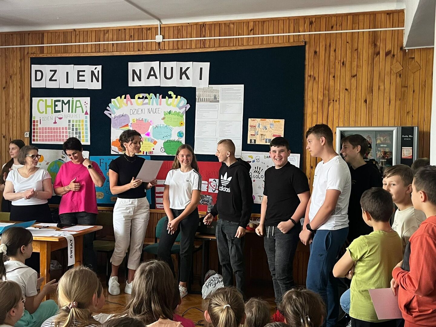 6 maja 2024 roku był Dniem Nauki w naszej szkole. Uczniowie mieli okazję zobaczyć pokazy ciekawych eksperymentów chemicznych i fizycznych, które zostały przygotowane przez uczennice klasy 7a i 7b pod kierunkiem pani Ewy Ambrozik oraz wziąć udział w konkursach.