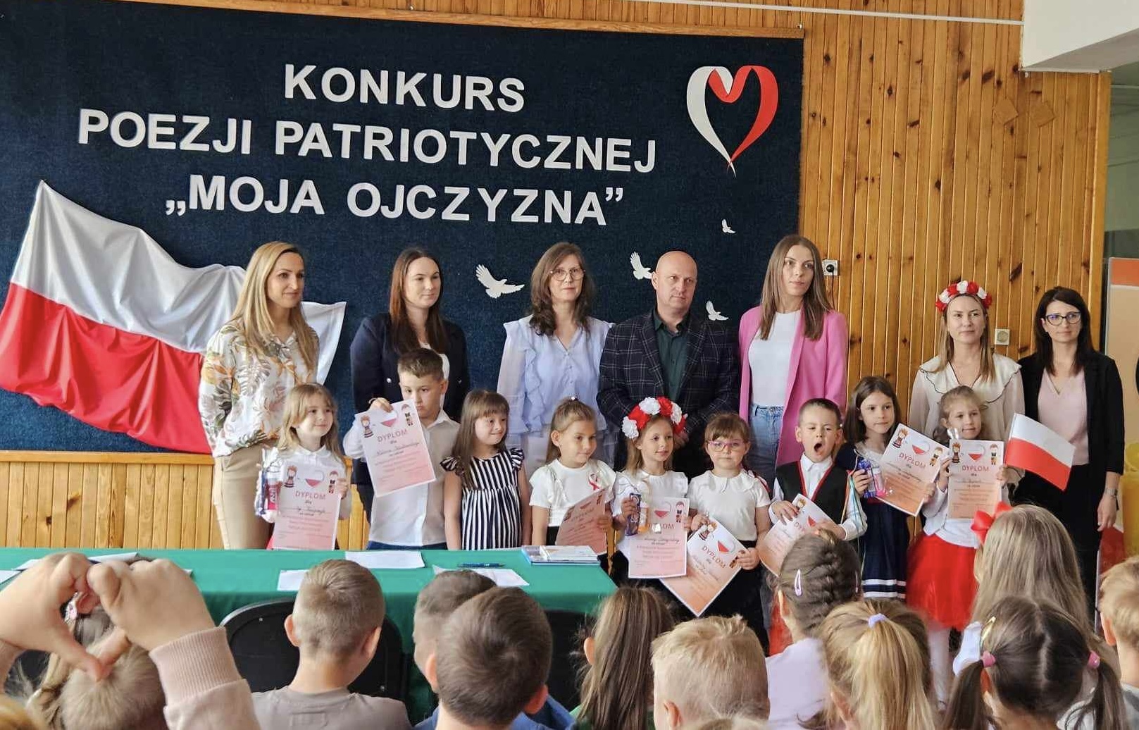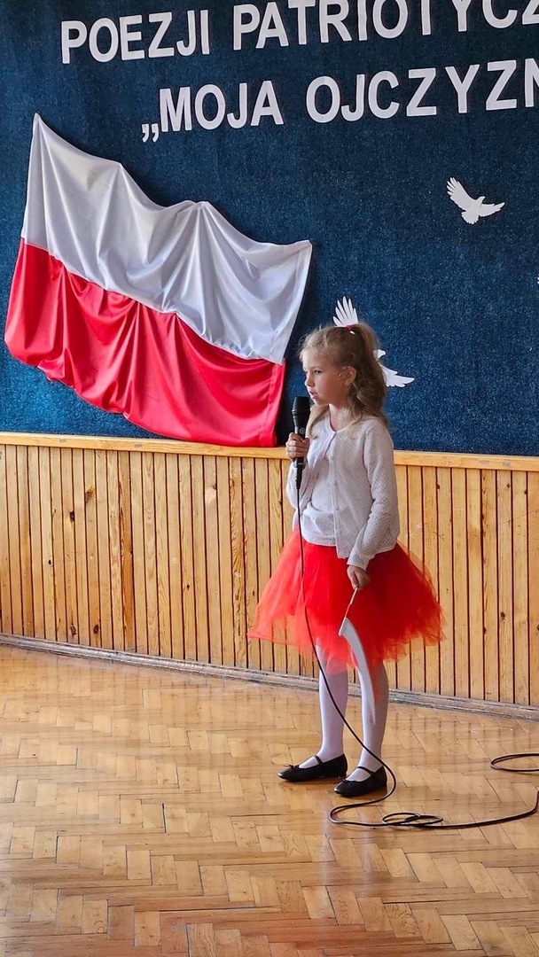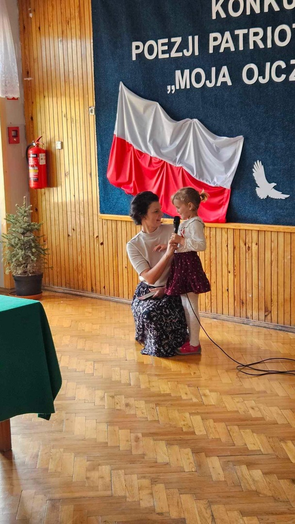 Przedszkolaki i uczniowie klas I-III z entuzjazmem wzięli udział w konkursie recytatorskim. Przygotowali się do swoich wystąpień starannie, ucząc się wierszy na pamięć i pracując nad poprawnością wymowy. Podczas konkursu prezentowali własne interpretacje tekstów patriotycznych z dużym zaangażowaniem i emocjonalnością, co poruszało publiczność i komisję konkursową. Udział dzieci w konkursie recytatorskim poezji patriotycznej był nie tylko okazją do prezentacji swoich umiejętności artystycznych, ale także do wyrażenia patriotycznej postawy oraz świadomości i pamięci historycznej.