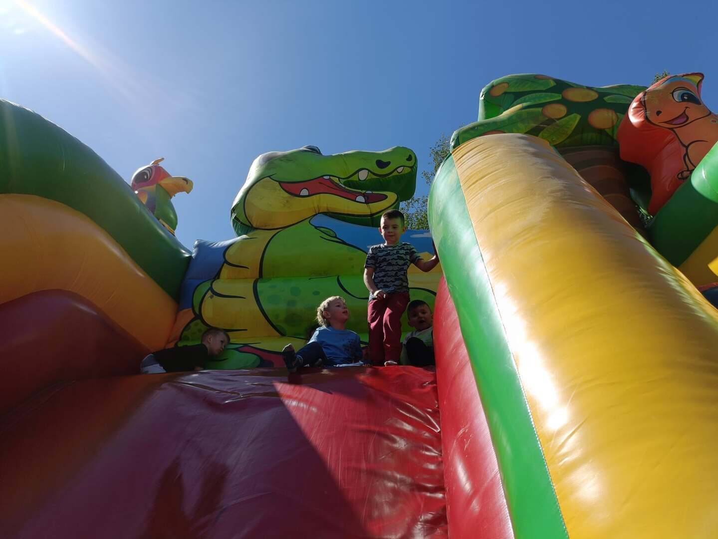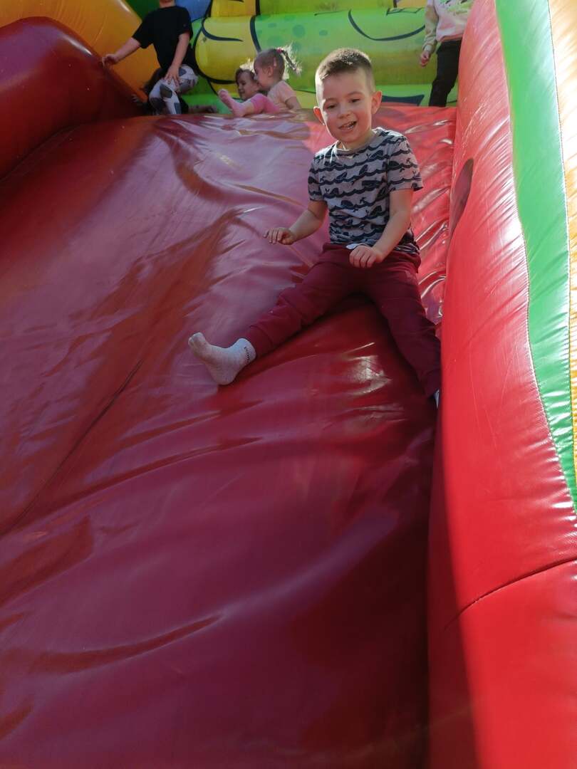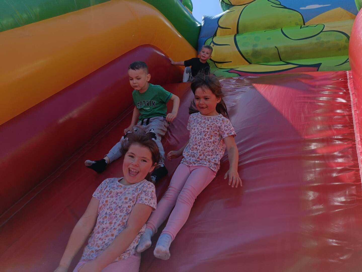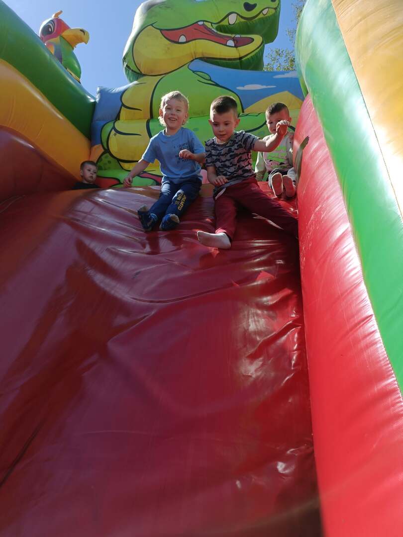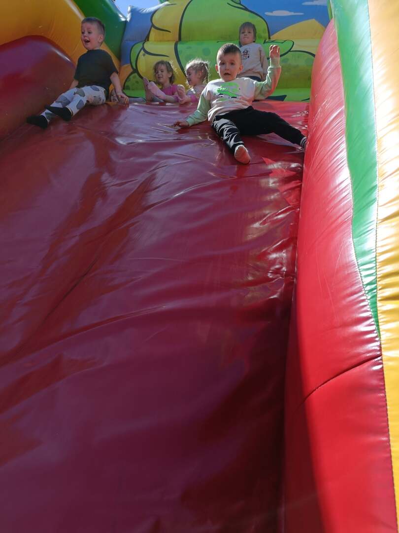 Po obejrzeniu zwierzątek wszyscy udali się na dmuchańce. W tym samym czasie chętne dzieci mogły skorzystać z przejażdżki na kucyku.