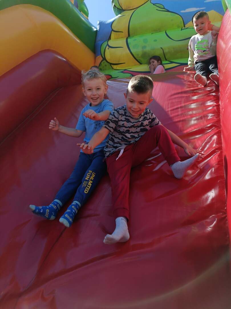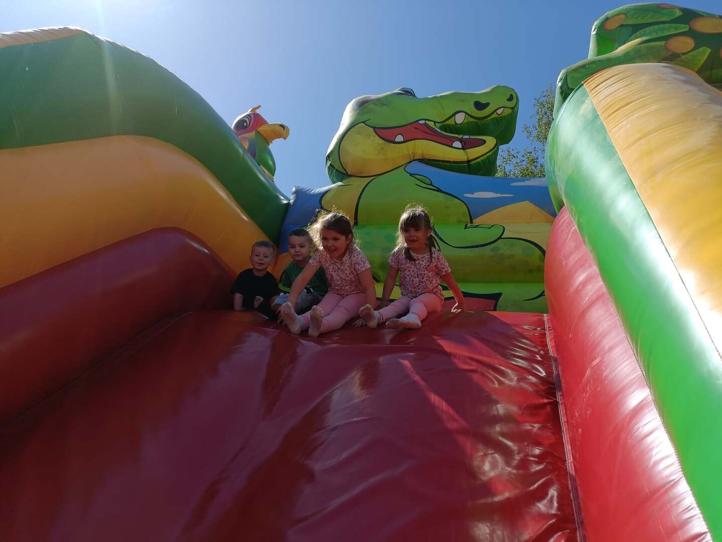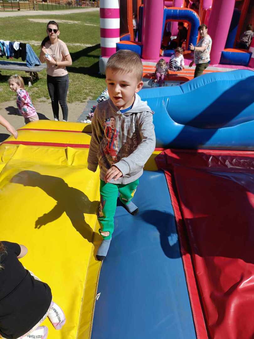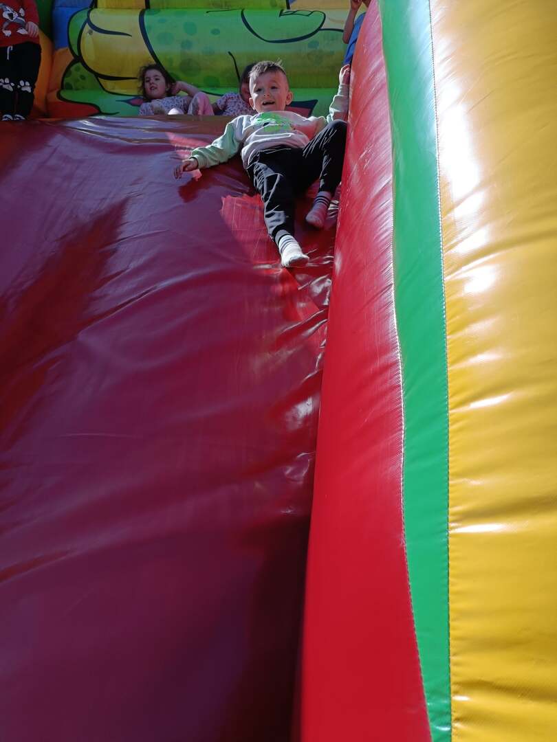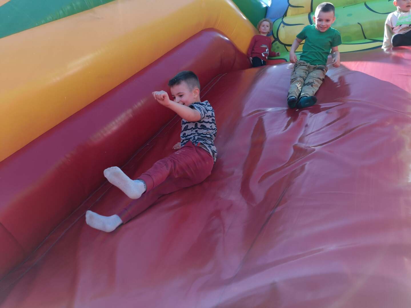 Po obejrzeniu zwierzątek wszyscy udali się na dmuchańce. W tym samym czasie chętne dzieci mogły skorzystać z przejażdżki na kucyku.
