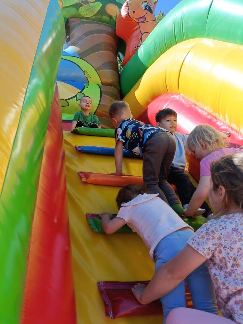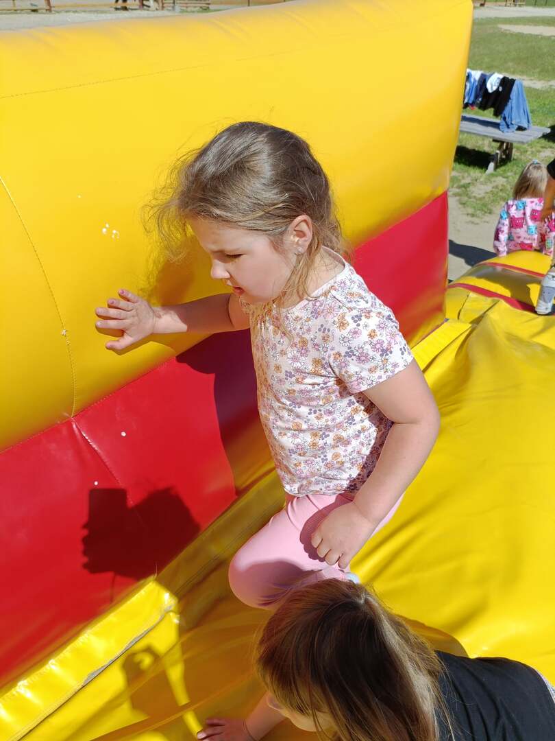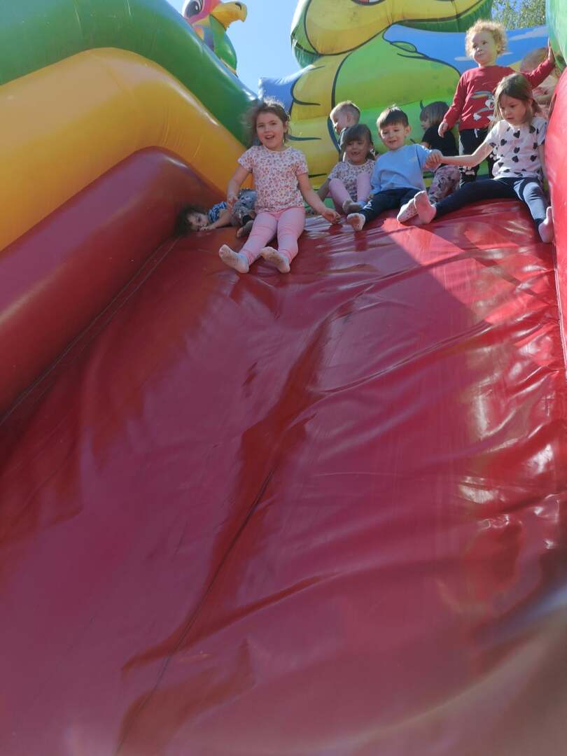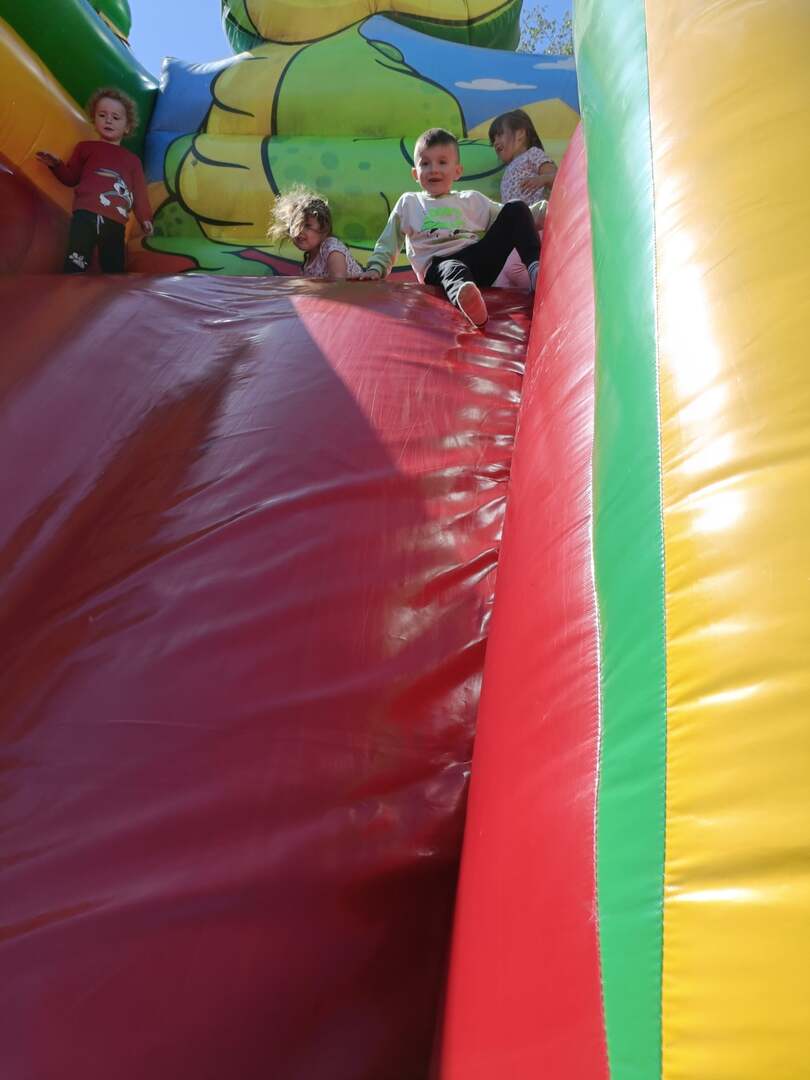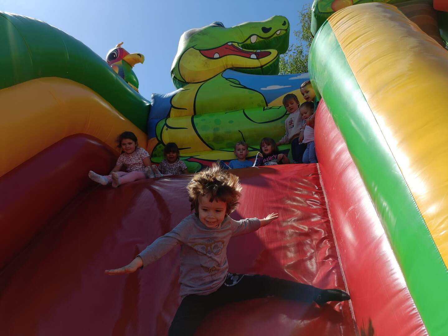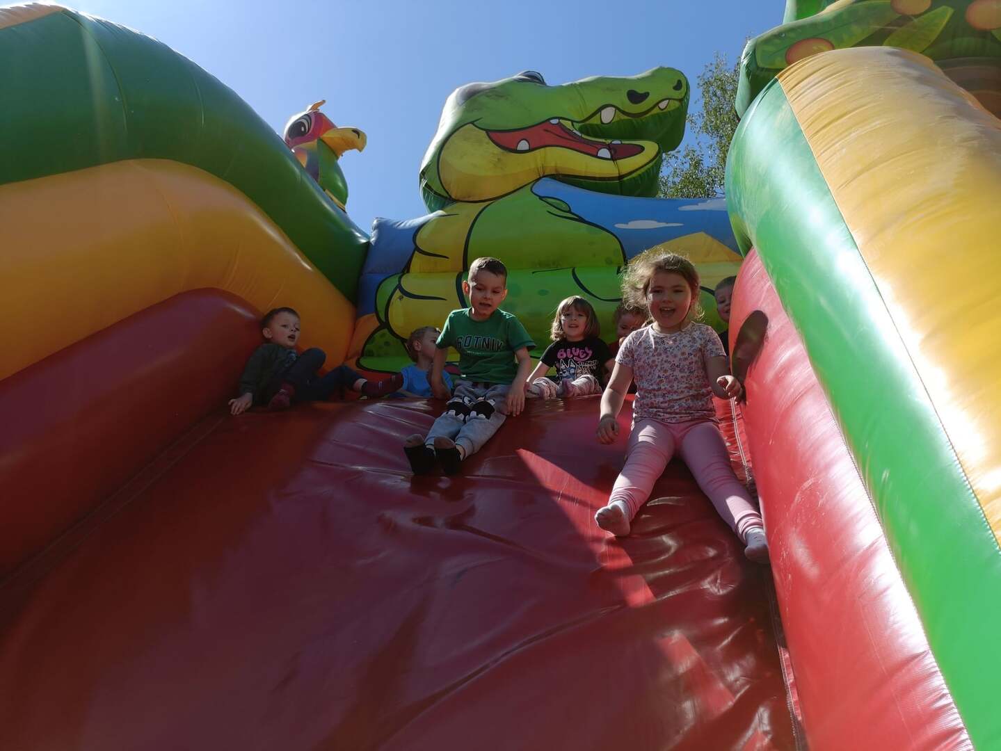Po obejrzeniu zwierzątek wszyscy udali się na dmuchańce. W tym samym czasie chętne dzieci mogły skorzystać z przejażdżki na kucyku.