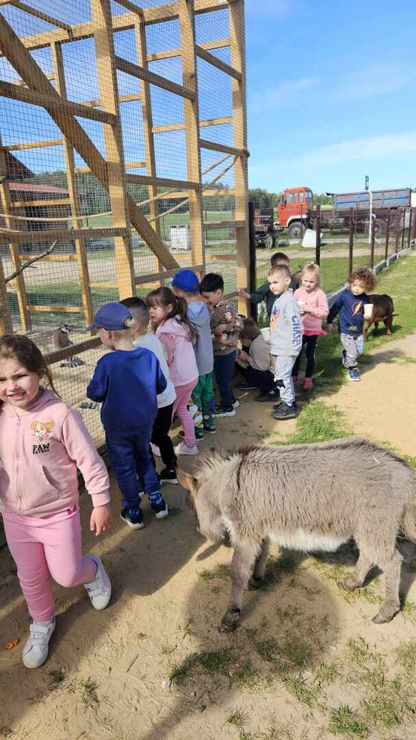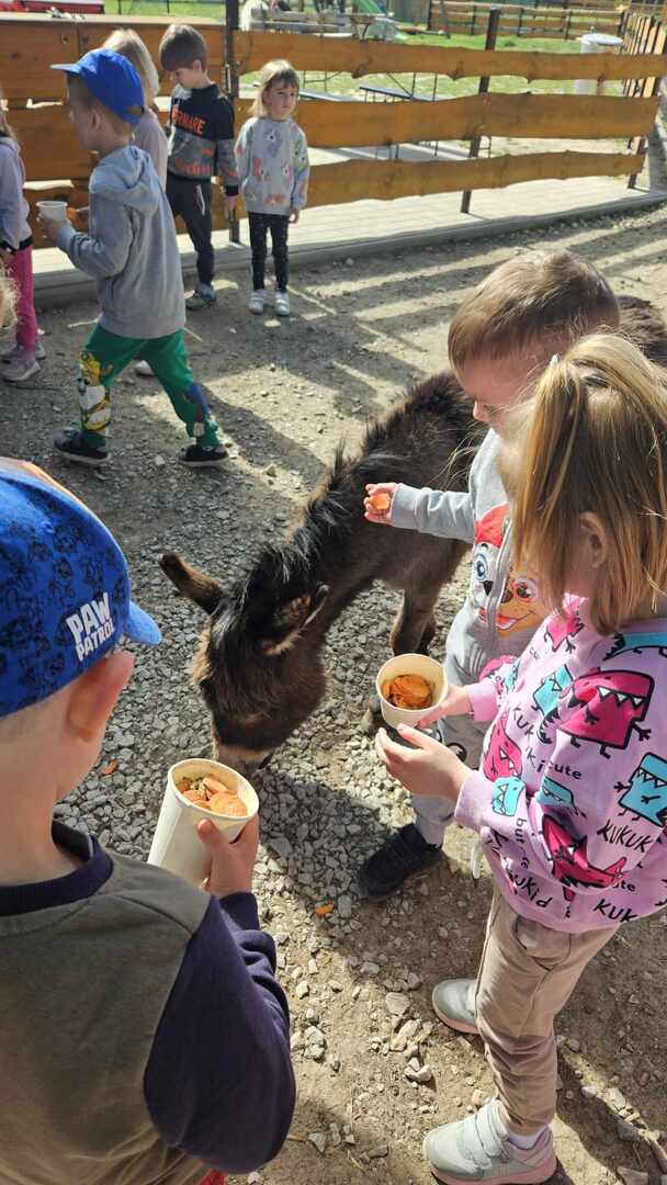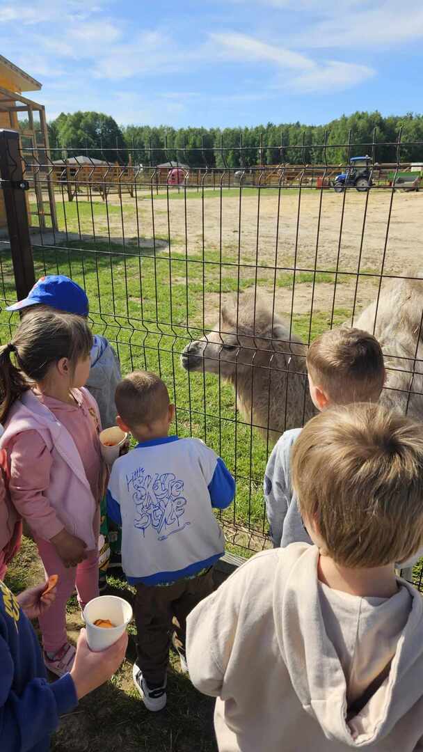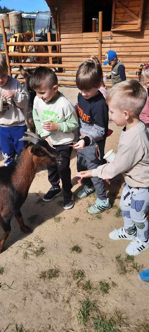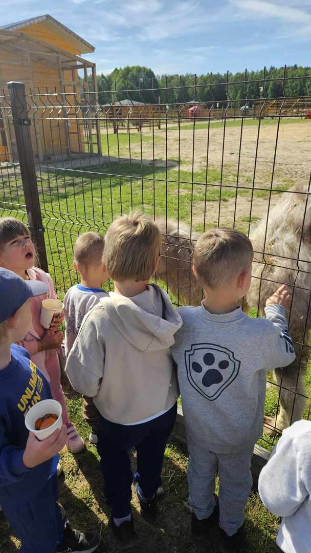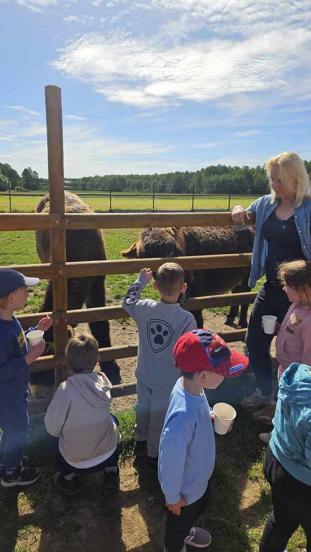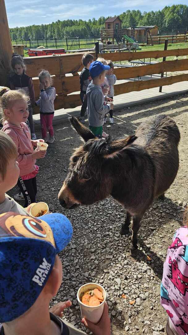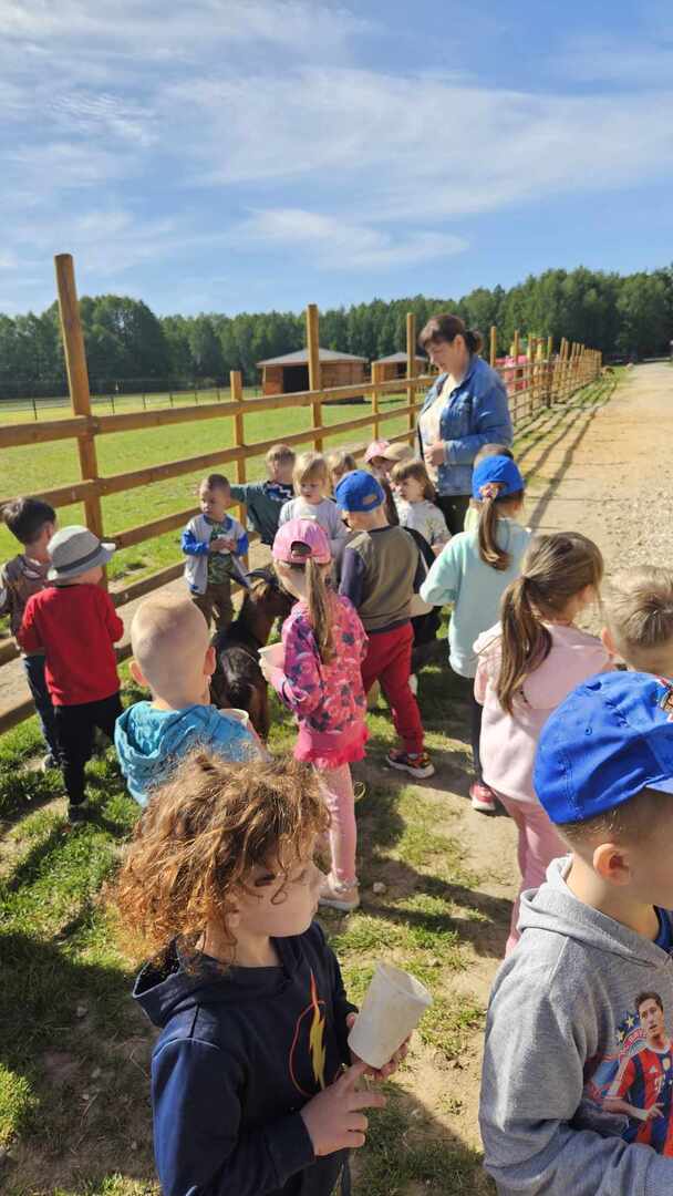 W poniedziałek, 13 maja 2024 roku, dzieci z grupy trzylatków i czterolatków wraz z opiekunkami panią A. Kowalczyk i panią M. Rosińską wybrały się na wycieczkę do mieszczącego się w Wolicy Rancza AgroBanda.