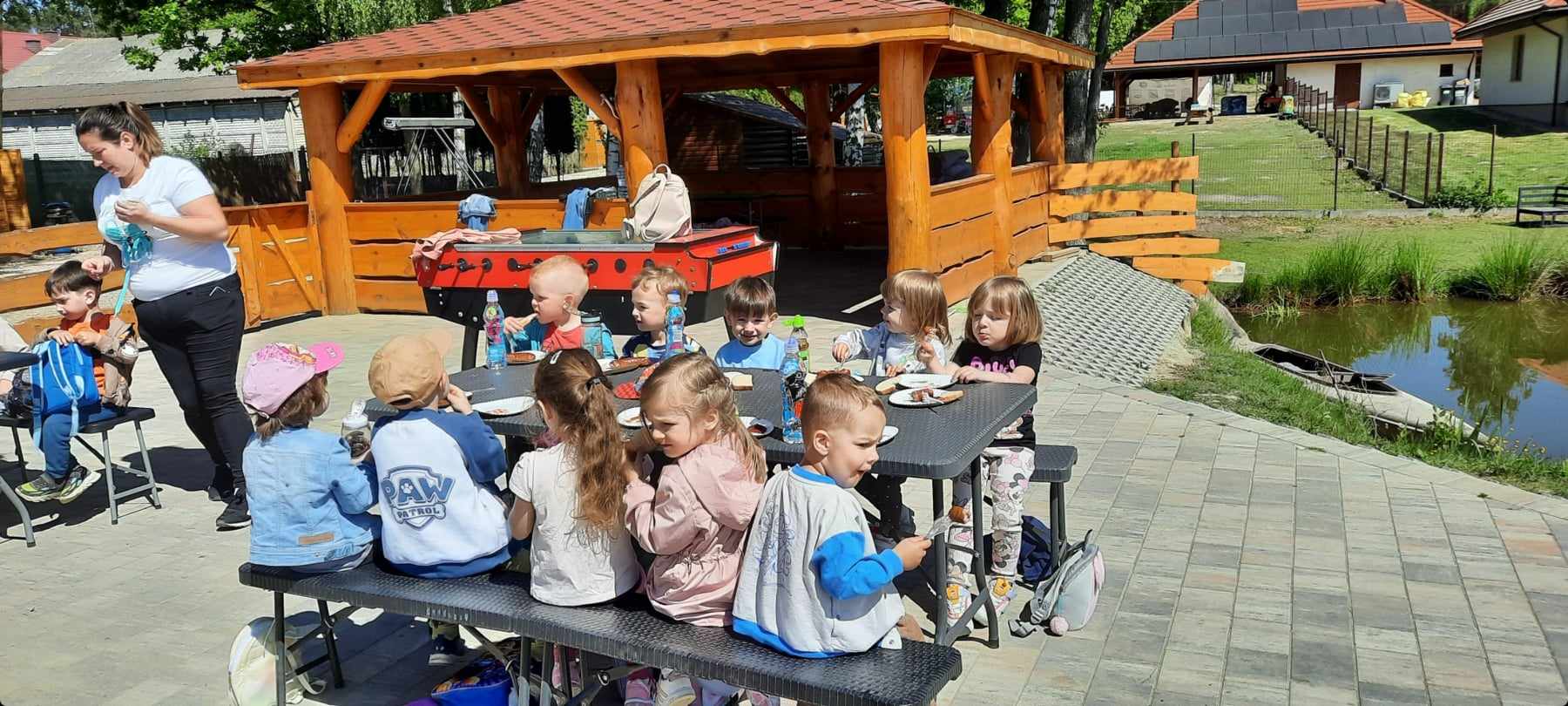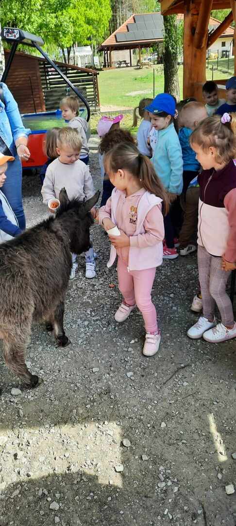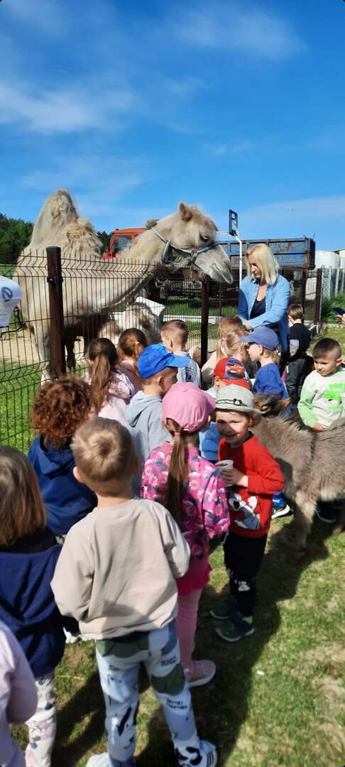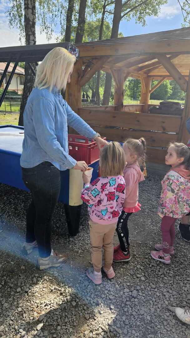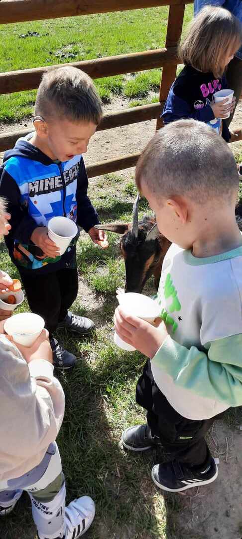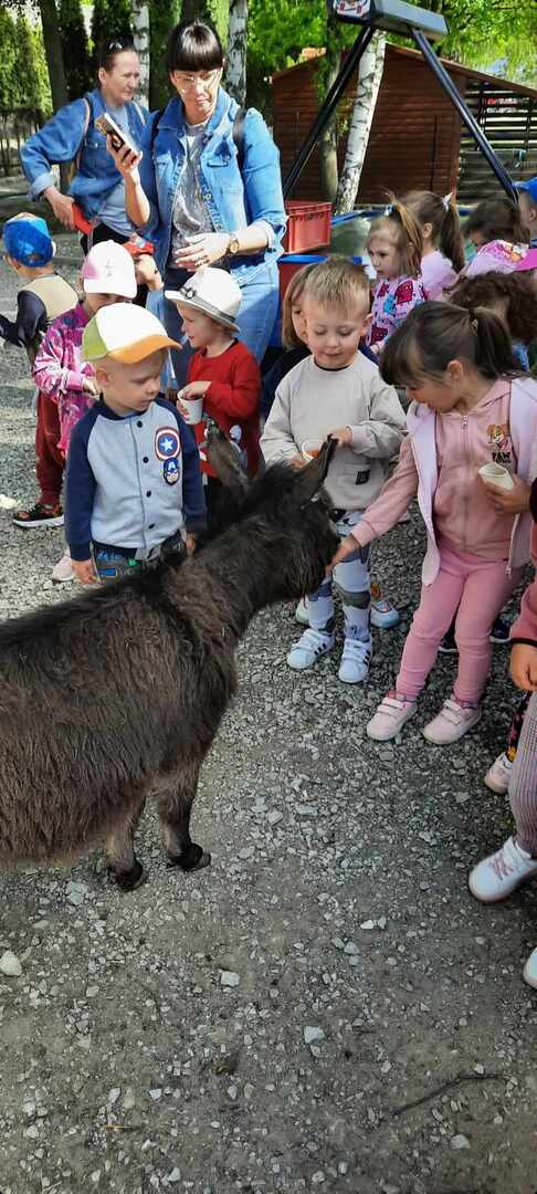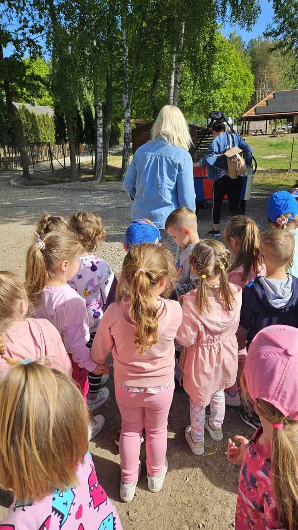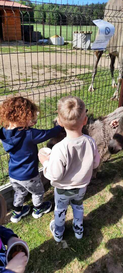 W poniedziałek, 13 maja 2024 roku, dzieci z grupy trzylatków i czterolatków wraz z opiekunkami panią A. Kowalczyk i panią M. Rosińską wybrały się na wycieczkę do mieszczącego się w Wolicy Rancza AgroBanda.