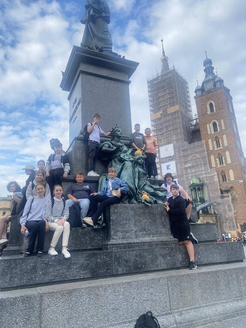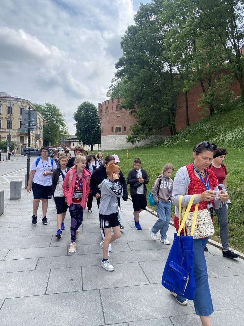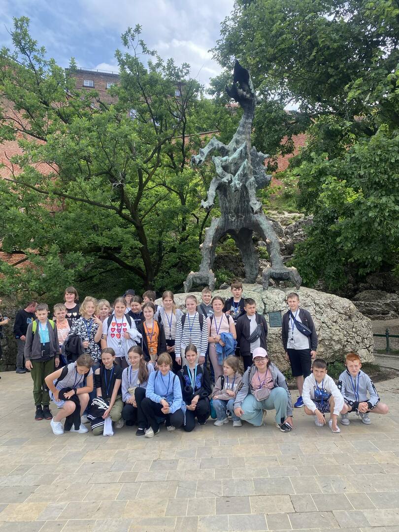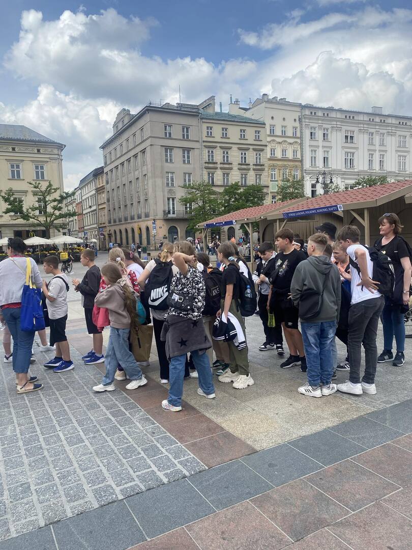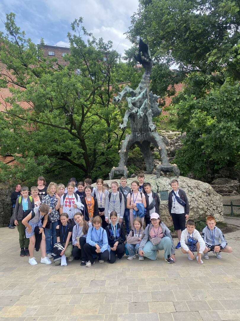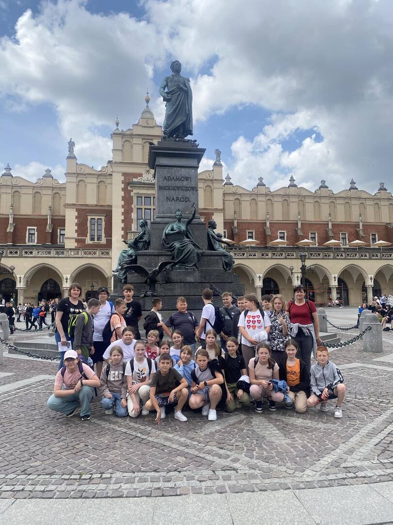 Istnieją takie miejsca, które każdy Polak przynajmniej raz w życiu powinien odwiedzić, by móc poznać prawdziwie dziedzictwo własnego kraju. To właśnie Kraków – miasto królów, historyczne serce Polski, ostoja kultury i sztuki – stał się w tym roku celem wycieczki klas 4b i 5a, które wraz z wychowawcami: p. E. Ambrozik i p. M. Białek i opiekunem p. J. Piechotą udały się na wyprawę do Małopolski w dniach 22-24 maja 2024r.