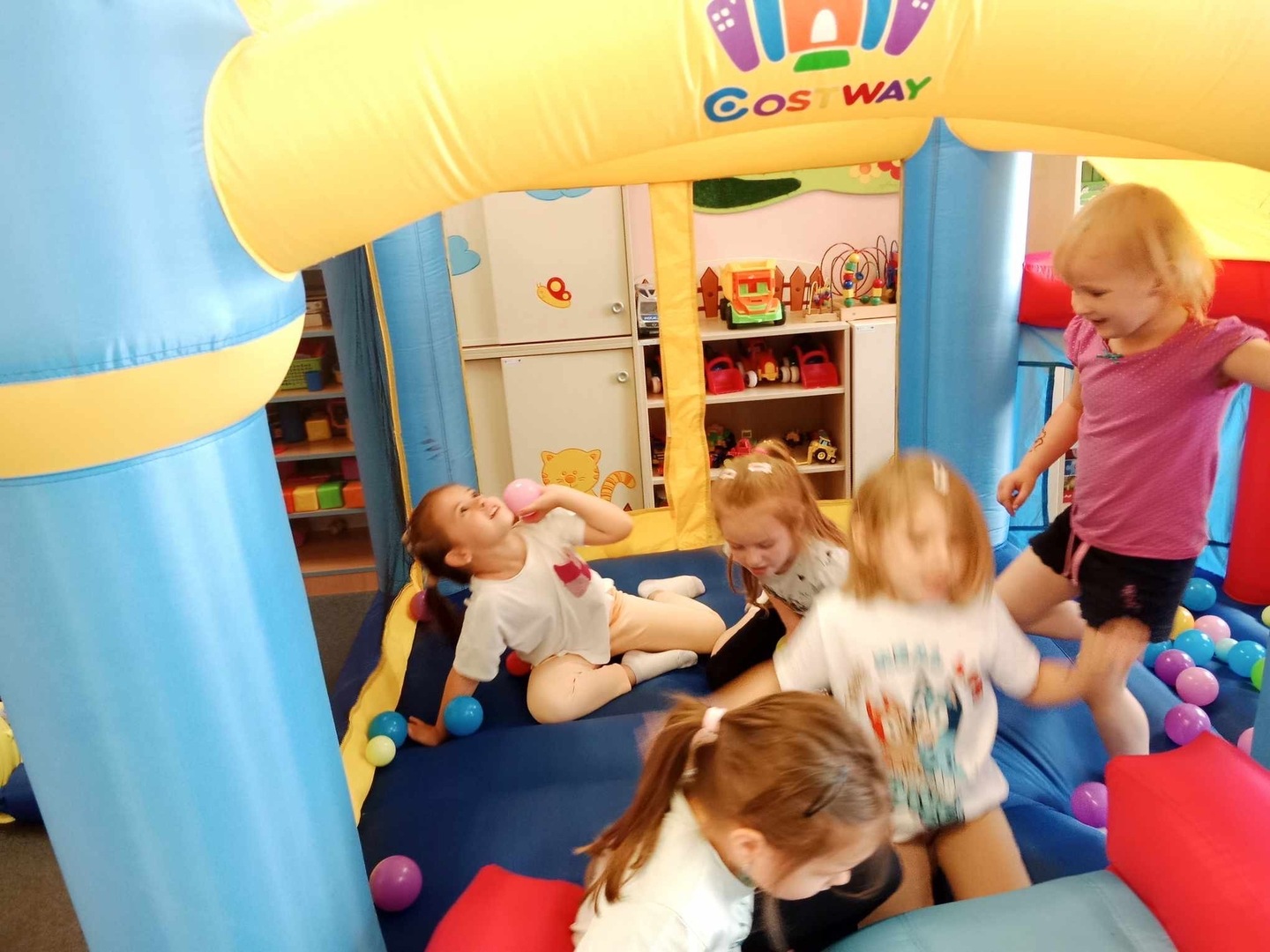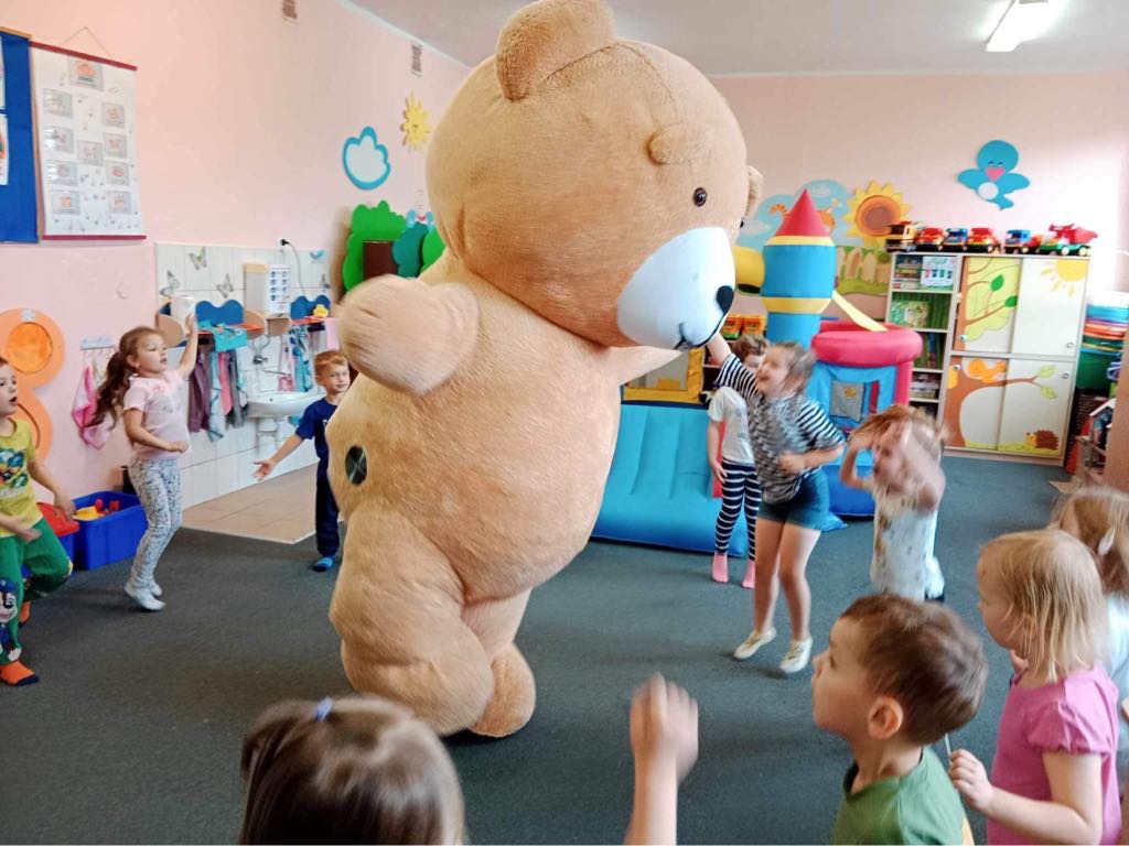 Dzień Dziecka to jedno z najważniejszych świąt w kalendarzu każdego przedszkolaka. W tym roku, dzięki inicjatywie rodziców, dzieci z grupy czterolatków zostały zaproszone do zabawy na dmuchany zamek. Przedszkolaków odwiedziły również żywe maskotki, miś i królik, które bawiły się i tańczyły razem z dziećmi.